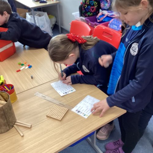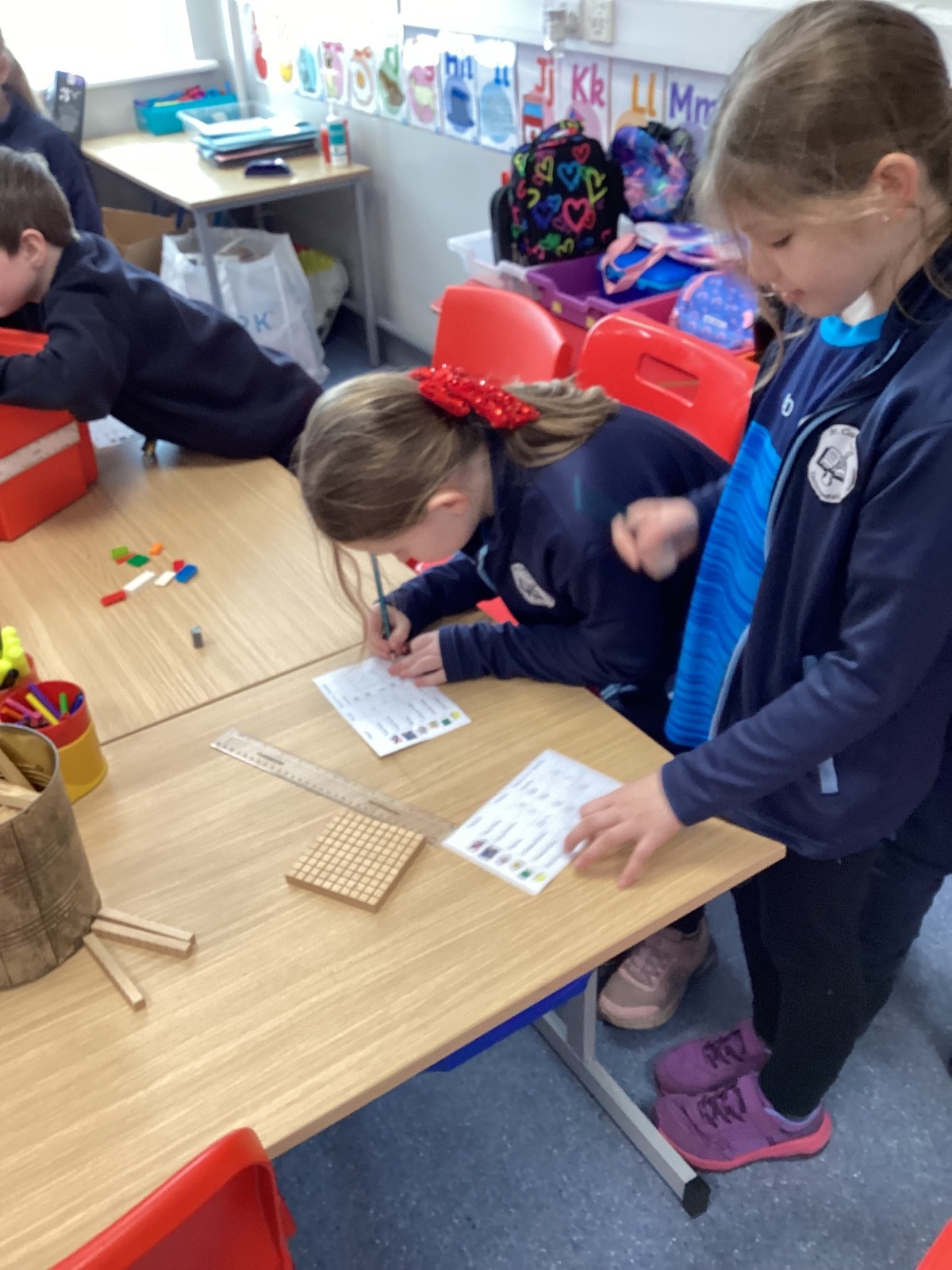 The children enjoyed applying their knowledge of rounding to rounding sets of real life objects including lego, money, lollipop sticks, pom poms and base 10. They had to round their set of objects within 10 and 100.