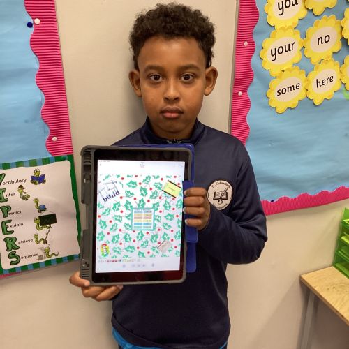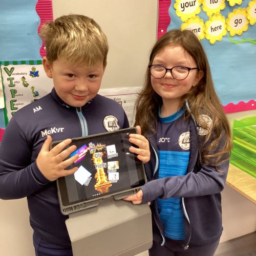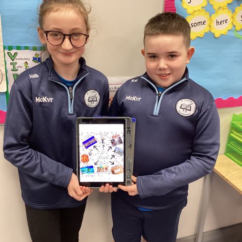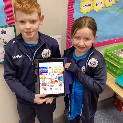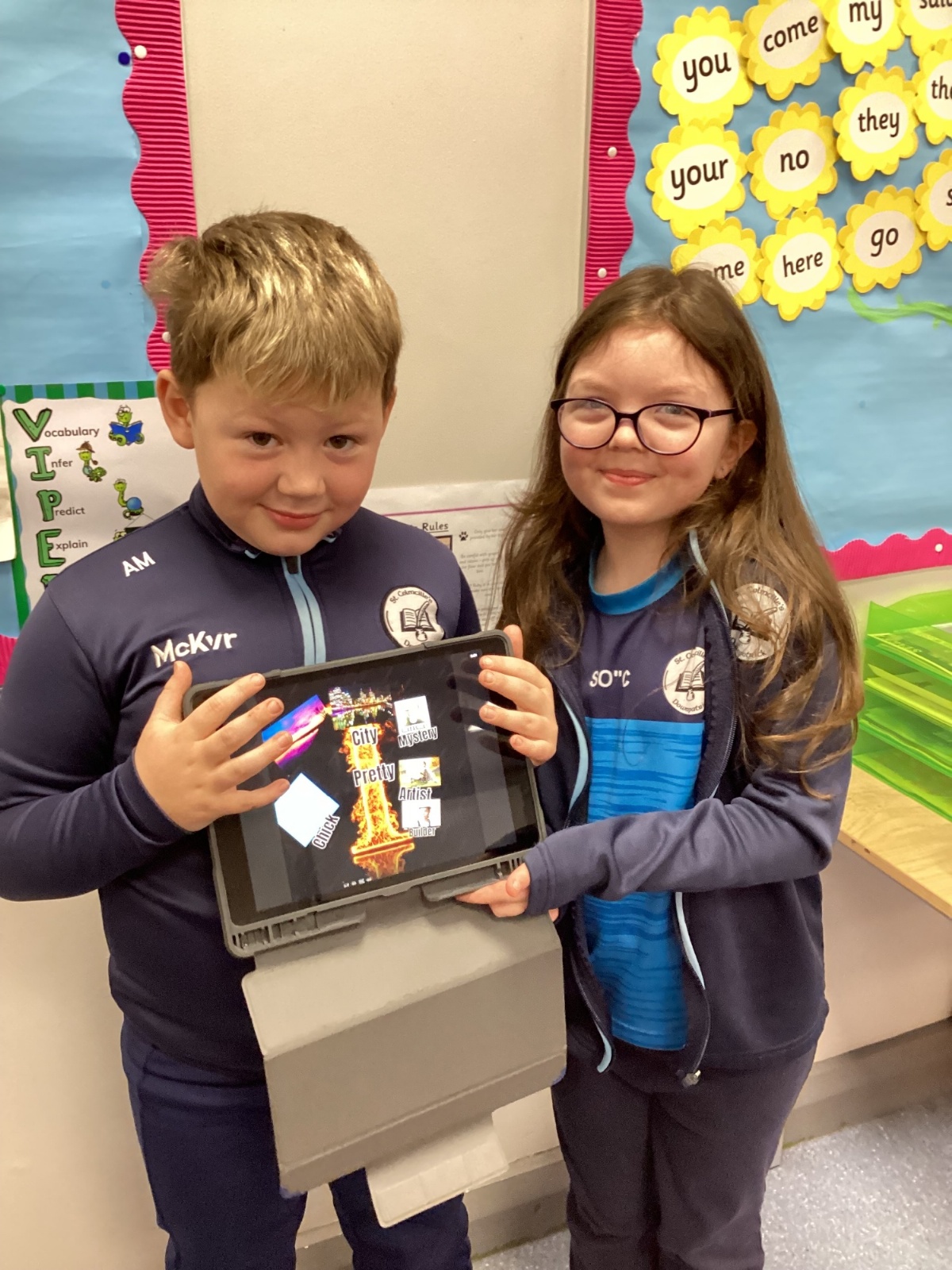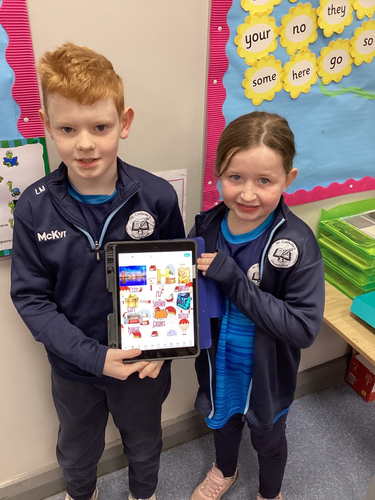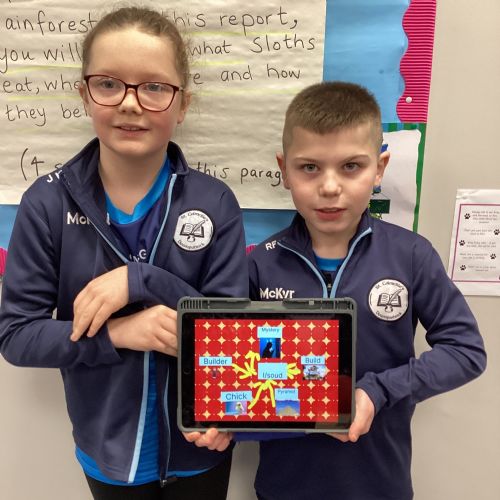 Pupils worked in pairs to create a pic collage for the sound /i/. They had to find images online to match their words and create a mind map using the pic collage app to display the images and words.