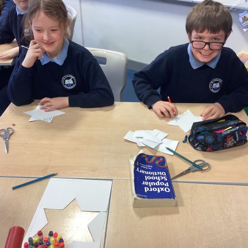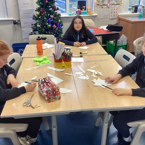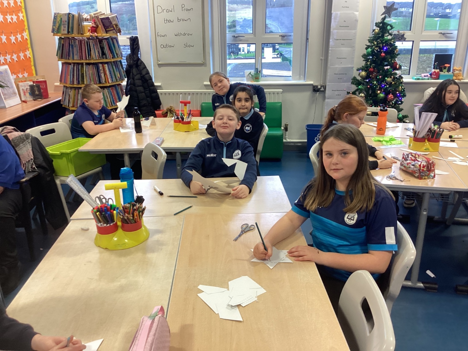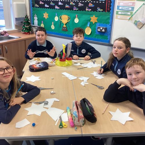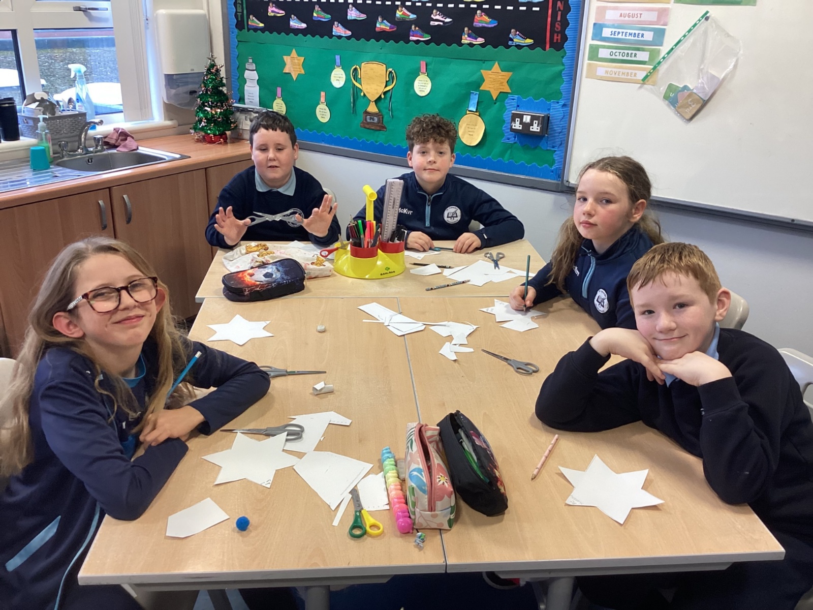P6A made Christmas stars! On one side they drew a picture of the baby Jesus. On the other side, they wrote lots of different ways that they can spread Gods love!