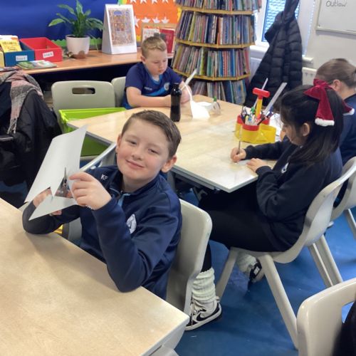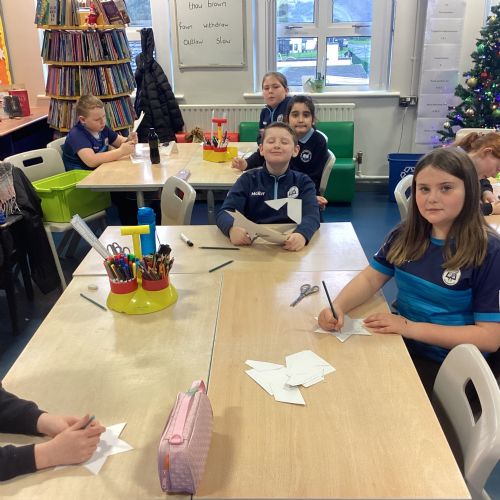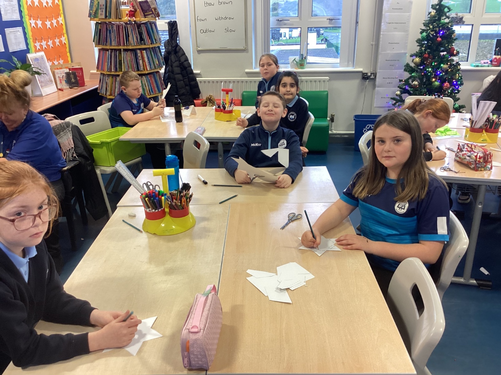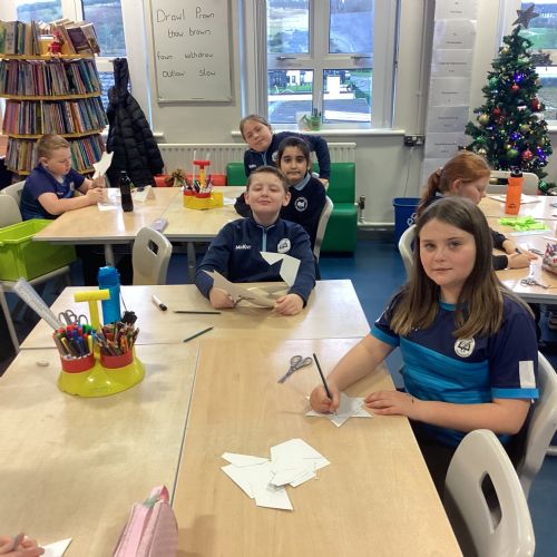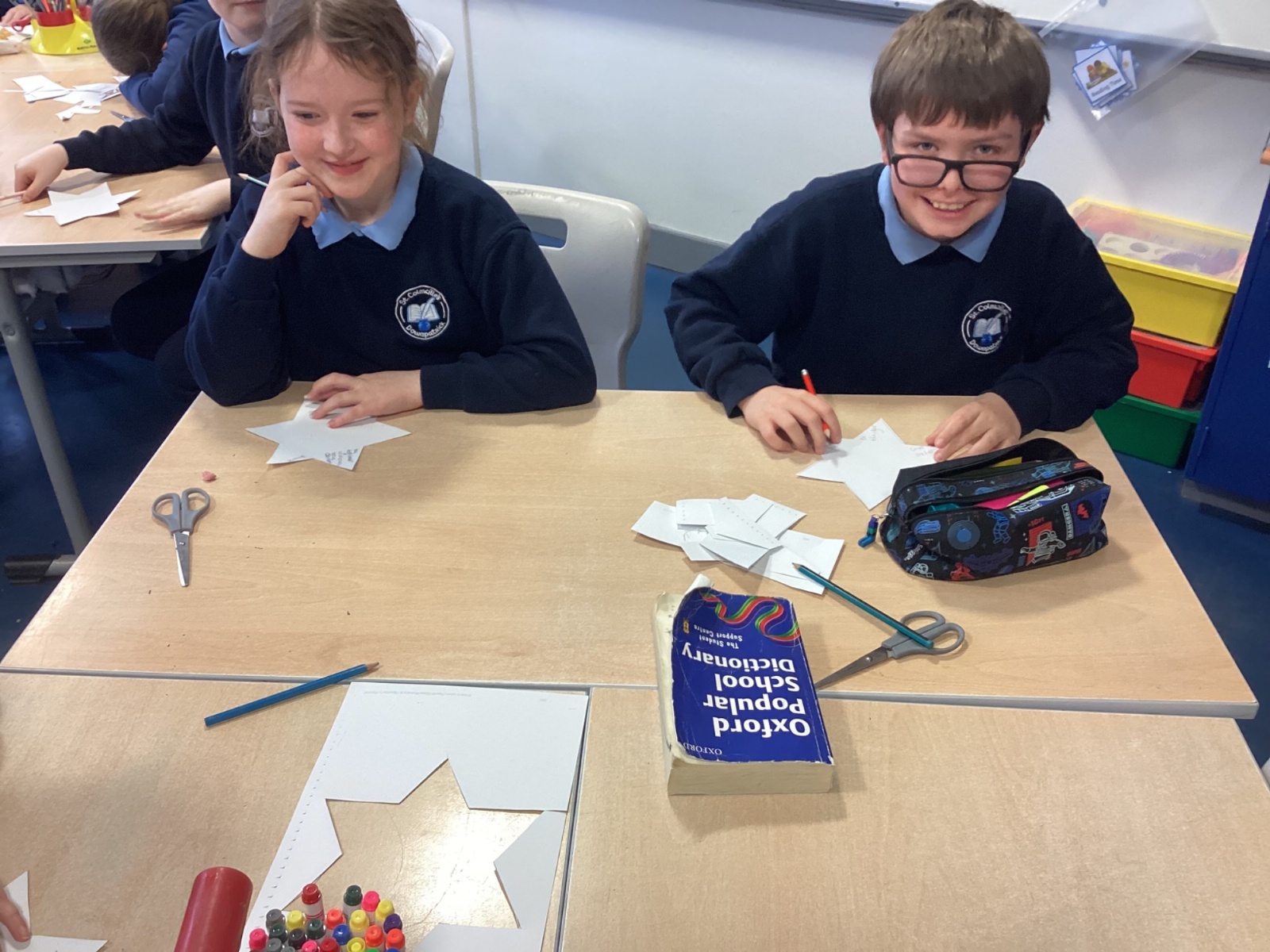 P6A made Christmas stars! On one side they drew a picture of the baby Jesus. On the other side, they wrote lots of different ways that they can spread Gods love!