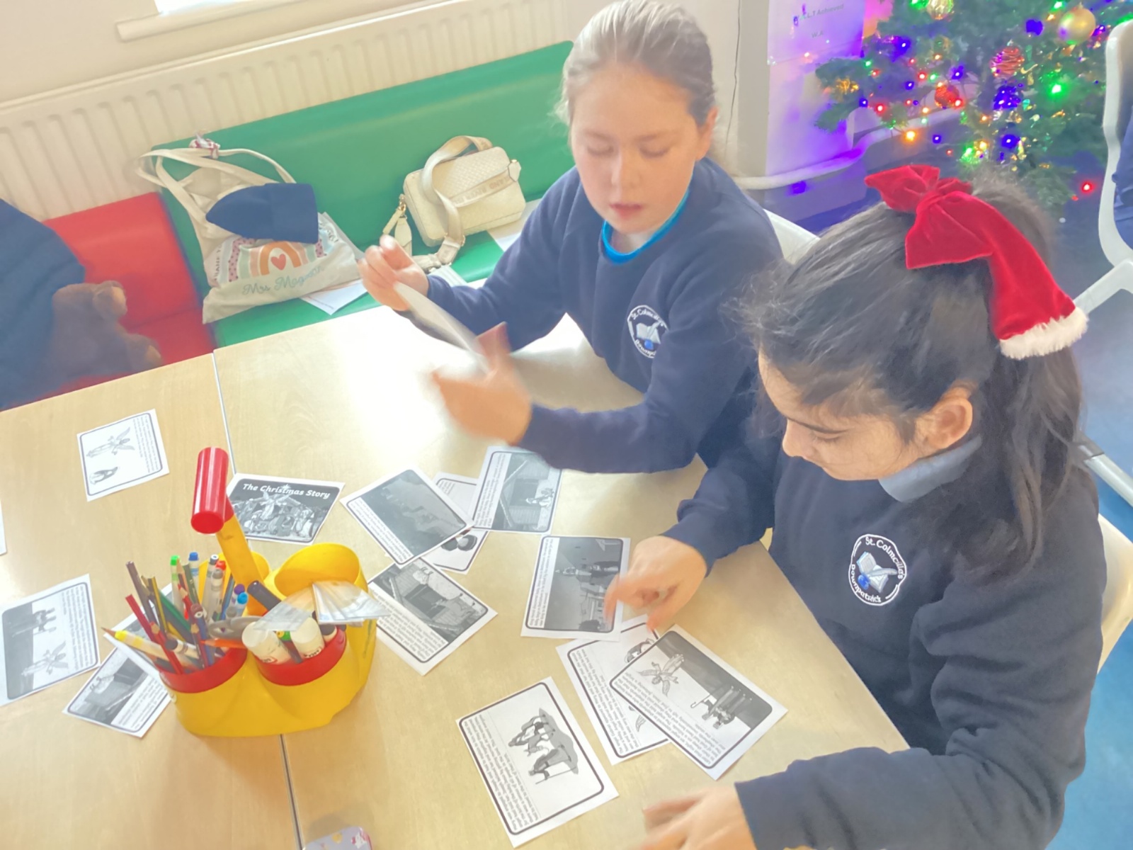 P6A were learning all about the Christmas story. They then worked in pairs to sequence the story correctly!