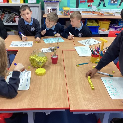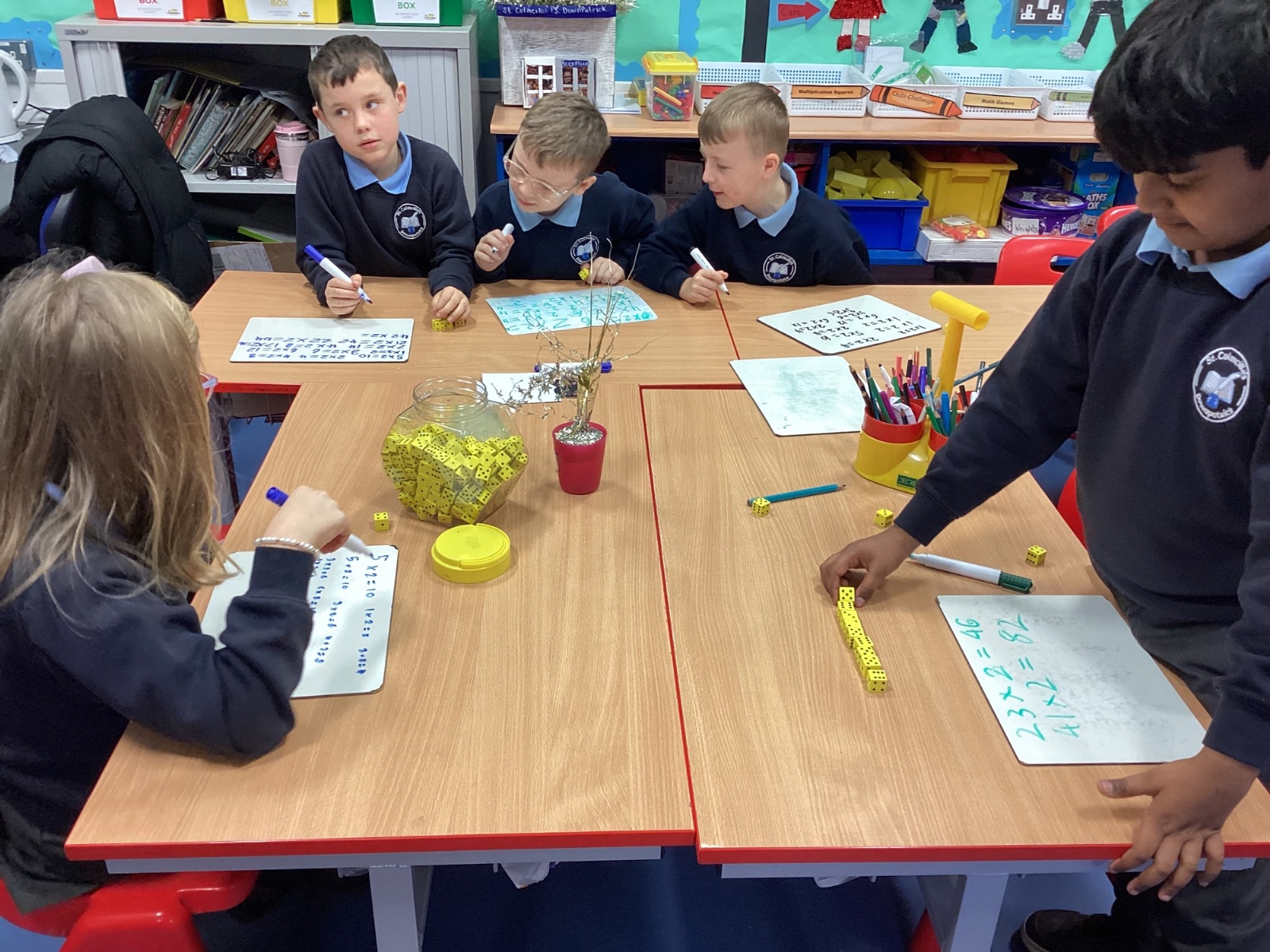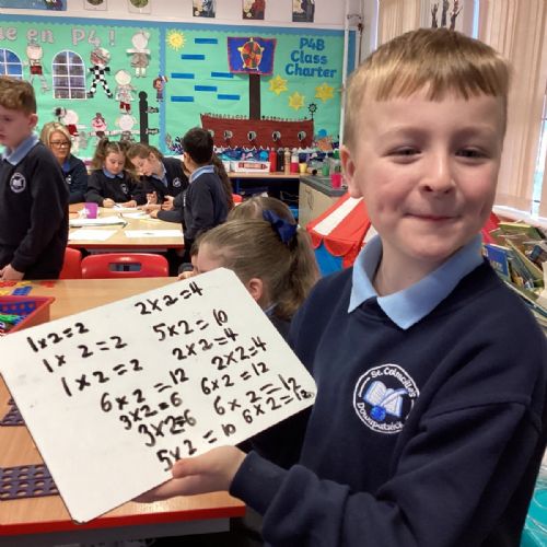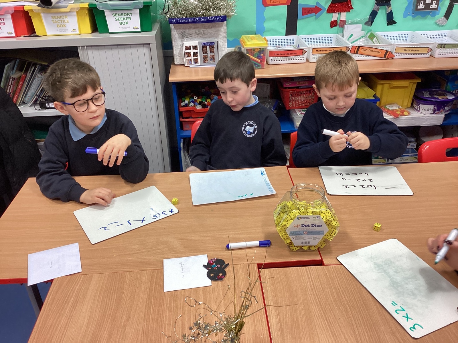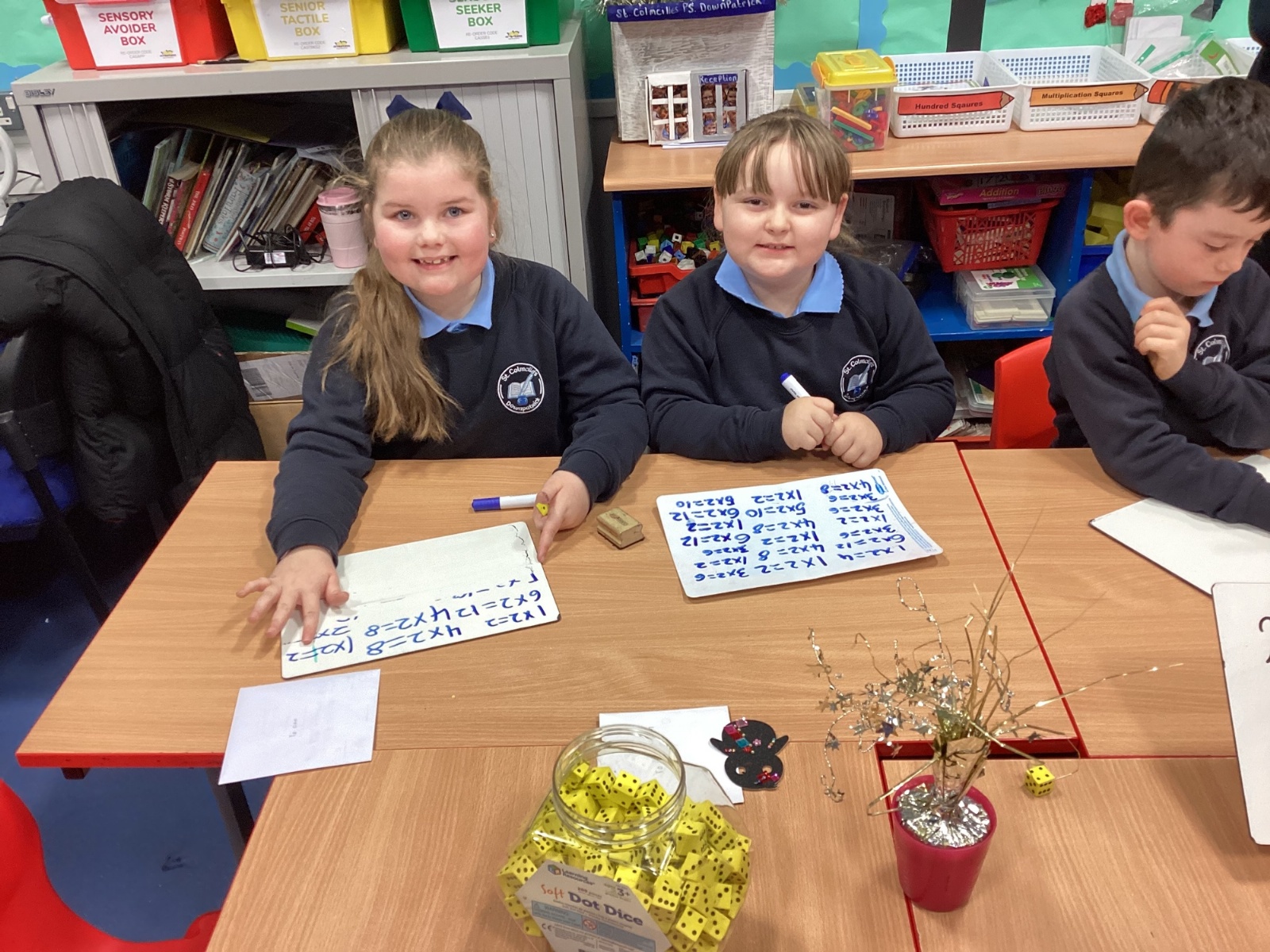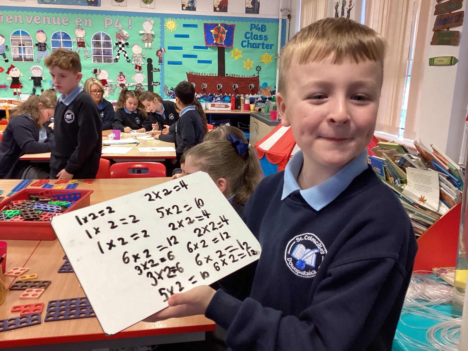 P4 have been taking part in a range of activity-based learning to develop their recall of their two timed tables and learn strategies to help them multiply!