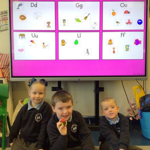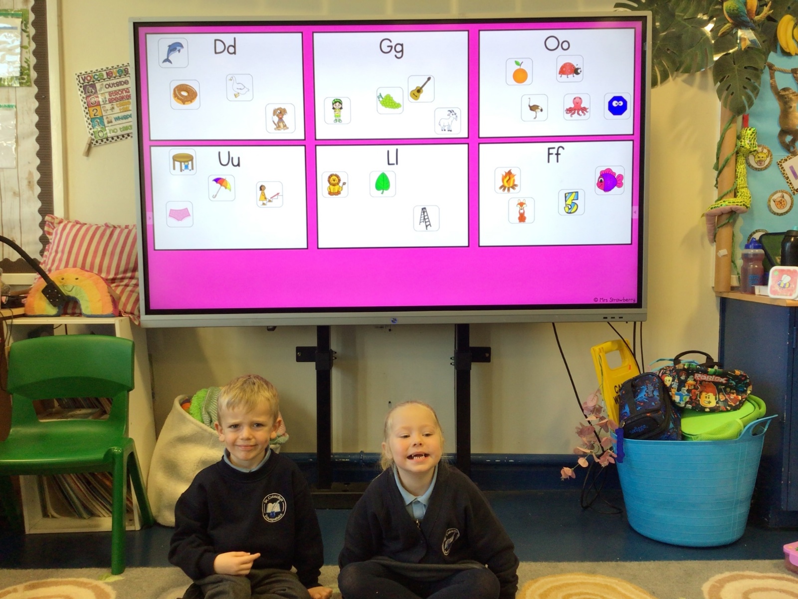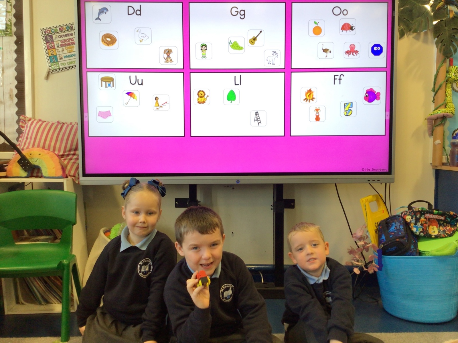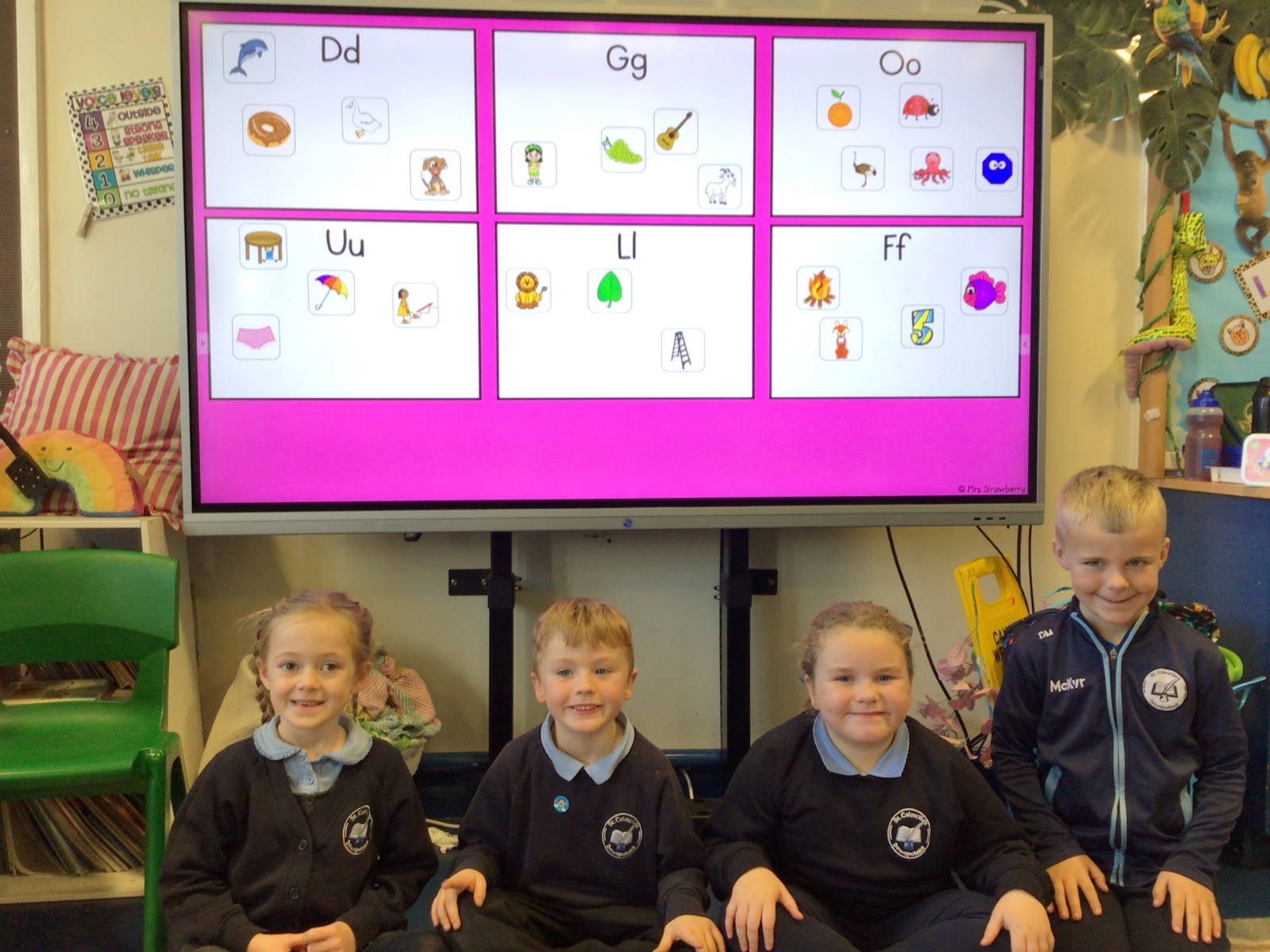 Primary 2 enjoying revising  their dgoulf sounds through a fun IWB picture sort!
