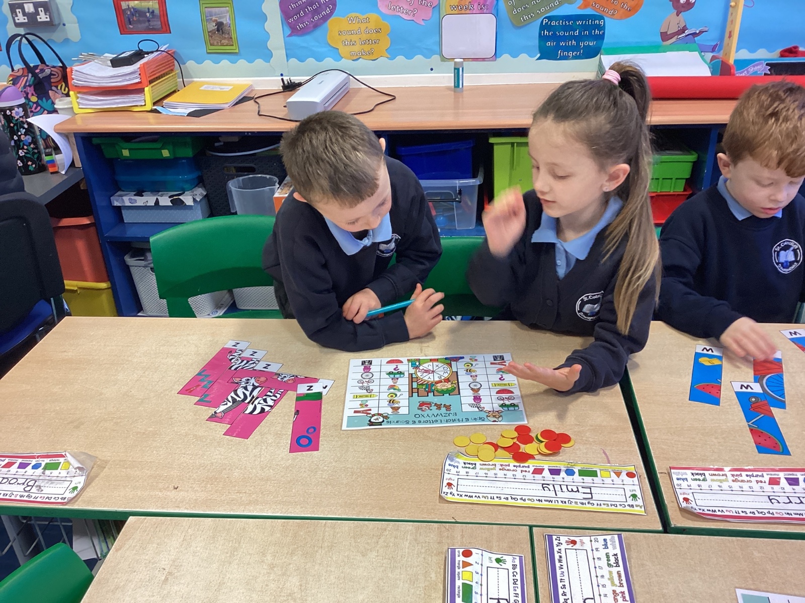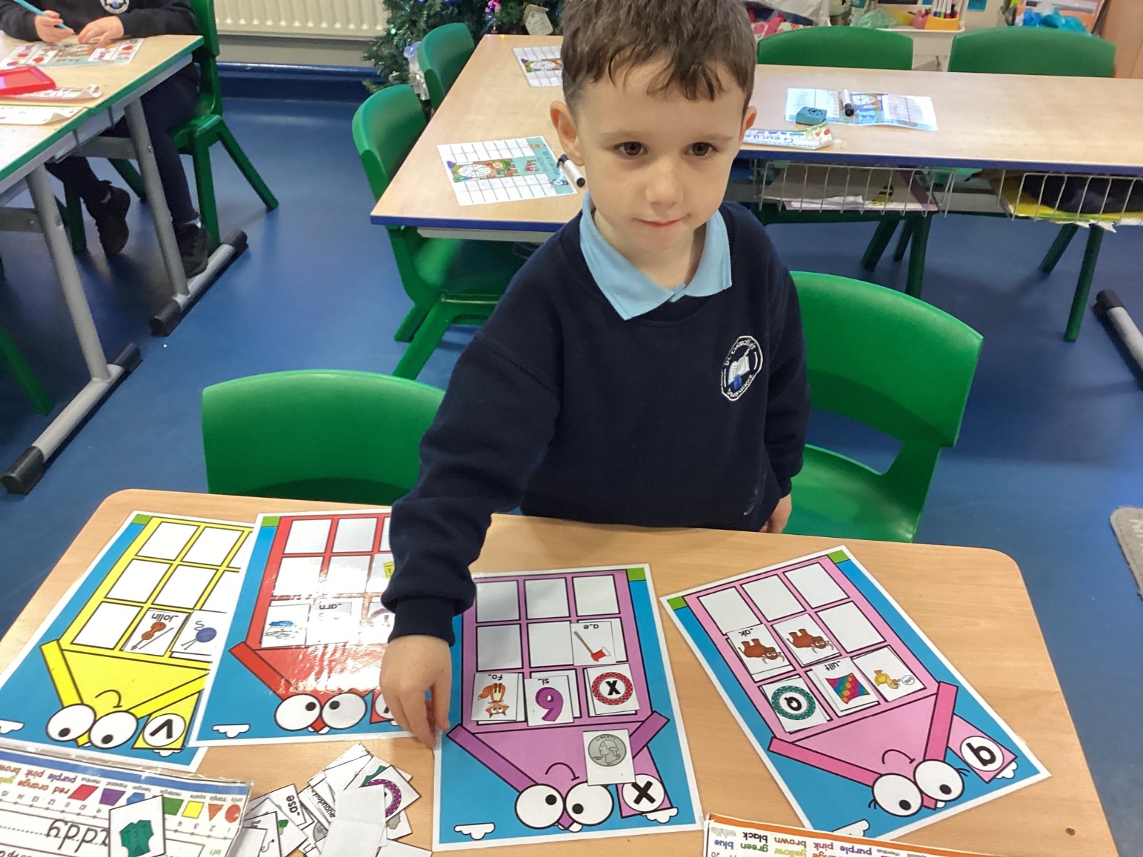 Throughout November and December, Primary Two enjoyed exploring the sounds b, j, z, w, v, y, and x through practical, engaging activities. The children matched and solved picture puzzles, sorted words into sound houses, and played targeted phonics games that encouraged careful listening and discussion. These hands-on experiences helped the children build confidence in recognising and using each sound in a meaningful way.