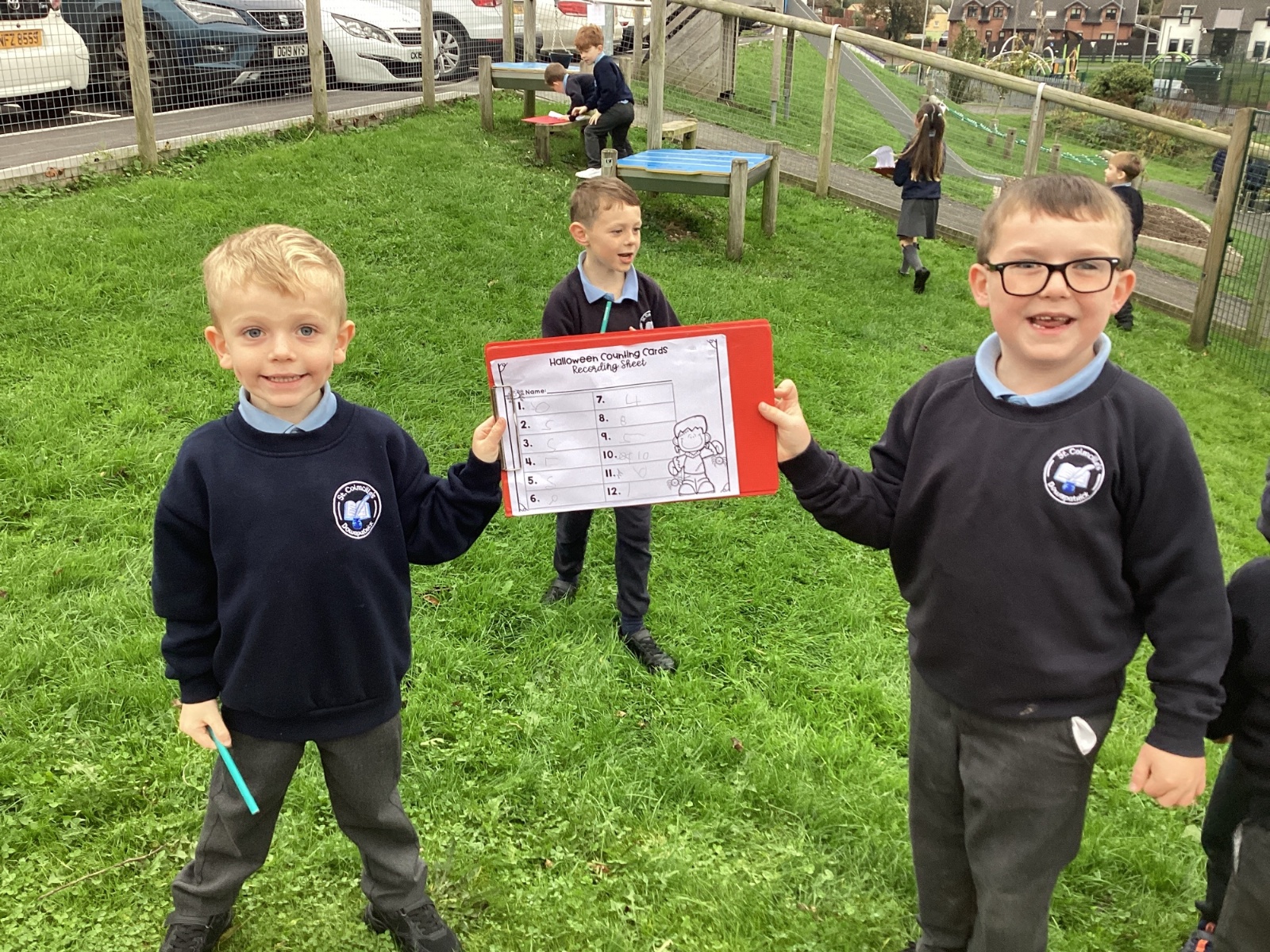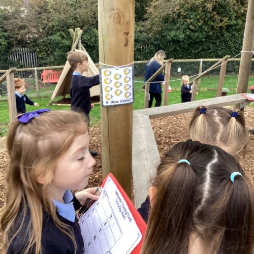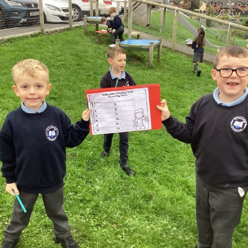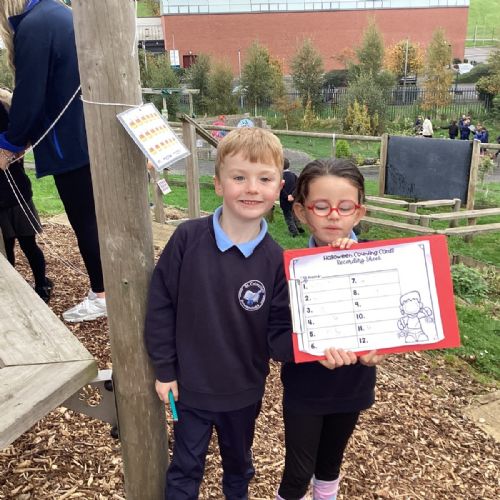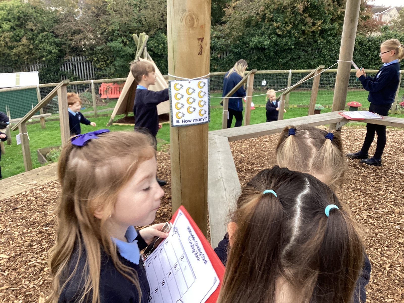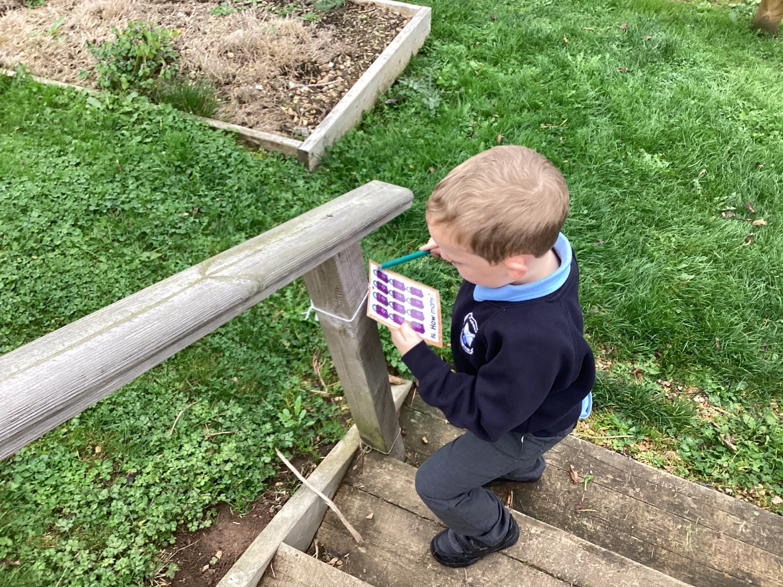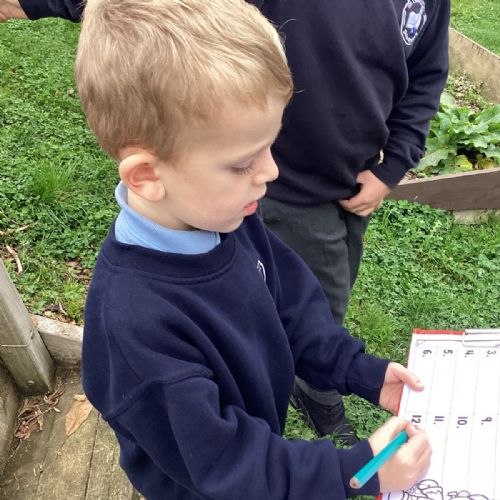 The children had a fantastic time taking part in a ‘Write the Room’ activity in the Rainbow Garden. They carefully counted the objects displayed around the space and recorded the matching numbers using correct number formation. This active learning experience helped to reinforce their counting skills in a fun and engaging outdoor setting.