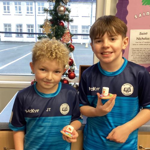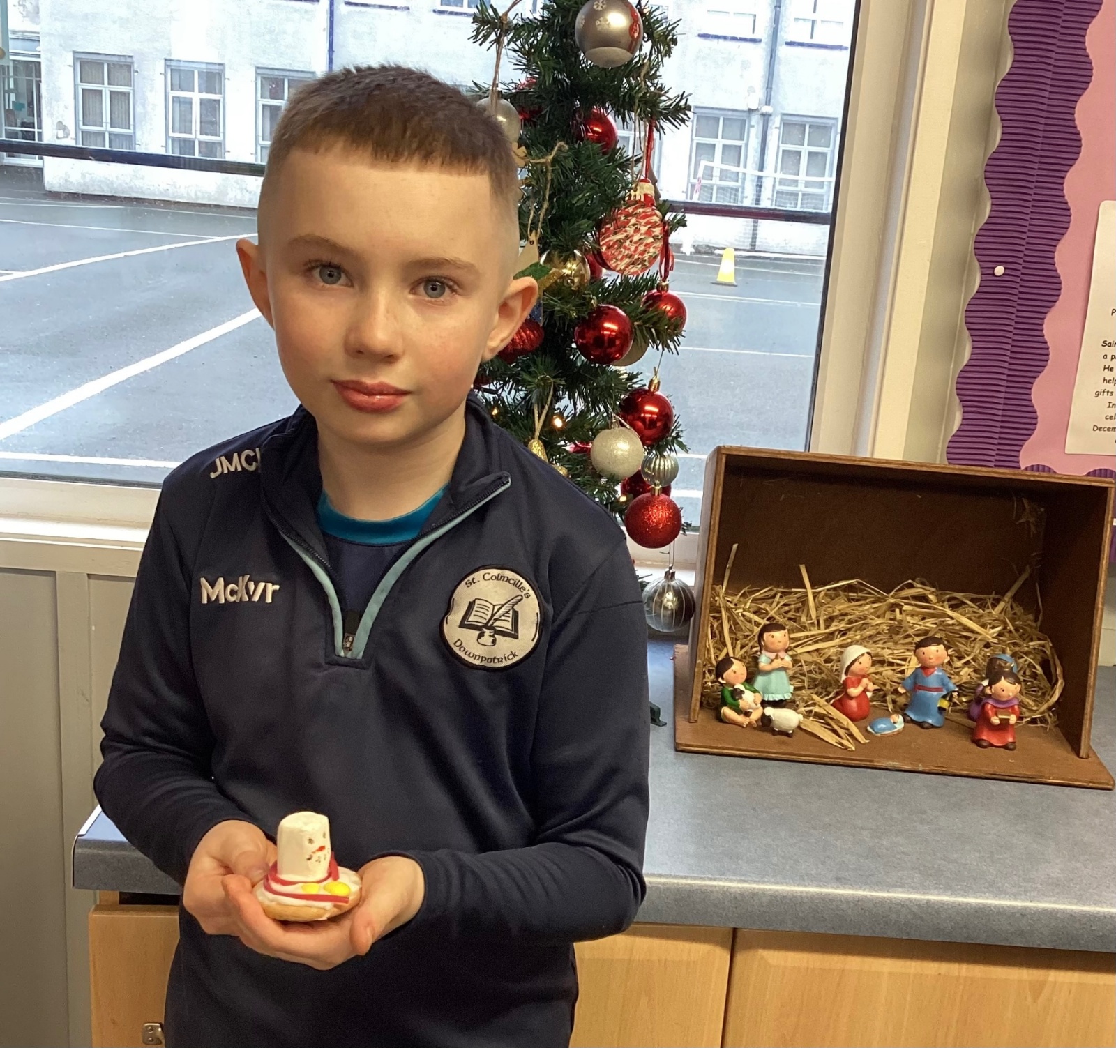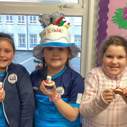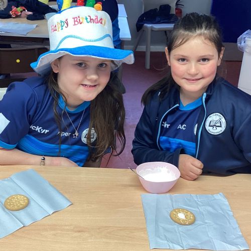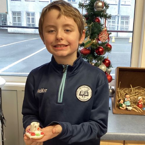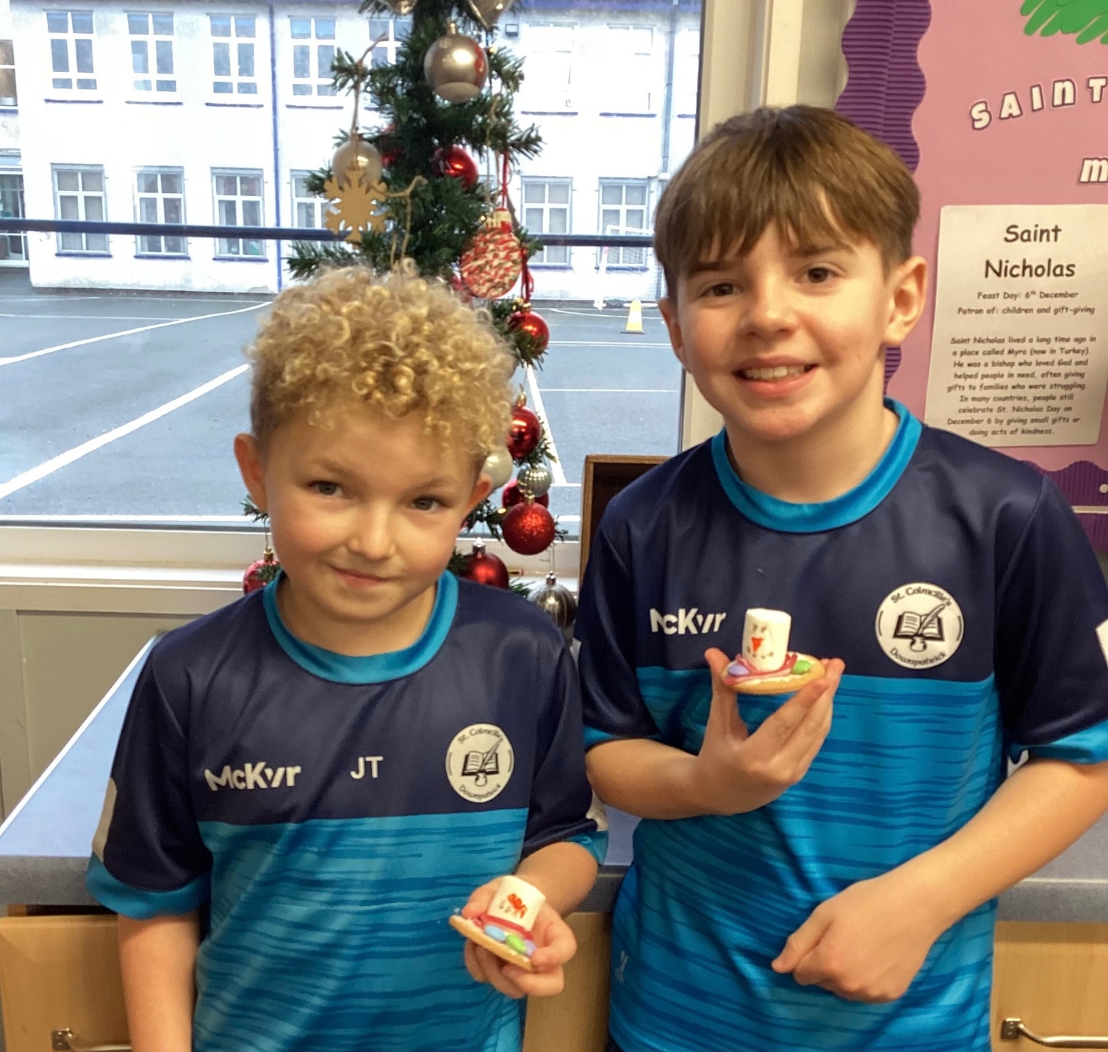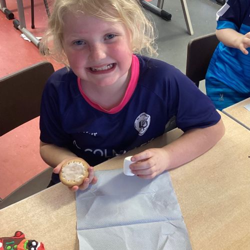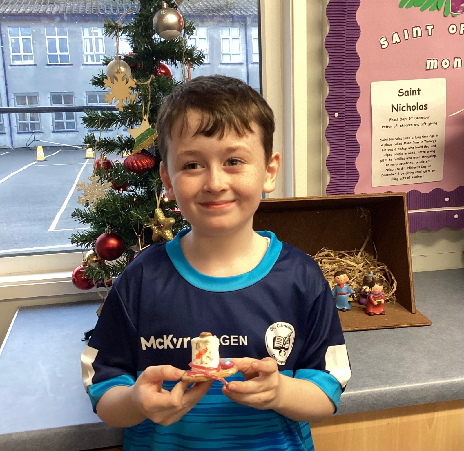 Today, P5 made melting snowman biscuits. We started with a plain biscuit, added icing to look like melted snow, popped a marshmallow on top for the snowman’s head, and used edible markers to give him a face. Then came the finishing touches: strawberry laces and Smarties for decoration. It’s safe to say these snowmen didn’t last long…