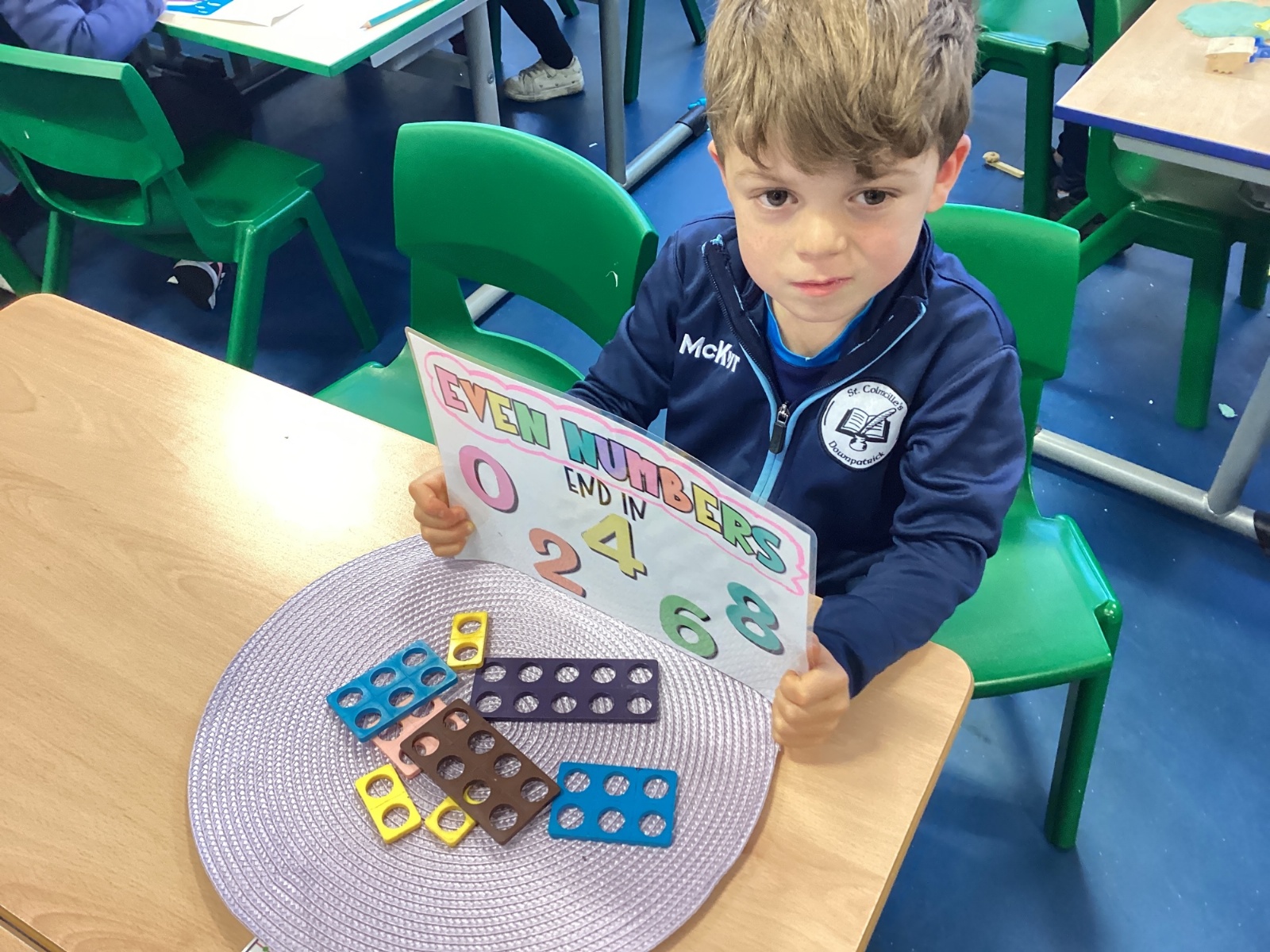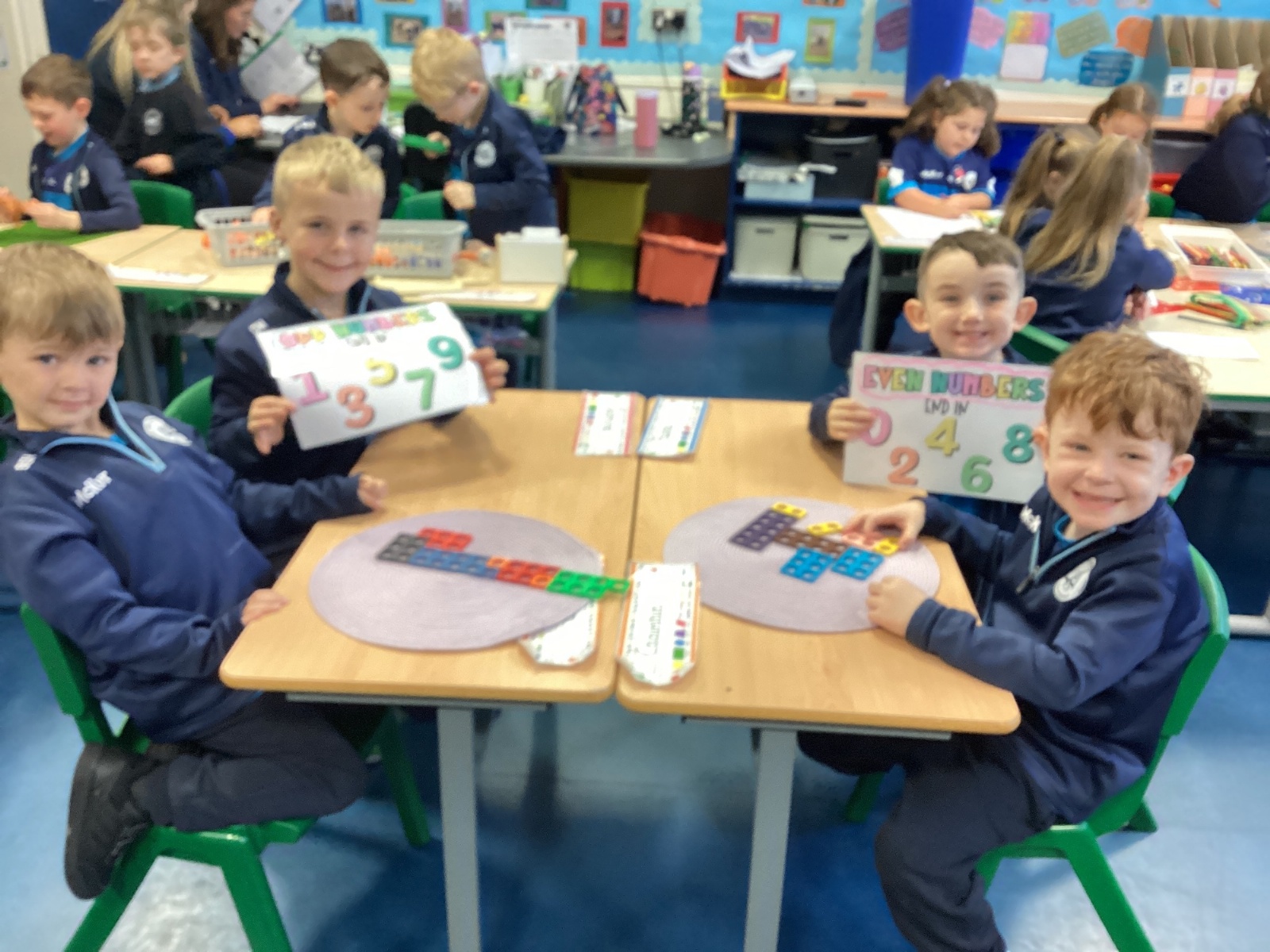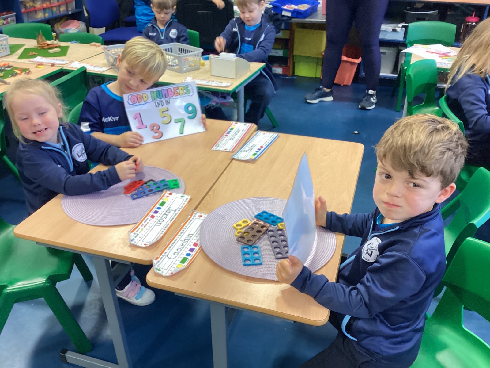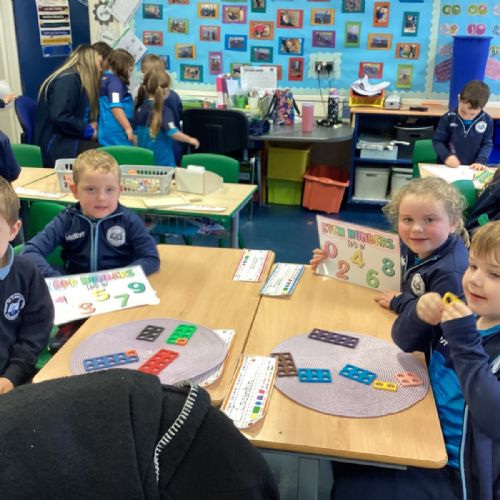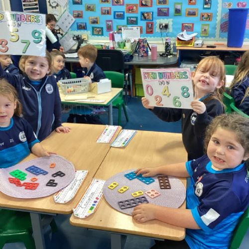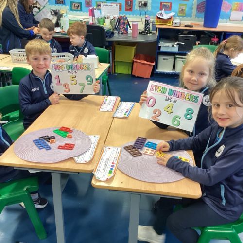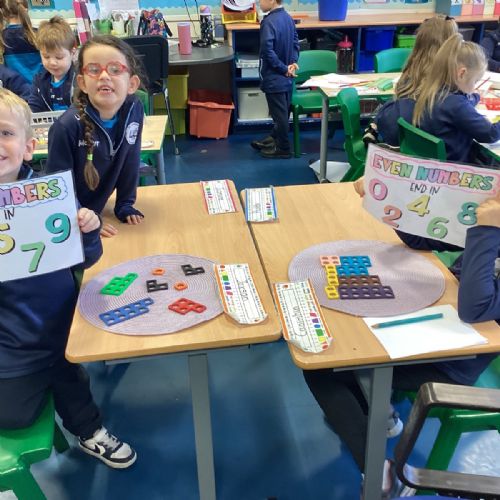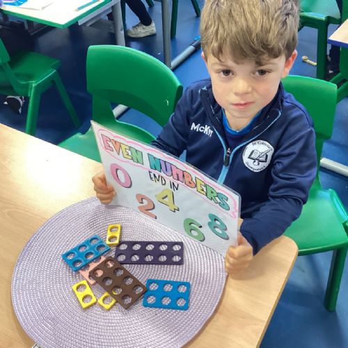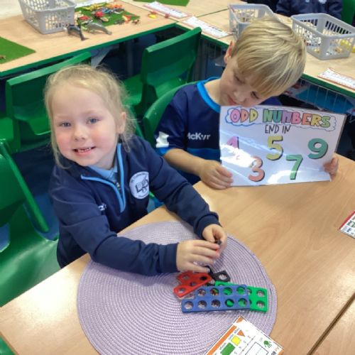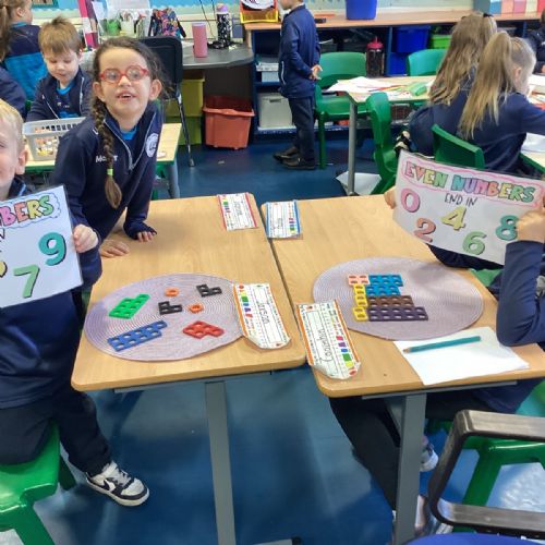 The children took part in a hands-on maths task using Numicon to sort numbers into odd and even. They explored each Numicon shape by counting the holes and checking whether they could be paired equally. If all the holes paired up with none left over, the number was even; if one hole was left on its own, the number was odd. This practical approach helped the children understand the concept clearly and explain their thinking with confidence.