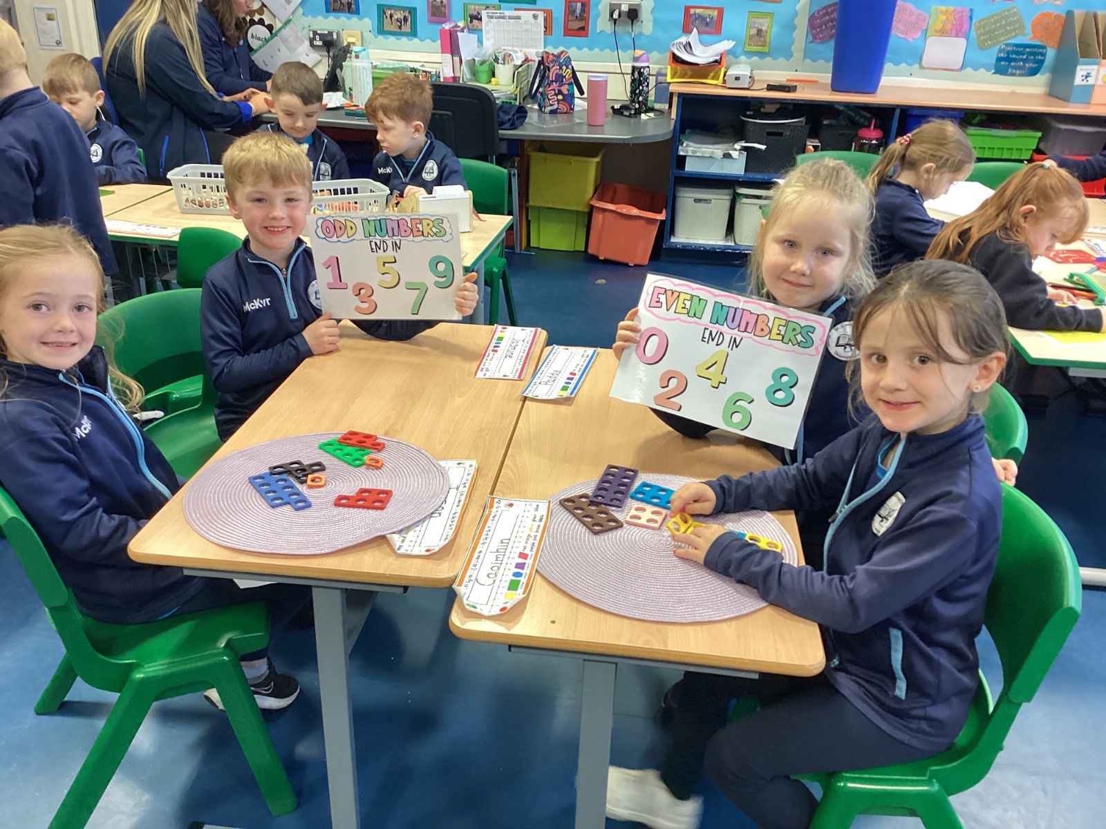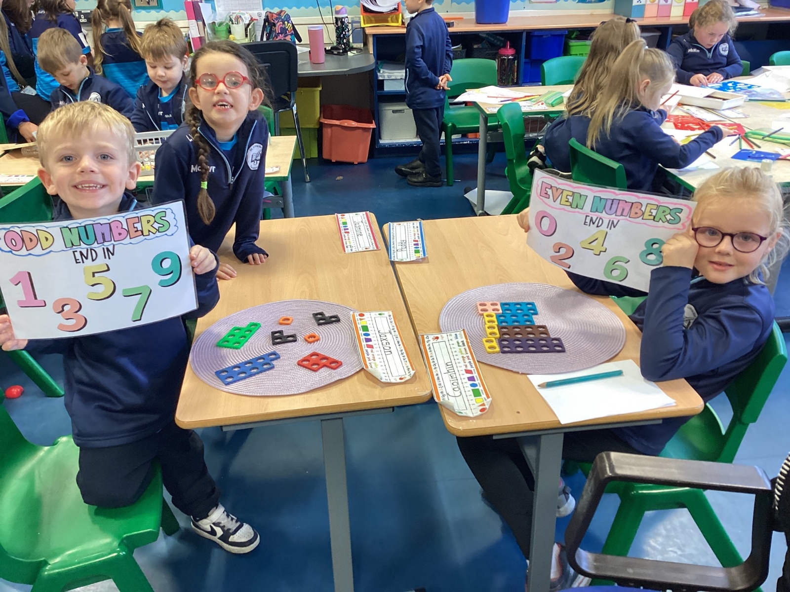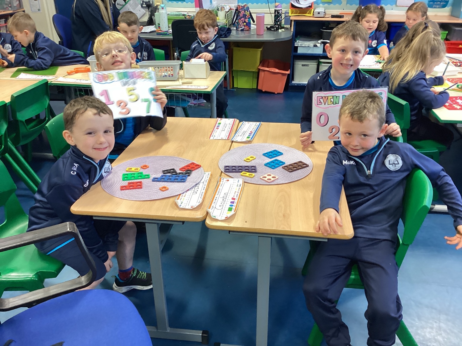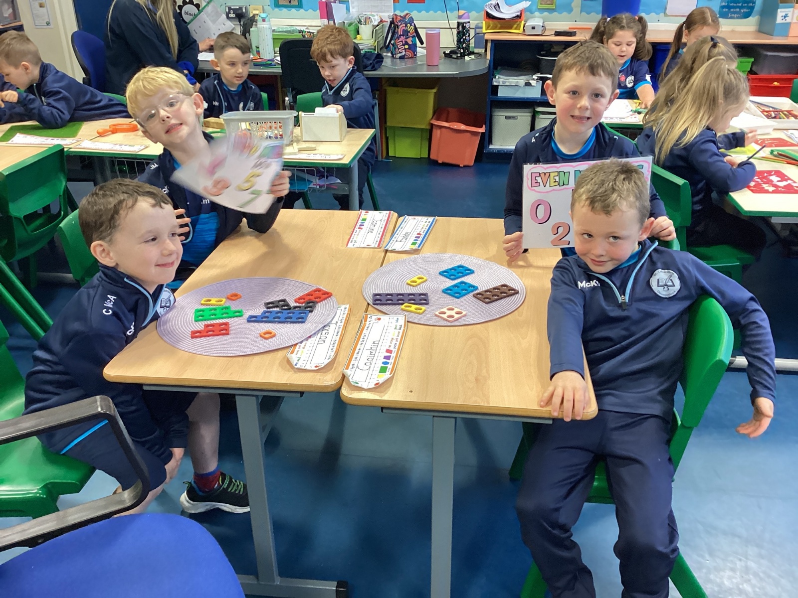 The children took part in a hands-on maths task using Numicon to sort numbers into odd and even. They explored each Numicon shape by counting the holes and checking whether they could be paired equally. If all the holes paired up with none left over, the number was even; if one hole was left on its own, the number was odd. This practical approach helped the children understand the concept clearly and explain their thinking with confidence.