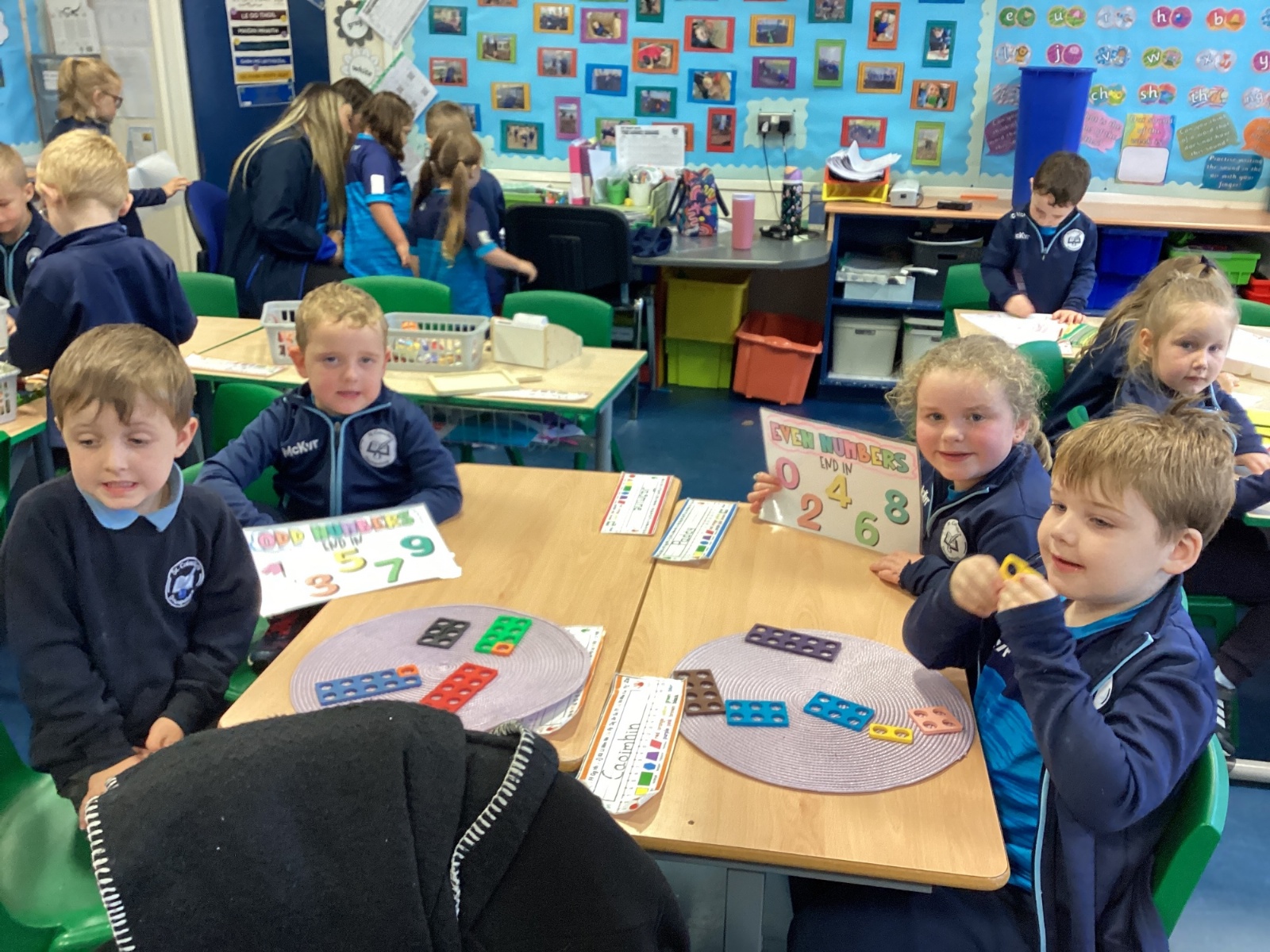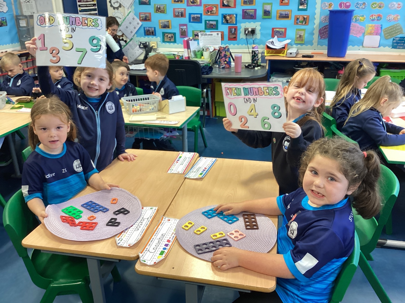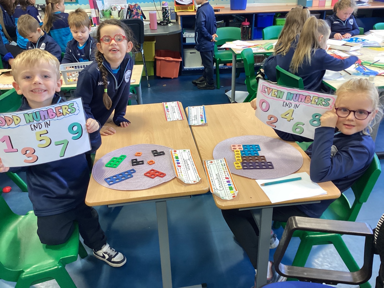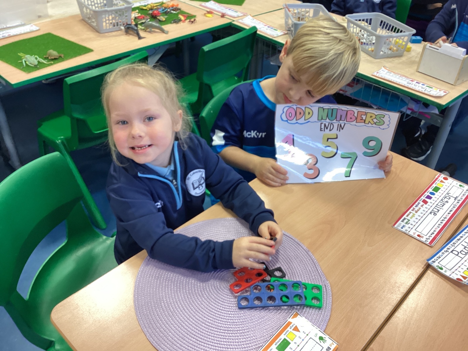 The children took part in a hands-on maths task using Numicon to sort numbers into odd and even. They explored each Numicon shape by counting the holes and checking whether they could be paired equally. If all the holes paired up with none left over, the number was even; if one hole was left on its own, the number was odd. This practical approach helped the children understand the concept clearly and explain their thinking with confidence.