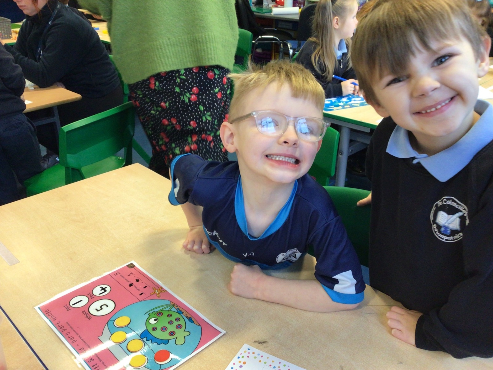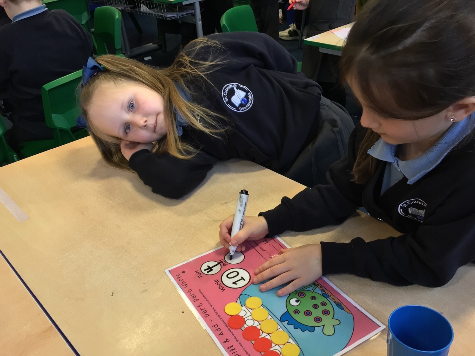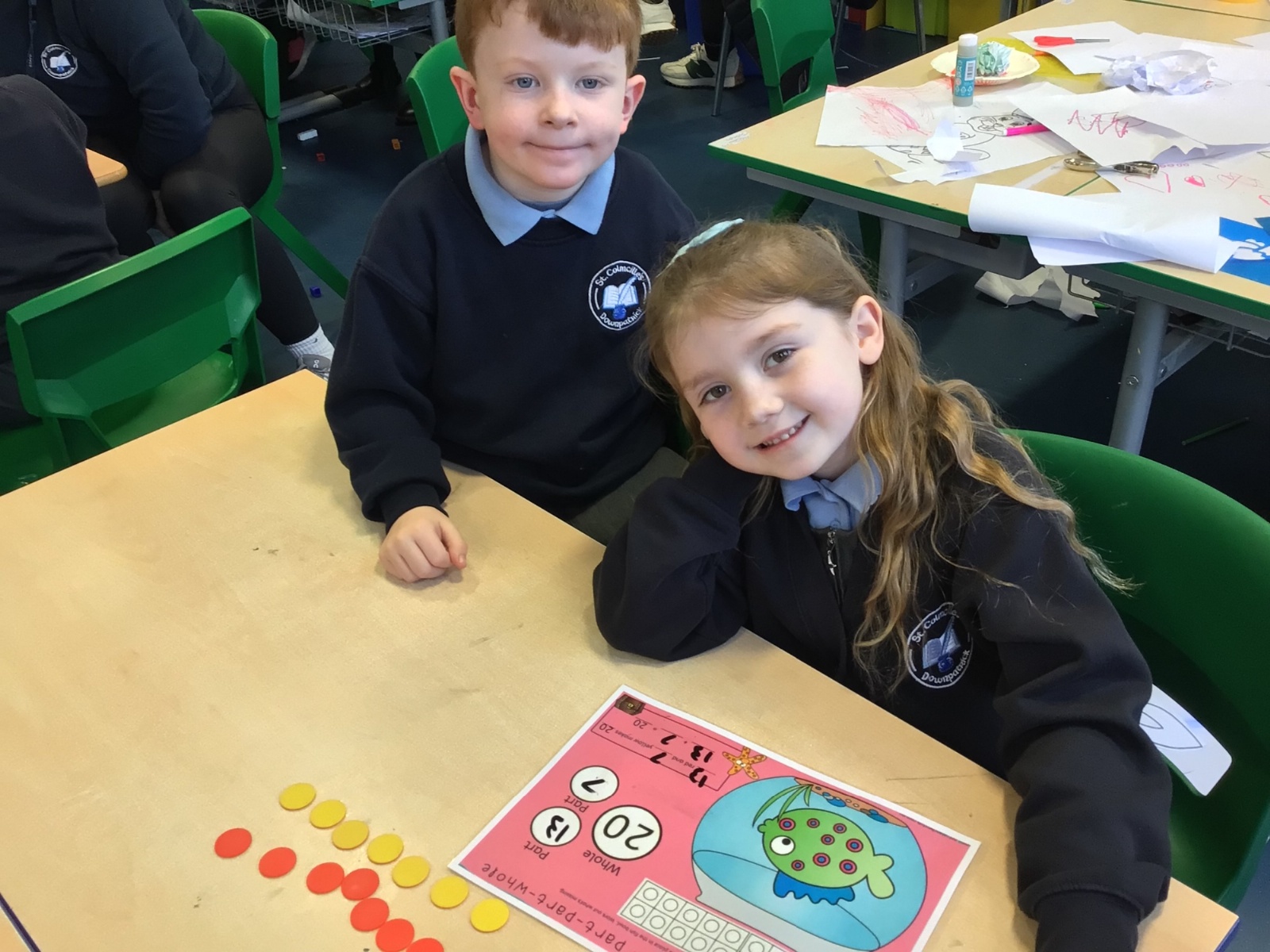 In Term 1, we have explored addition. We were reintroduced to Gus the Plus, who helped us remember how to add numbers together. We played a range of fun and engaging games using dominoes, counters and Pom-poms to help us add by counting objects. We also used the part-part-whole model to deepen our understanding of addition. We cannot wait to explore further strategies in Term 2. Some of us are even beginning to add mentally- great work, P2!