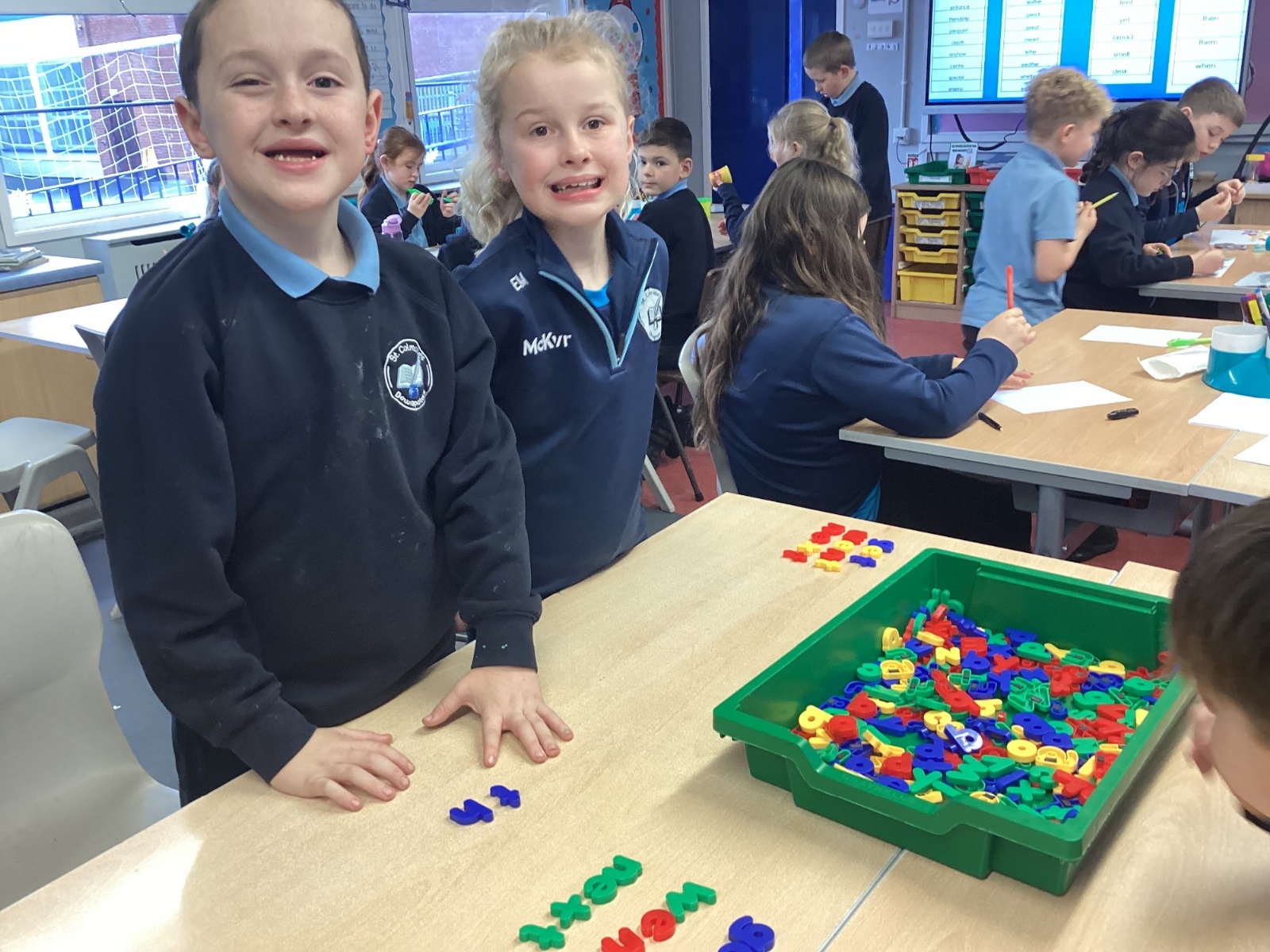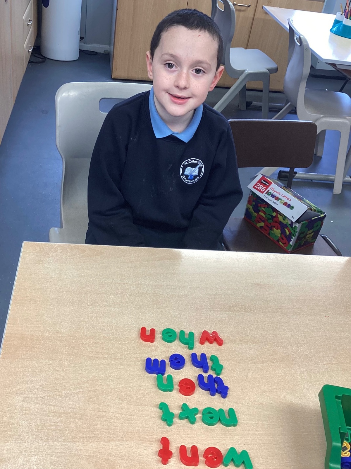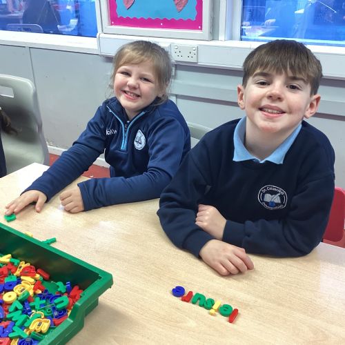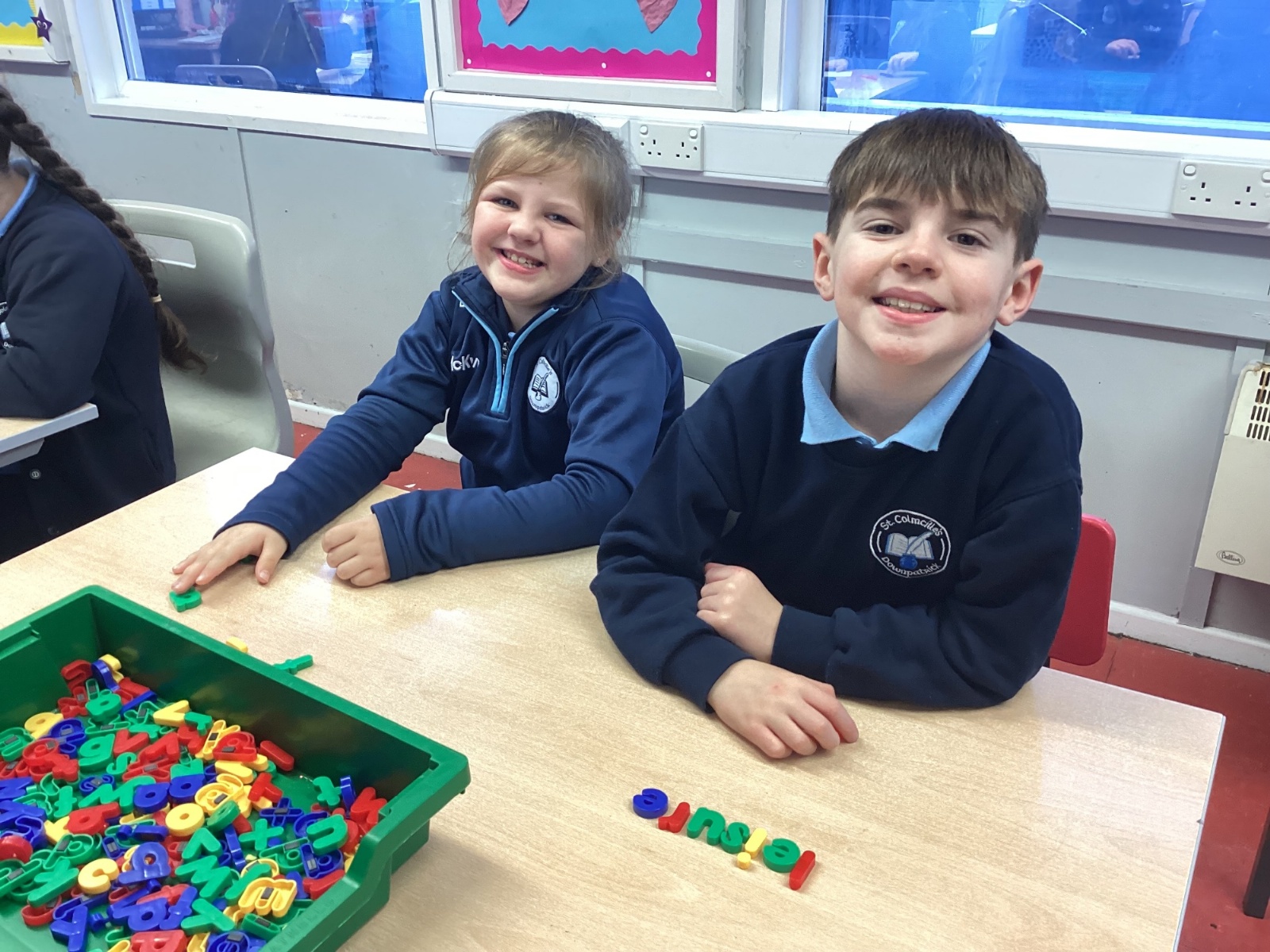 The pupils moved around the room completing a range of practical activities to practice their spelling words using the /e/ sound.