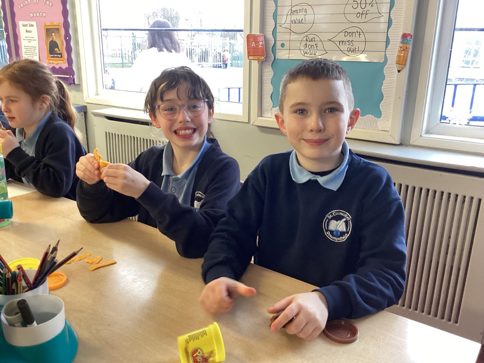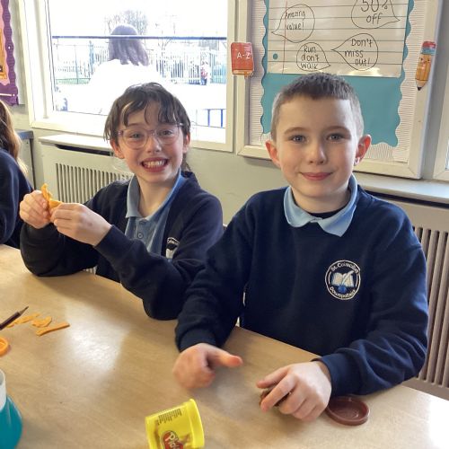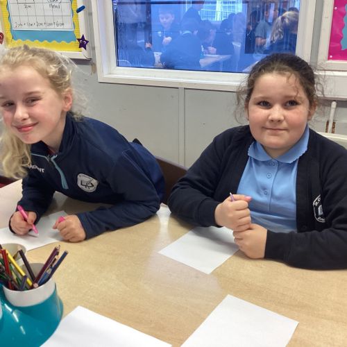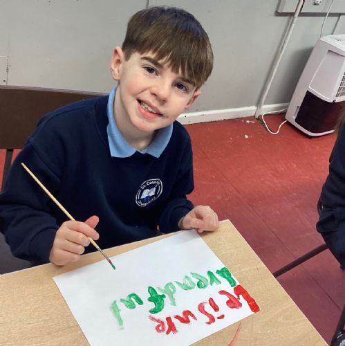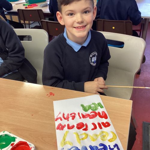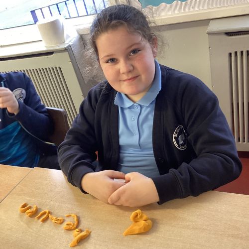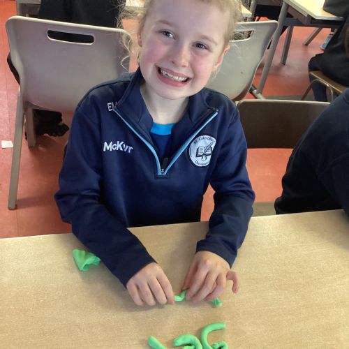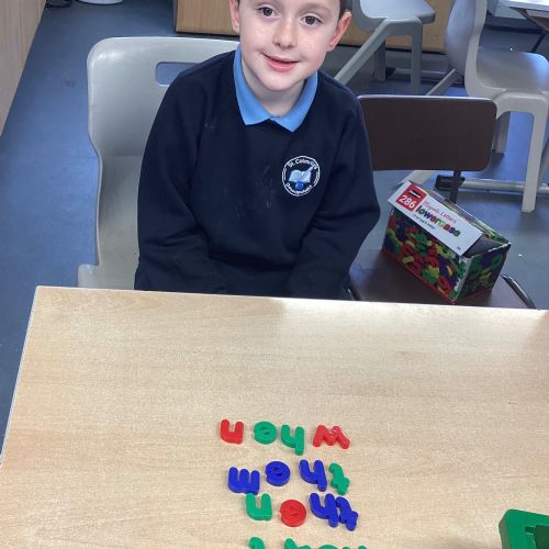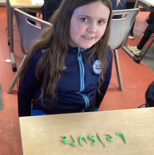 The pupils moved around the room completing a range of practical activities to practice their spelling words using the /e/ sound.