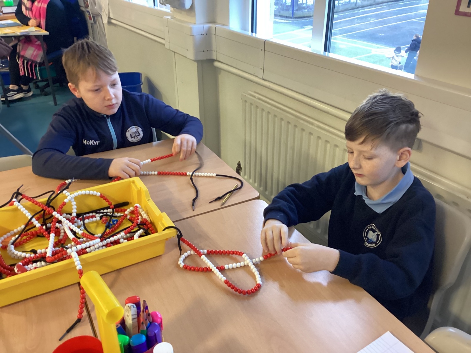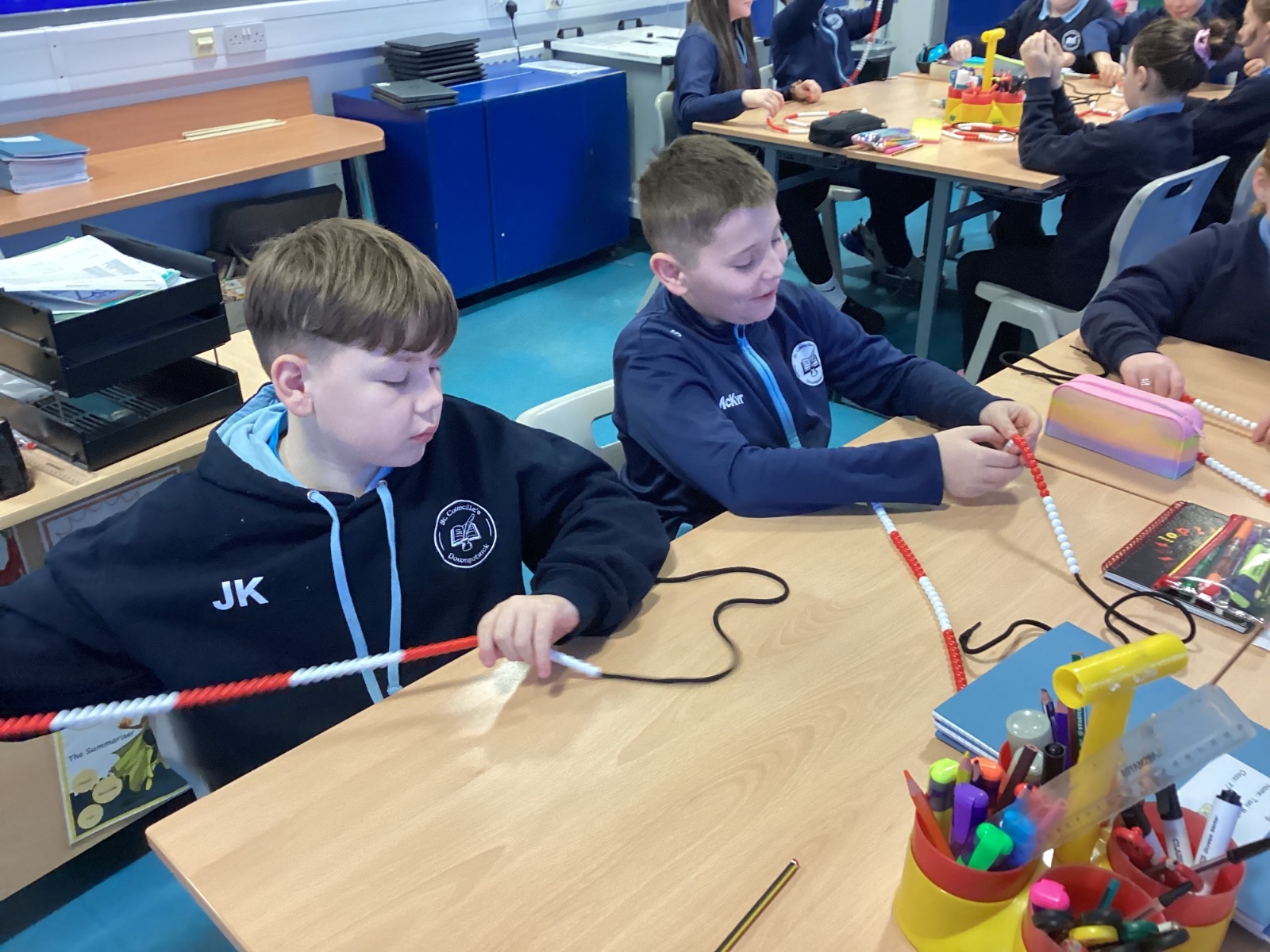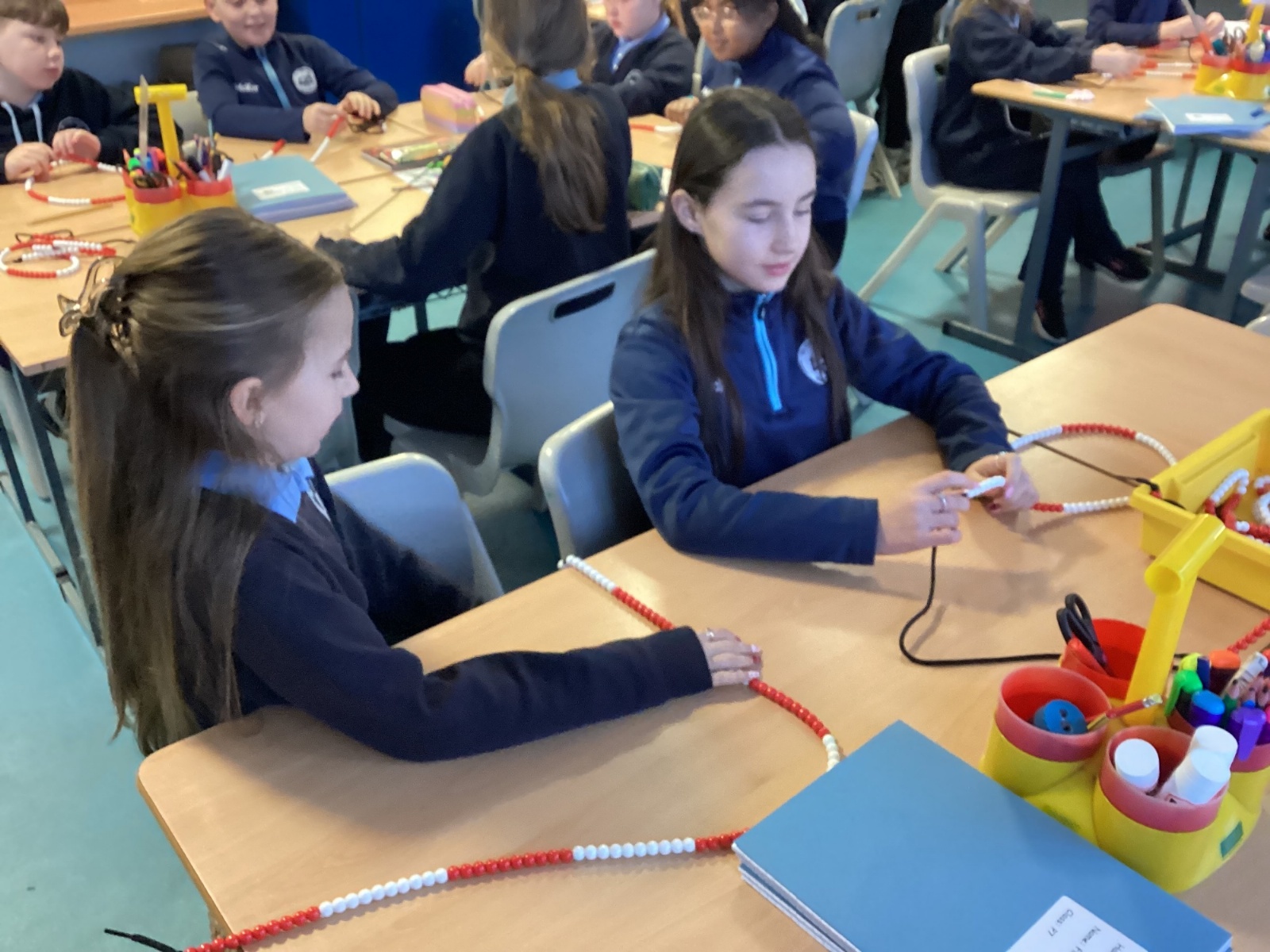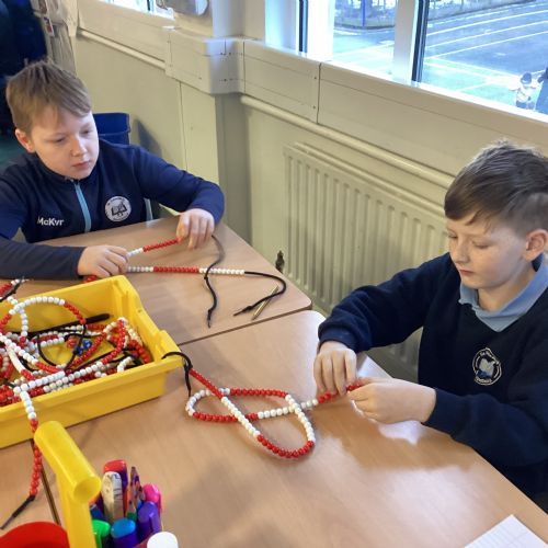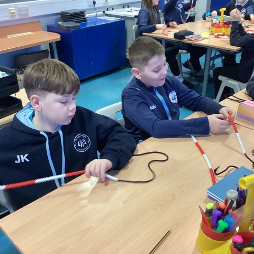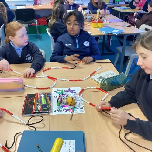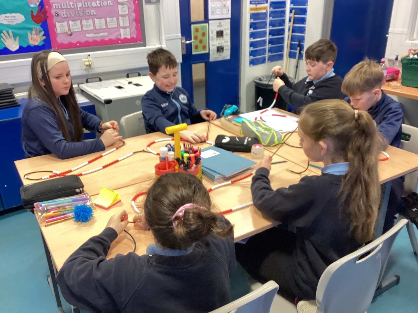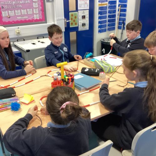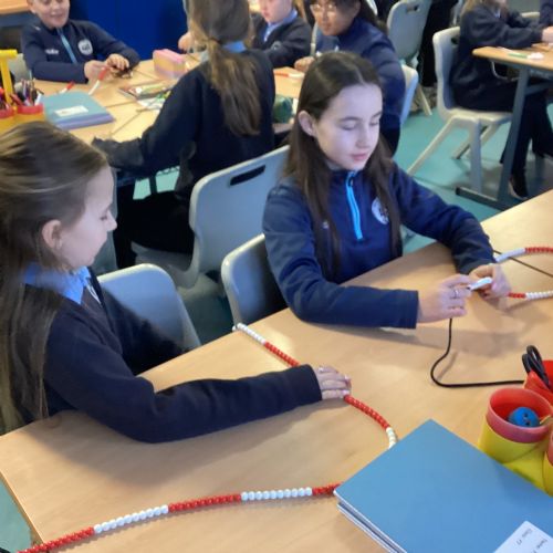 Today in our mental maths practise, we used bead strings to explore the connection between multiplication and the process of repeated addition.