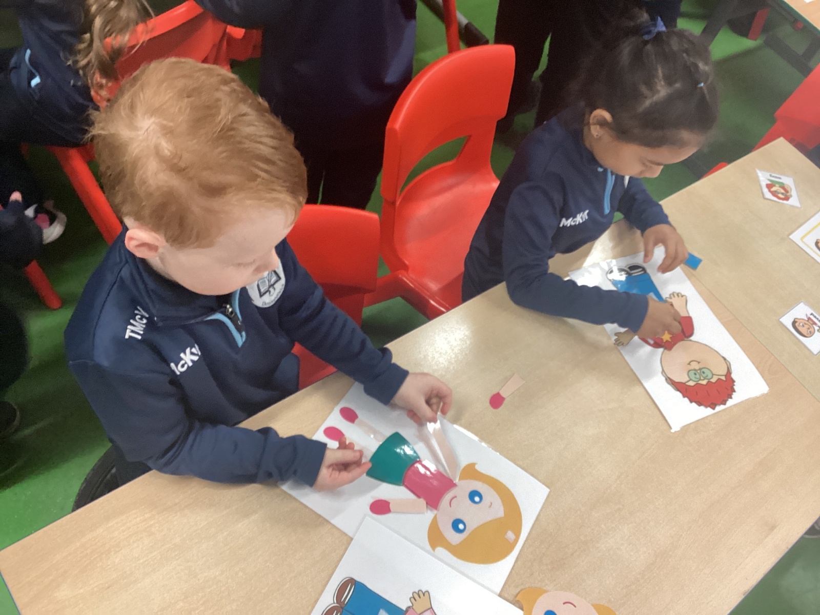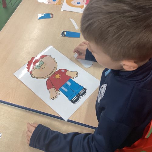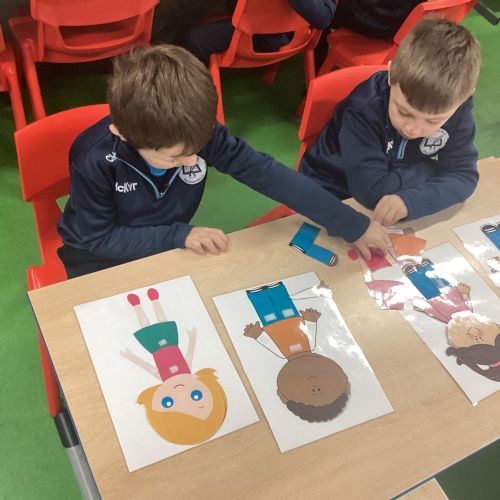 • Drew around each other’s bodies, helping to identify and label body parts