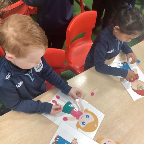 This week, the children have been learning to name different parts of the body and face. We explored this learning through a range of fun, active experiences to help build vocabulary and understanding.