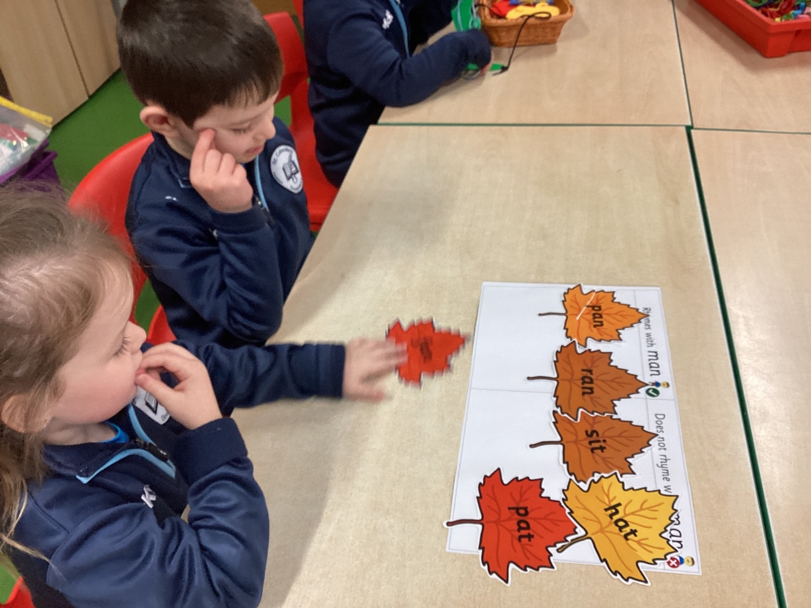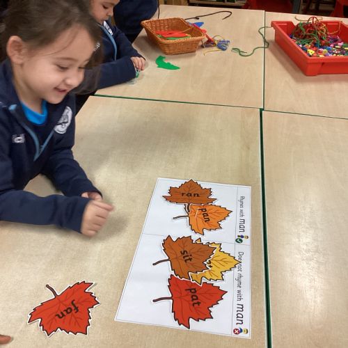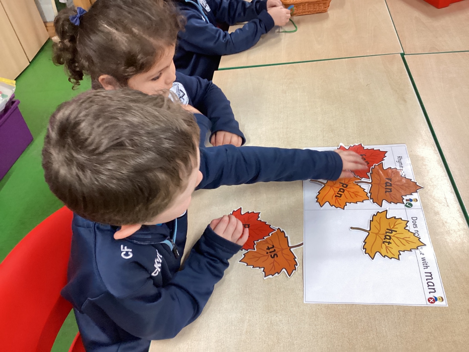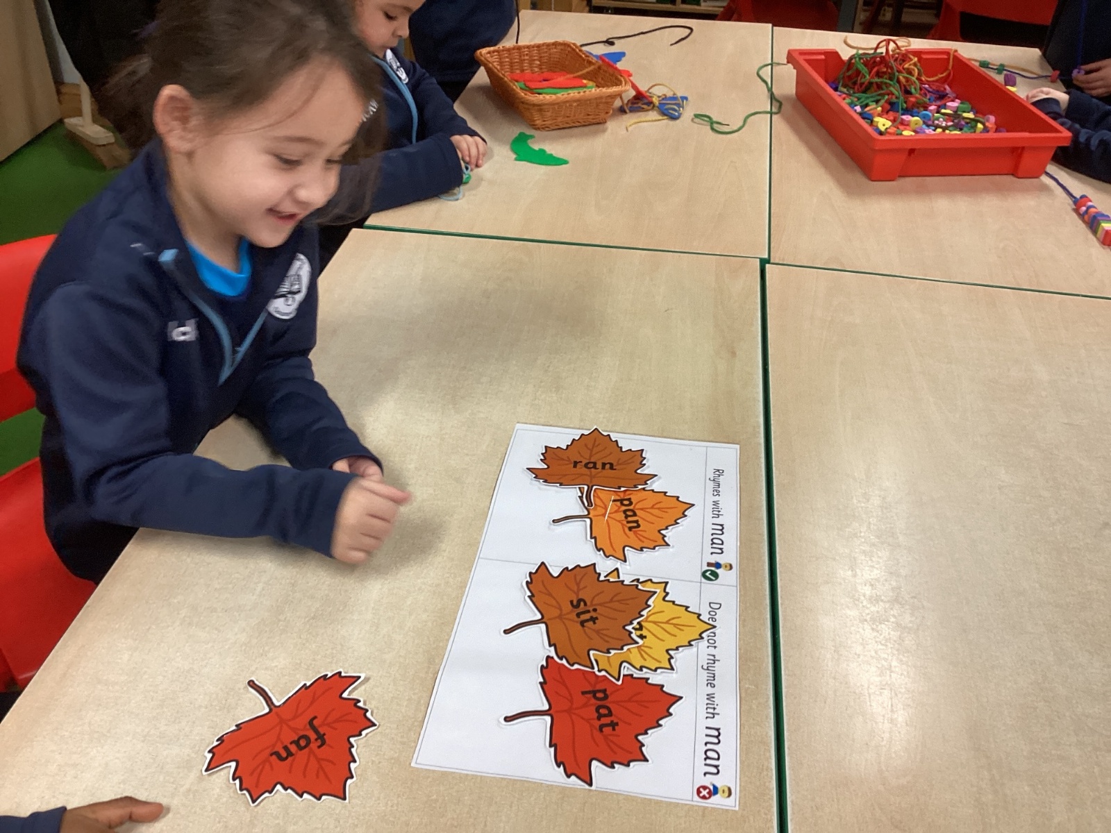 As a focus activity, the children took part in a rhyming task, sorting words that rhyme with “man”. This helped to develop early phonics skills, listening, and vocabulary.