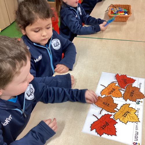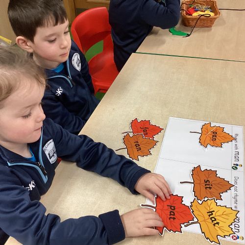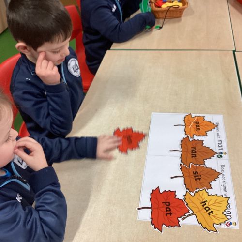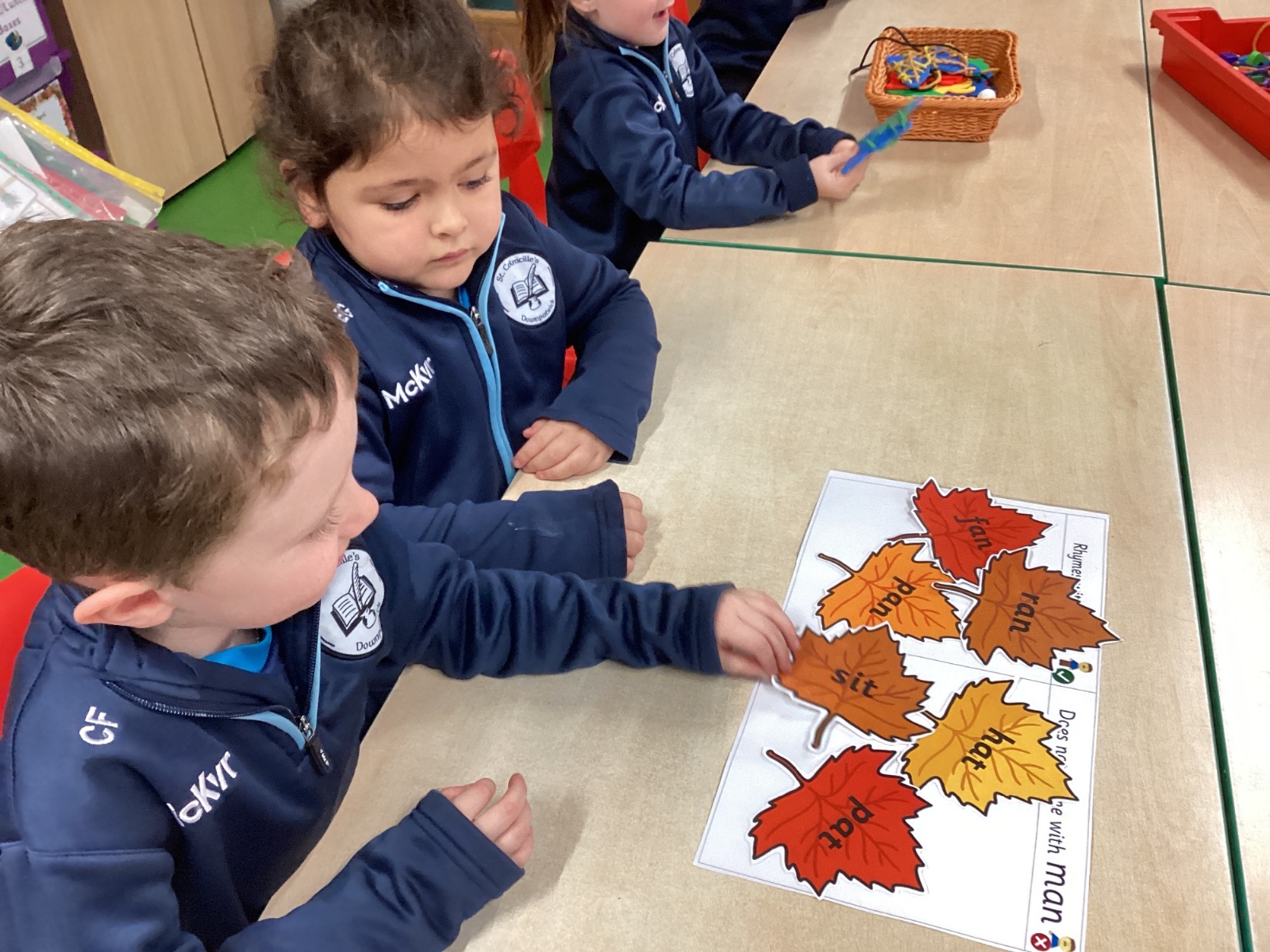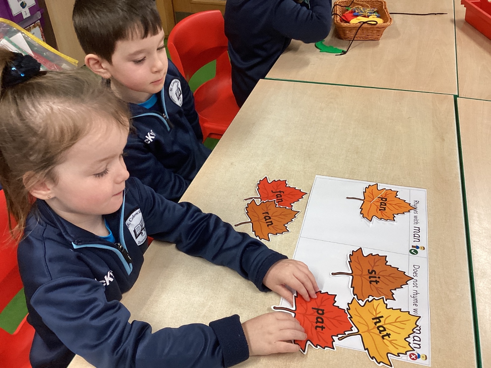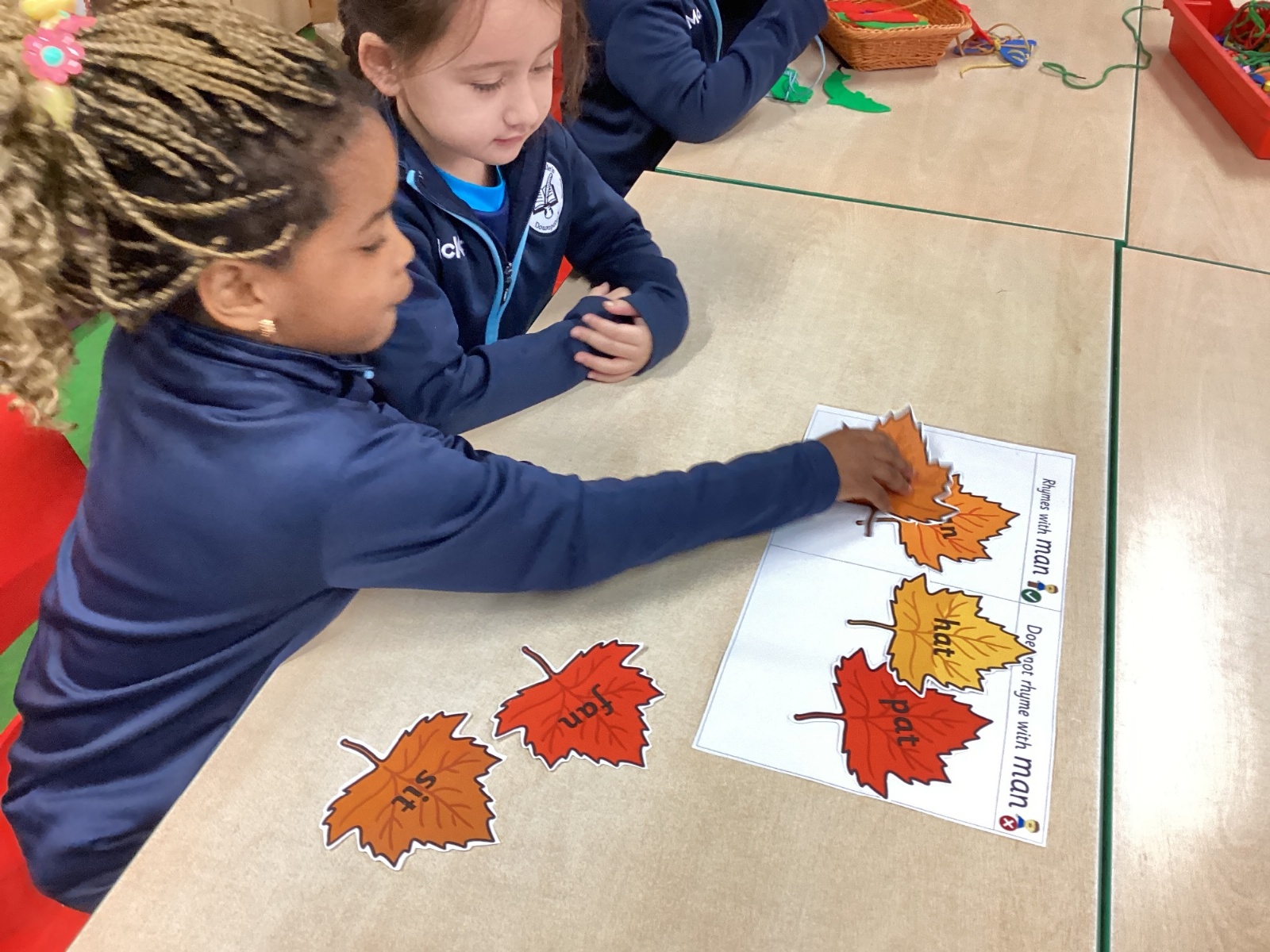 As a focus activity, the children took part in a rhyming task, sorting words that rhyme with “man”. This helped to develop early phonics skills, listening, and vocabulary.