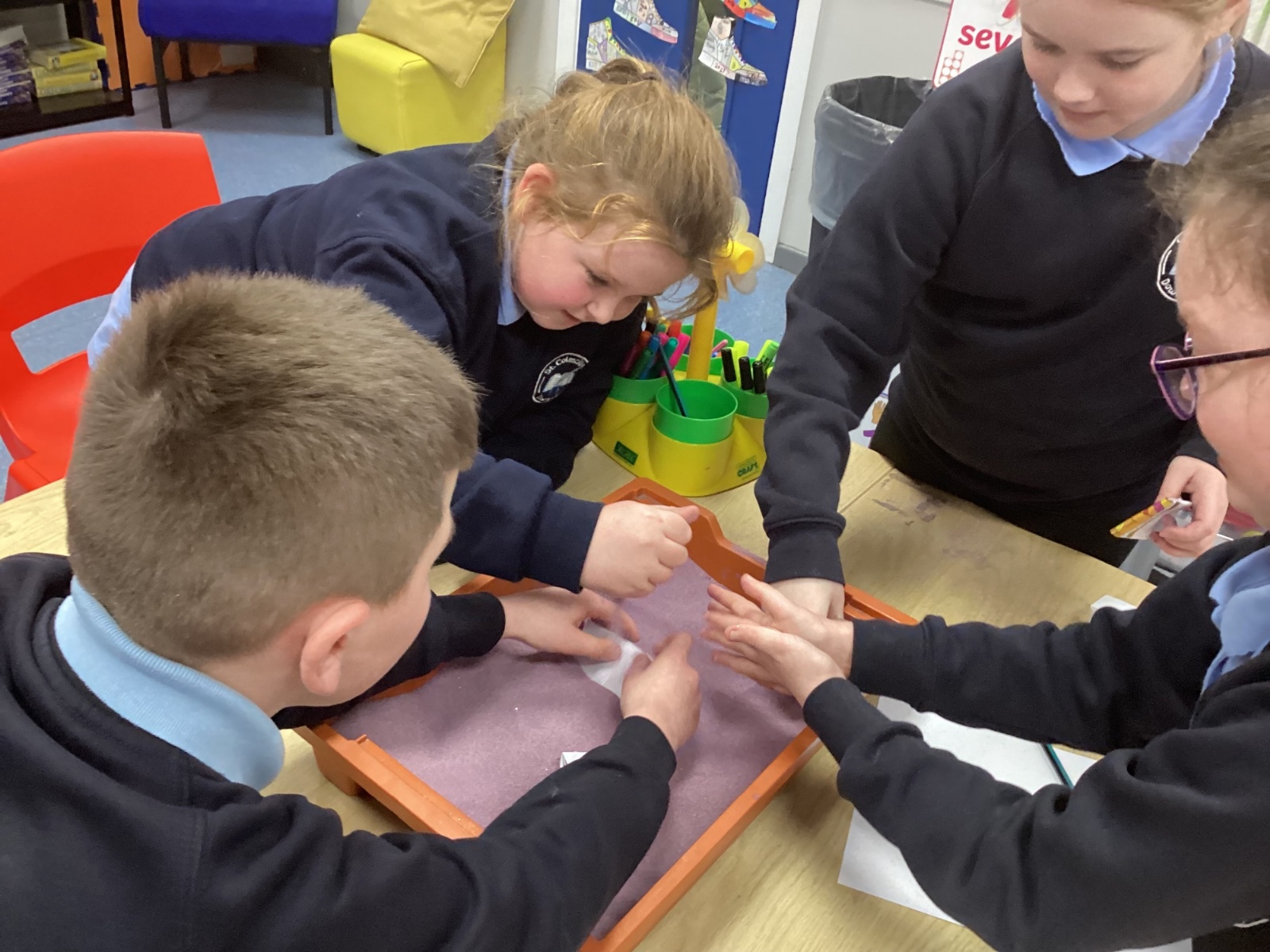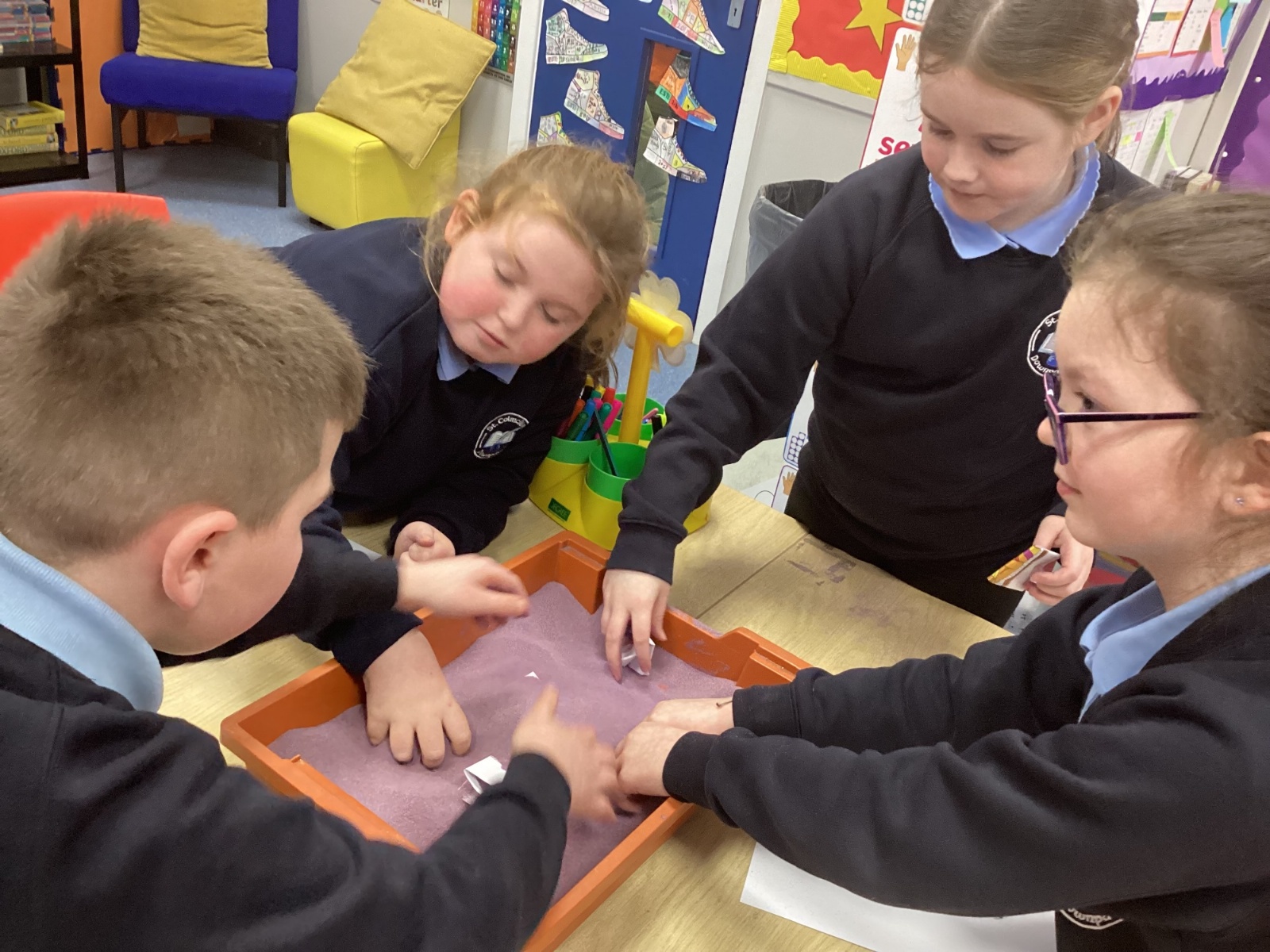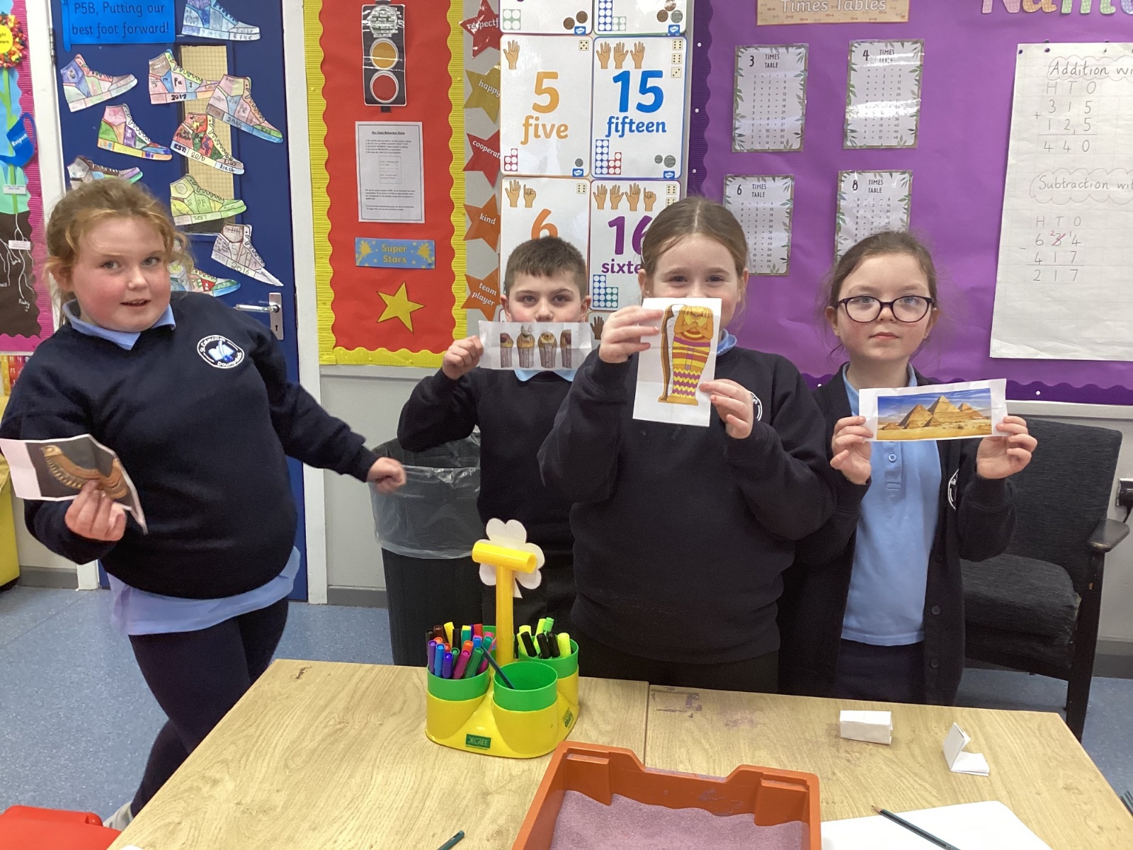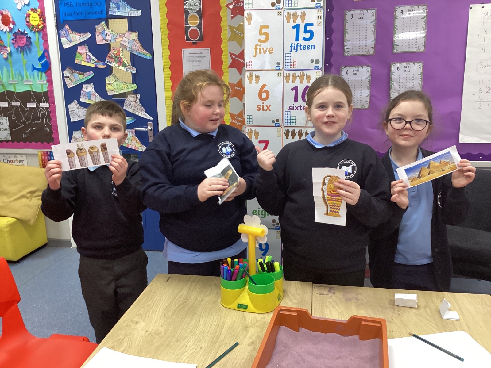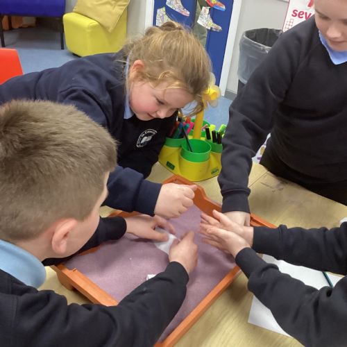 The children participated in a range of fun activities to reveal the topic of Egypt. They began by completing a hieroglyphic puzzle and decoding a secret message. Afterwards, they dug in the sand to uncover hidden clues. It was an exciting session, and the children were thrilled to discover that their new topic is Ancient Egypt.