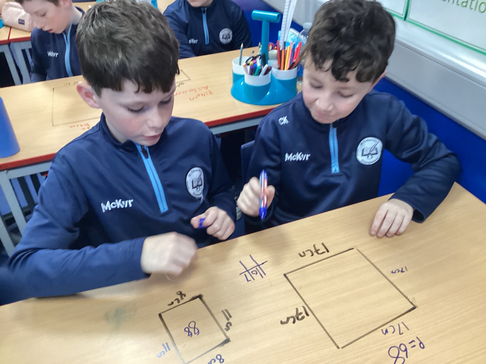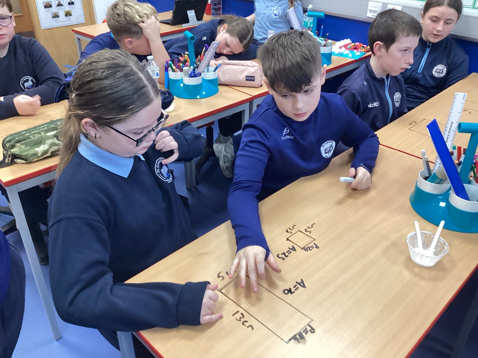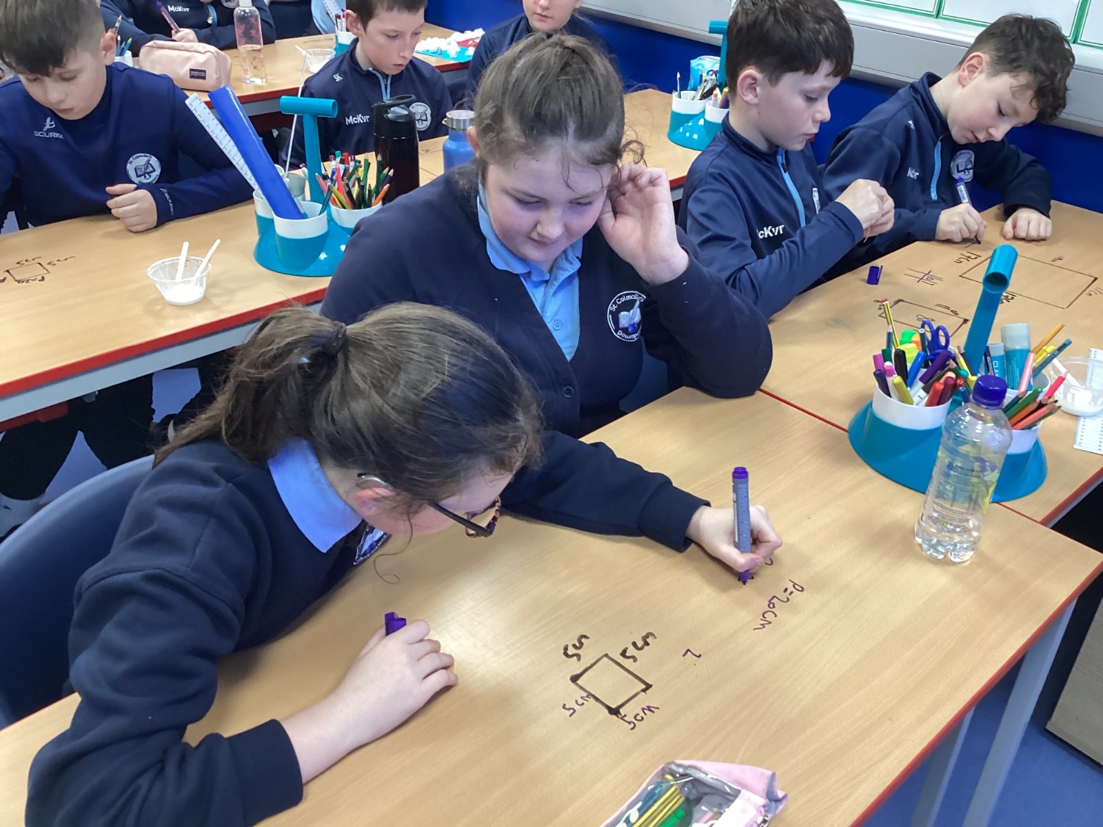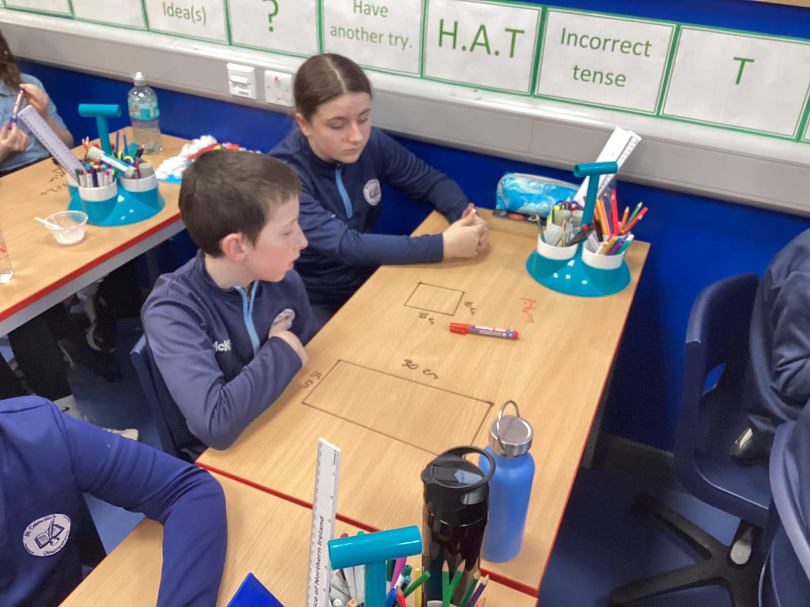 Today 7B learnt the formula for finding the area of regular 4-sided polygons. 7B had a go at challenging each other to find the perimeter of their own designs as well as the area and recording their answer in cm2.