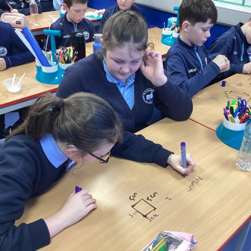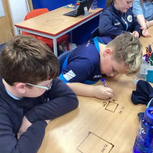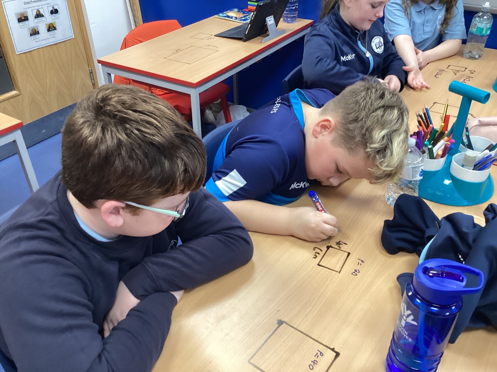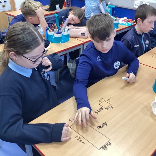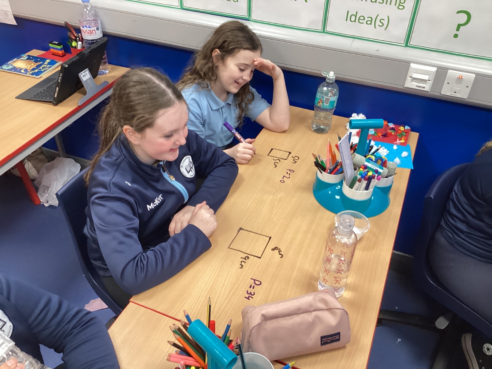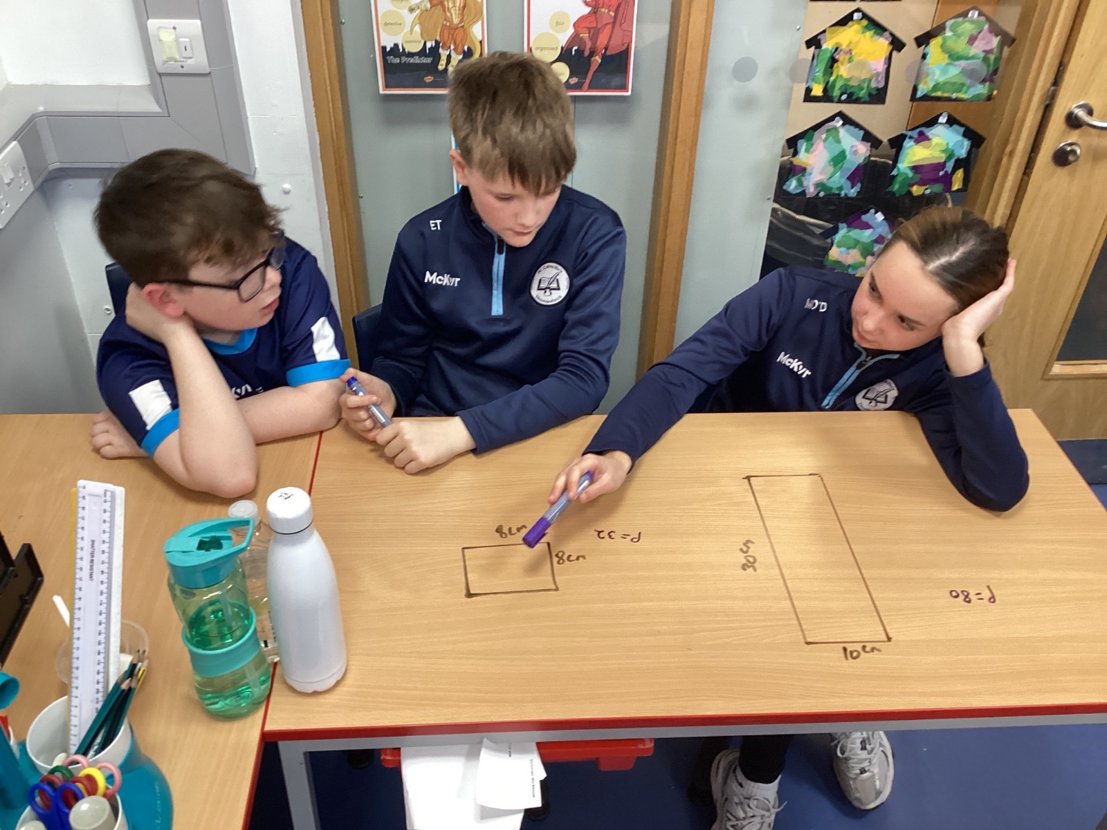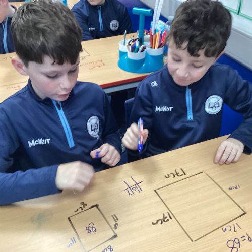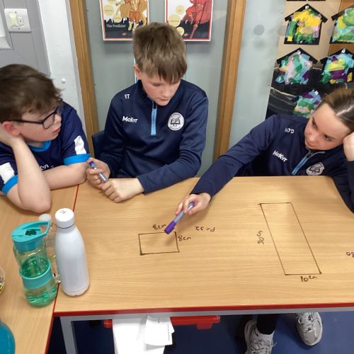 Today 7B learnt the formula for finding the area of regular 4-sided polygons. 7B had a go at challenging each other to find the perimeter of their own designs as well as the area and recording their answer in cm2.