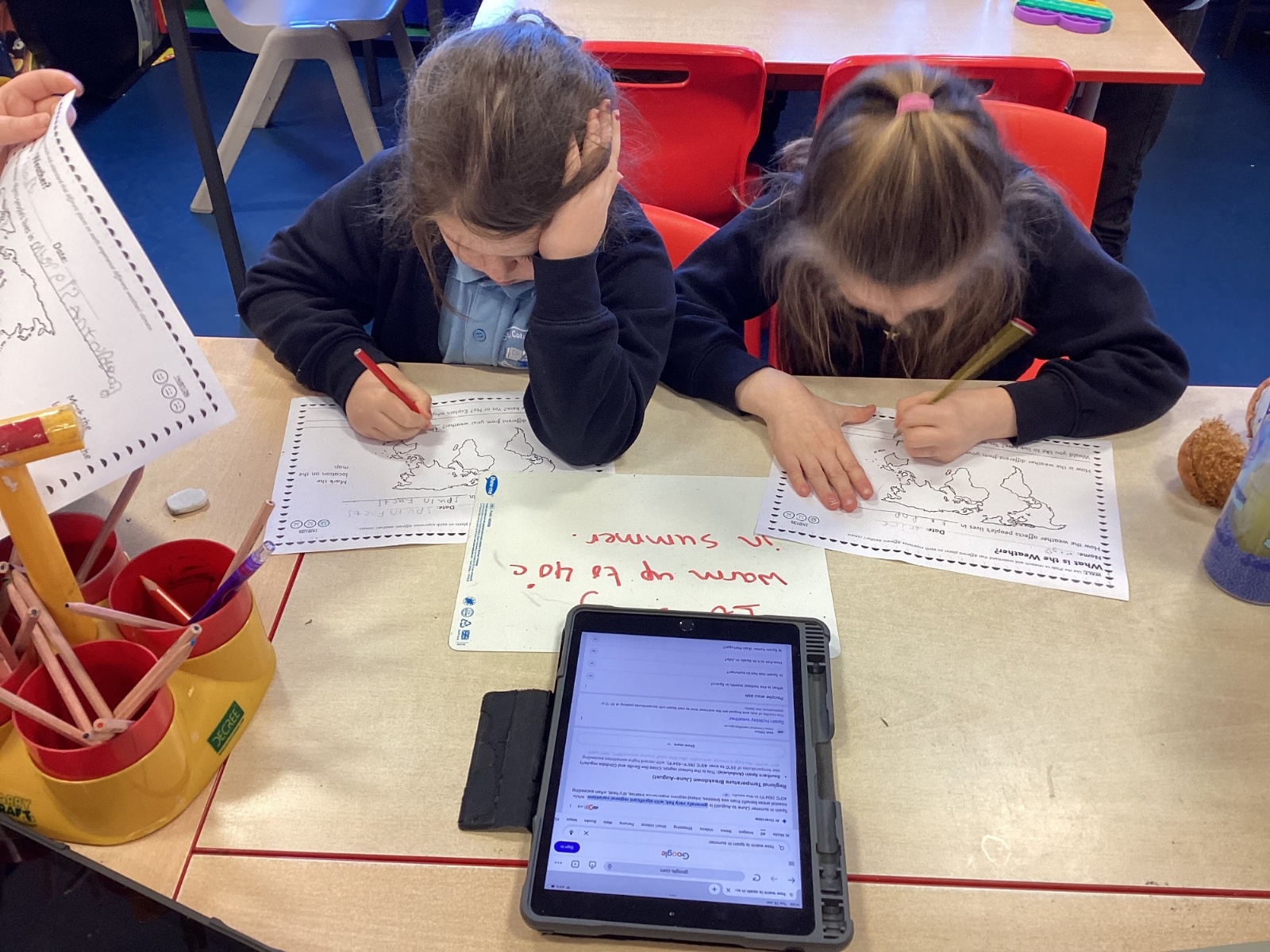 This term, the children have been learning all about the weather. Using the iPads, they explored what the weather is like in different hot and cold countries. We discovered that places such as Australia are very hot and humid, while places like Antarctica are extremely cold, with temperatures often falling below freezing. We completed a fact file of our findings.