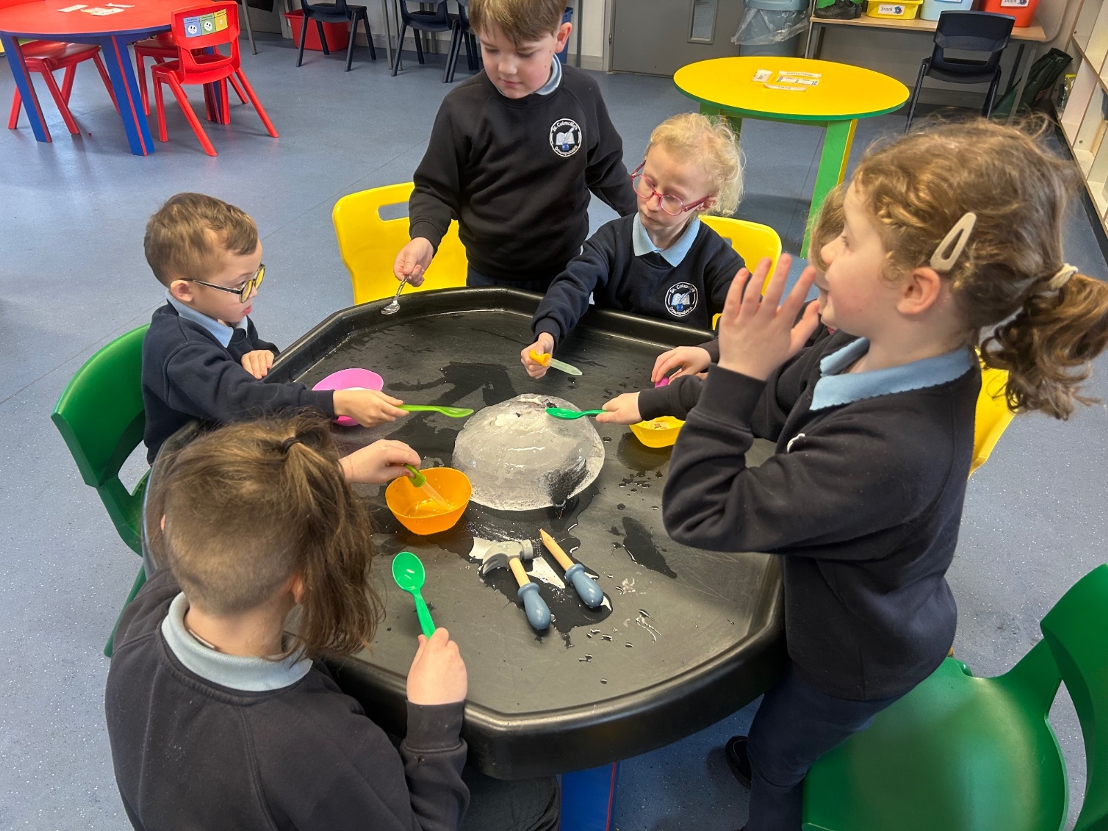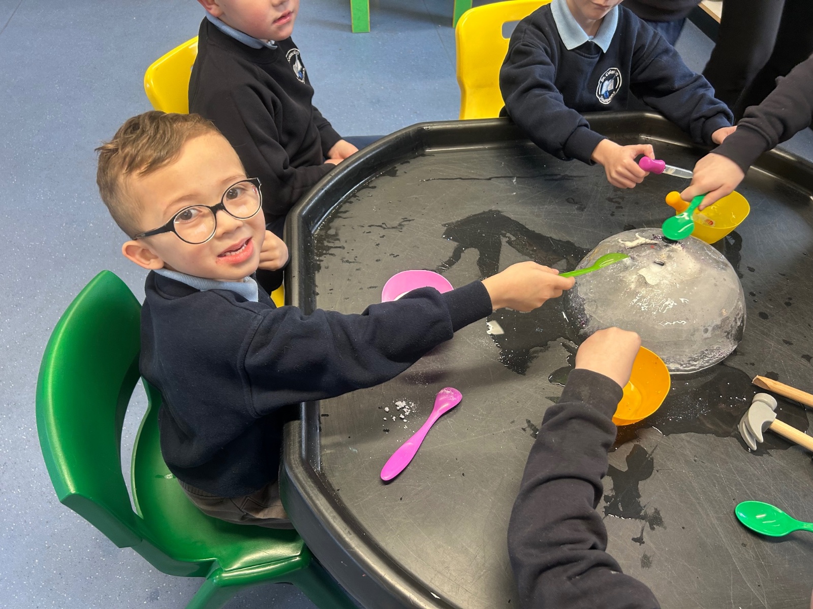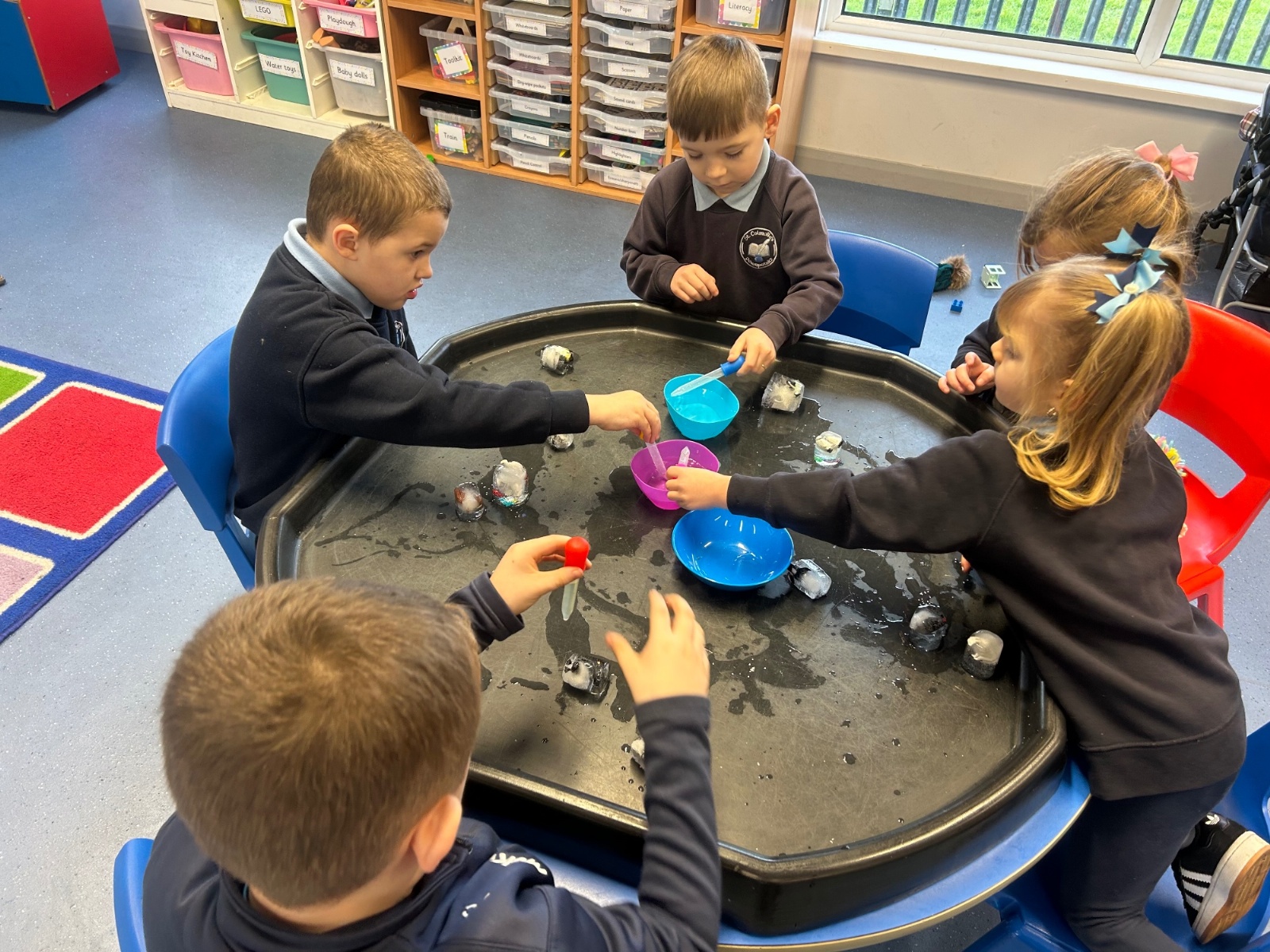 This week, we explored the processes of freezing and melting! We used warm water, cold water, salt and some construction tools to see what would help to melt the ice and rescue our winter animals! πŸ§Šβ„οΈπŸ§πŸ»‍❄️