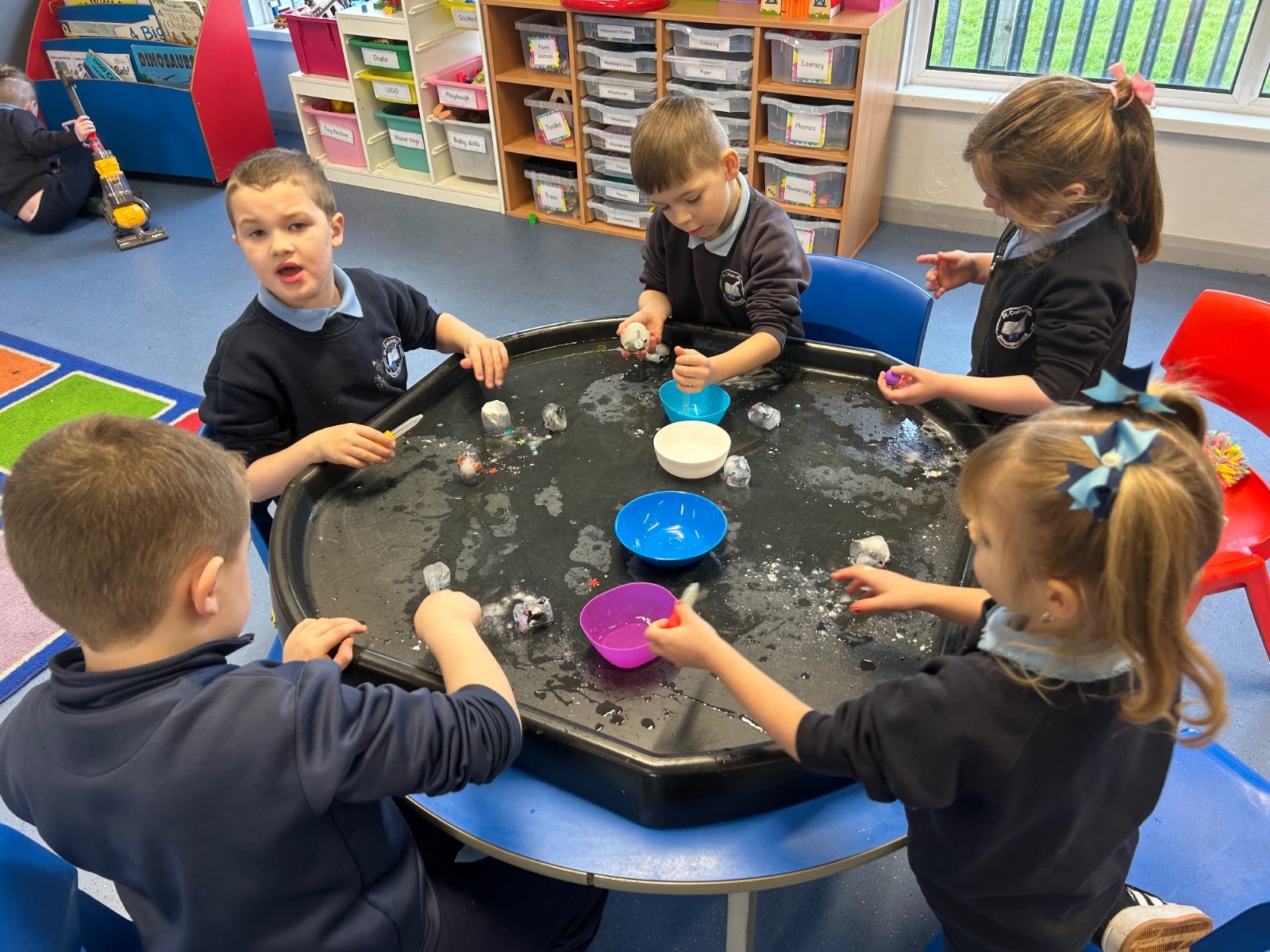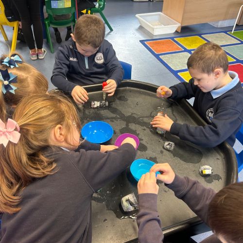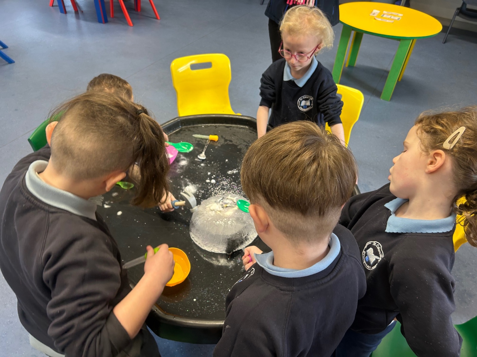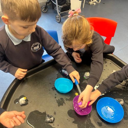 This week, we explored the processes of freezing and melting! We used warm water, cold water, salt and some construction tools to see what would help to melt the ice and rescue our winter animals! πŸ§Šβ„οΈπŸ§πŸ»‍❄️