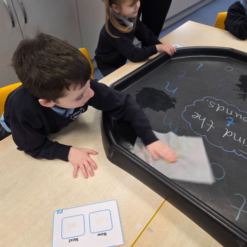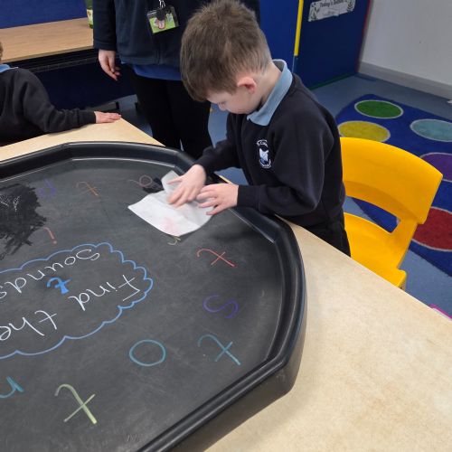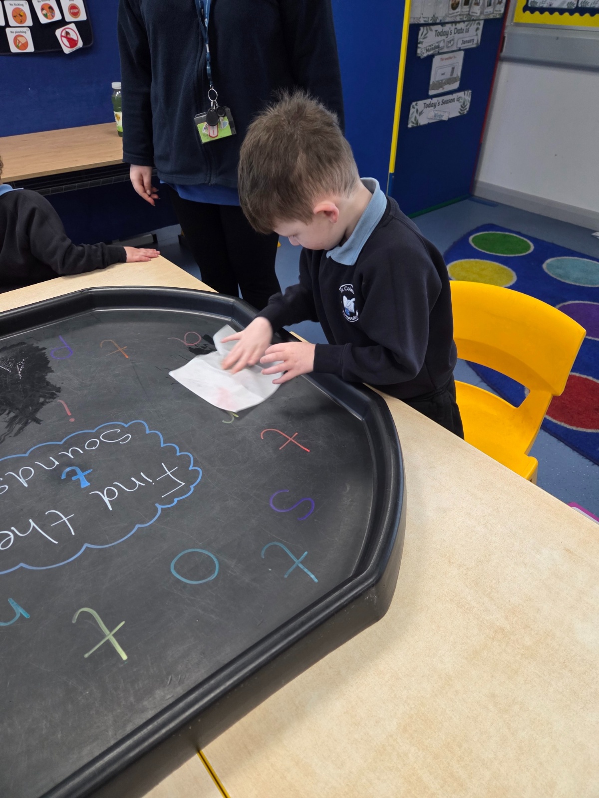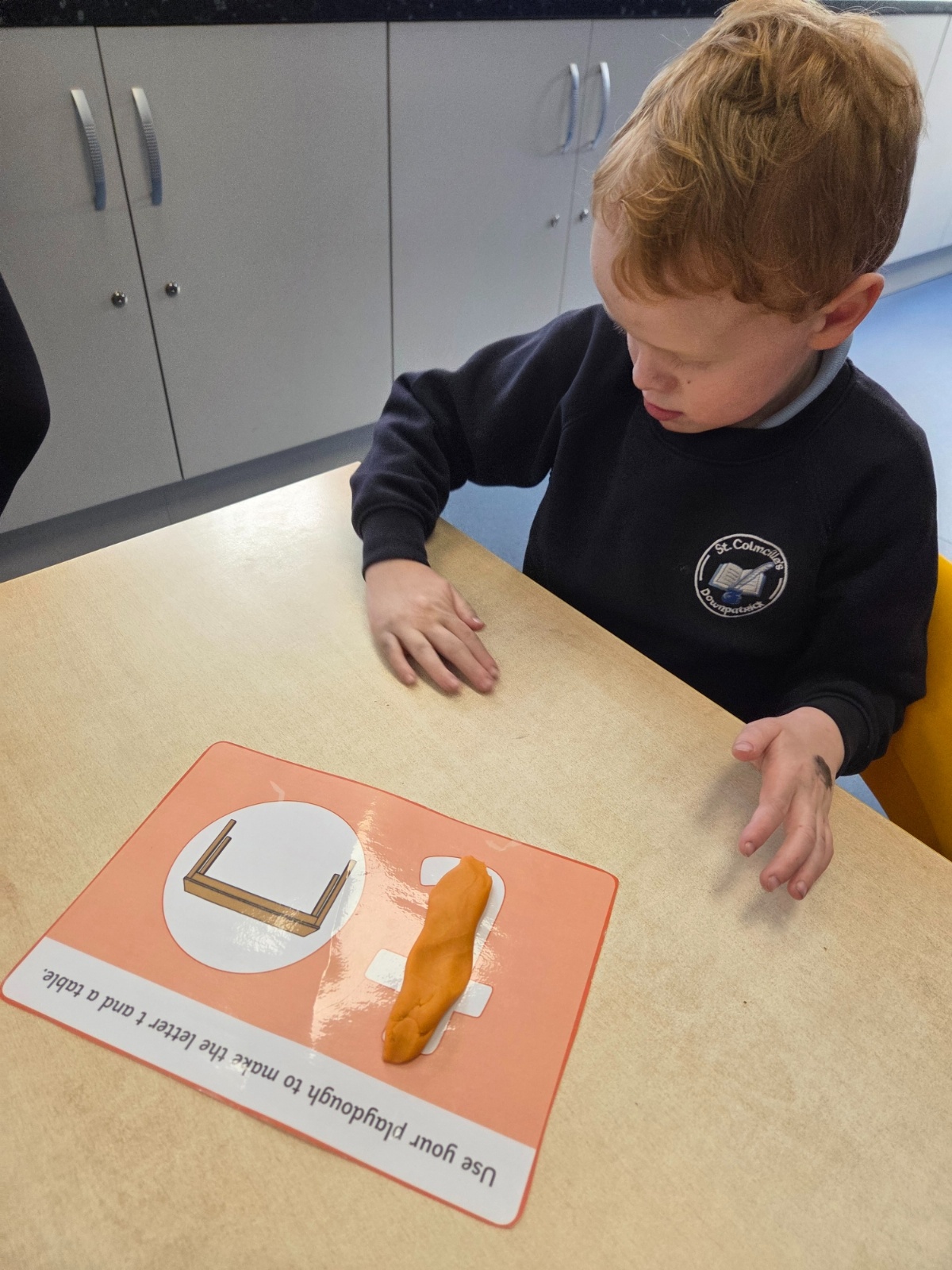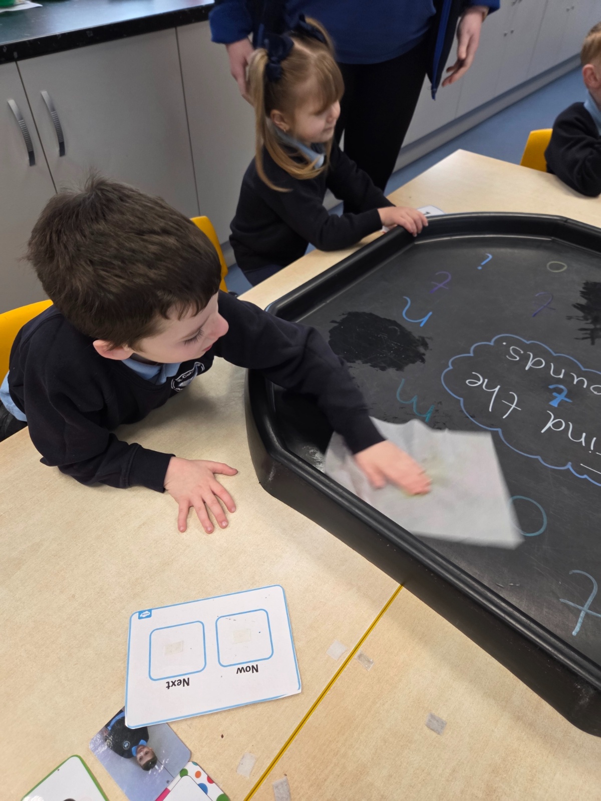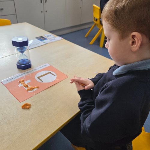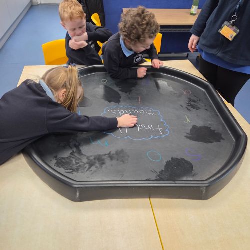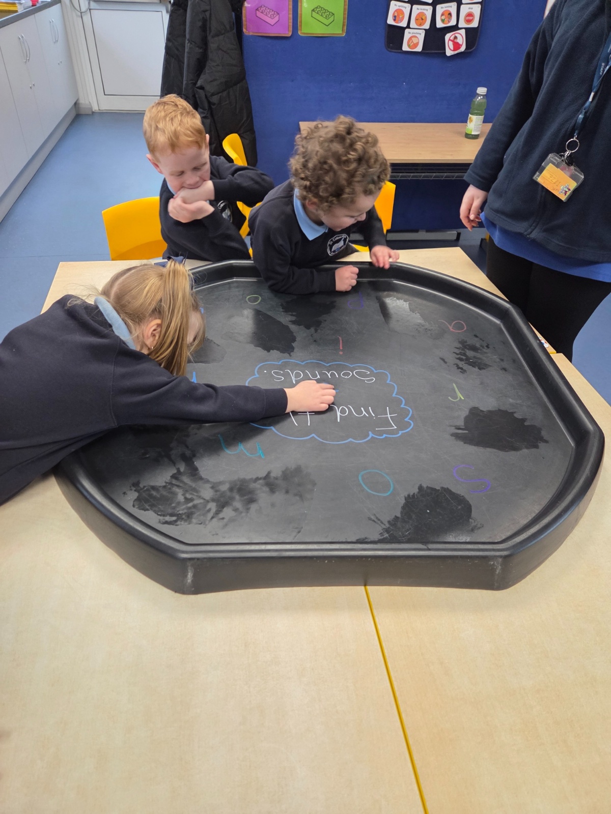 The children explored the T sound this week. They formed it using various materials and resources. They then recognised and found the T sound through tuff tray activities.