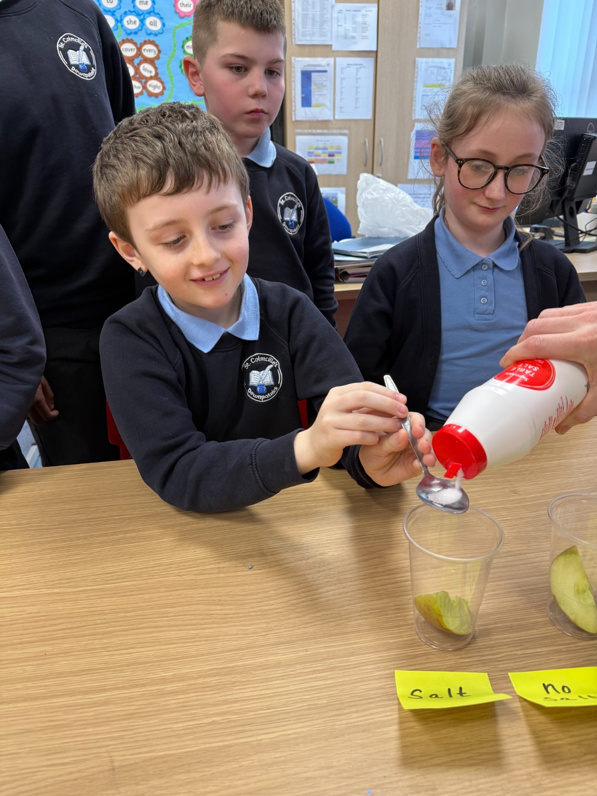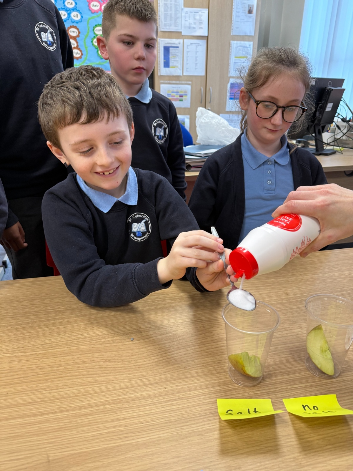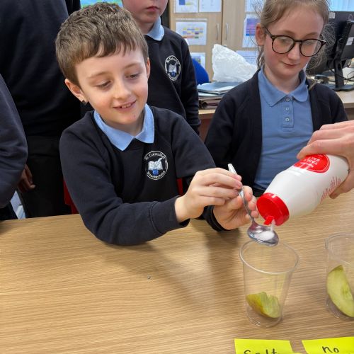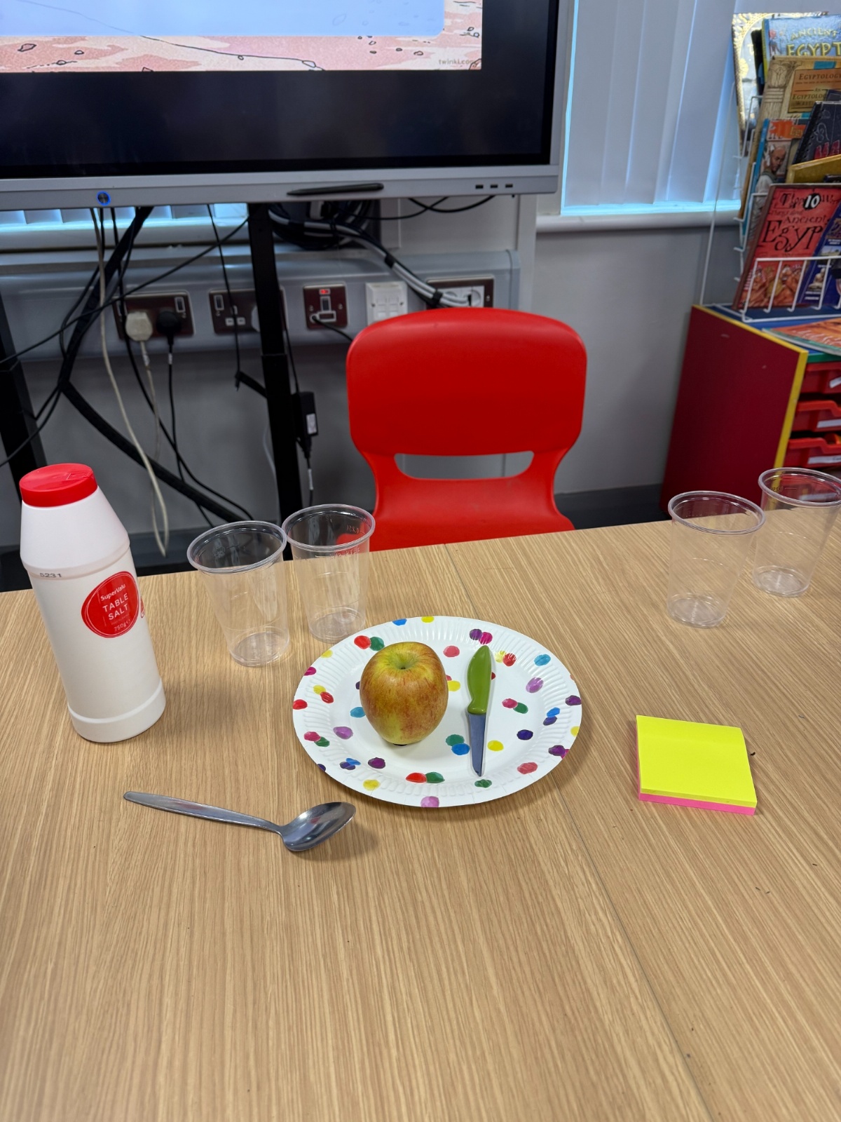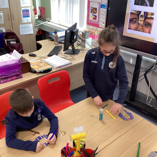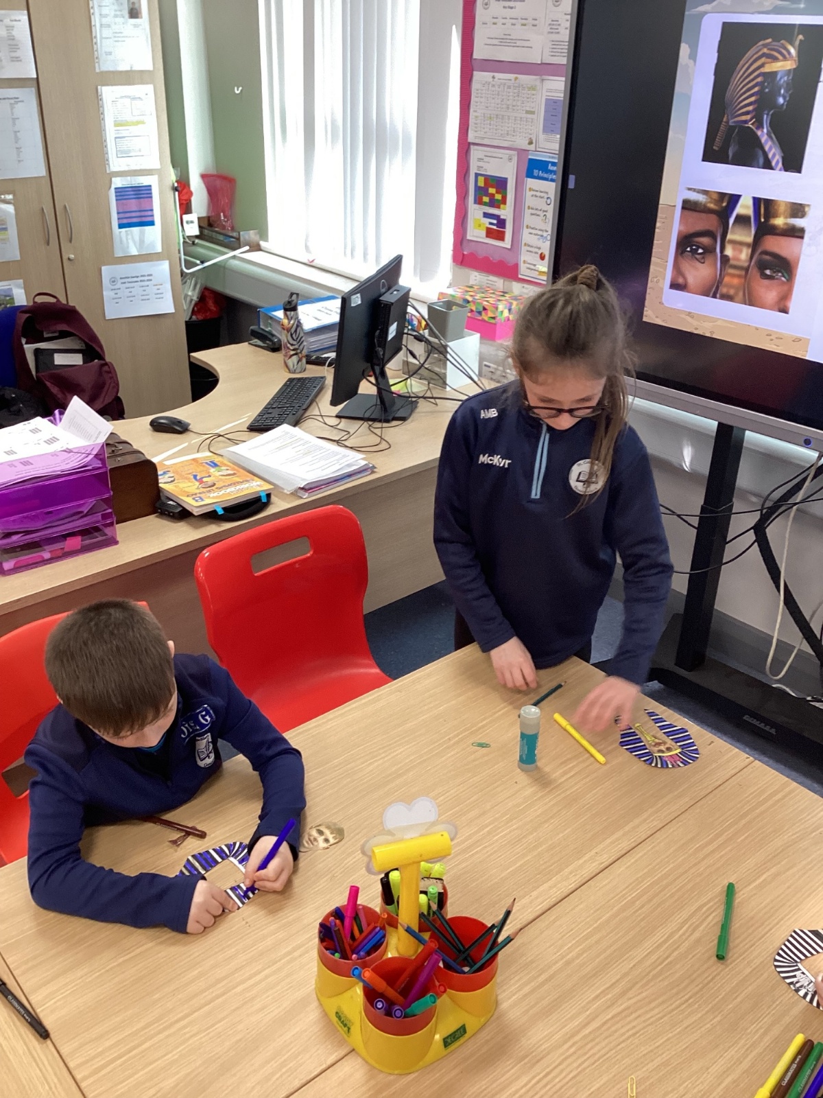 Pupils created their own decorated faces in the style of an Egyptian pharaoh. As part of their learning, they also carried out an experiment to explore how salt was used in the mummification process to help prevent decay. Pupils were highly engaged and enjoyed learning about ancient Egyptian traditions in a practical and creative way.