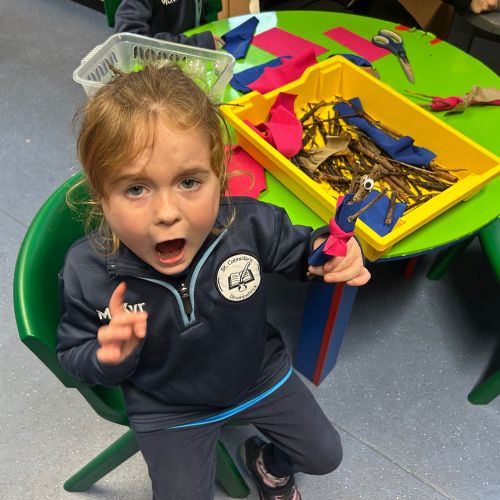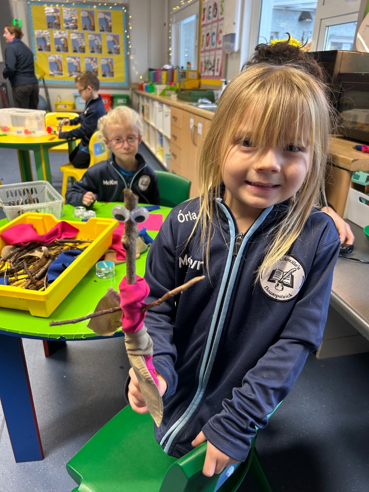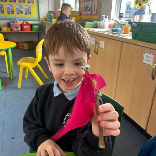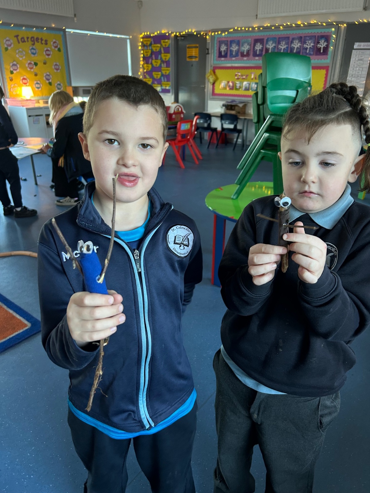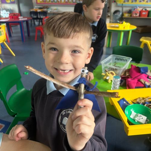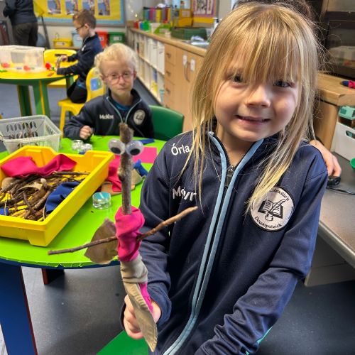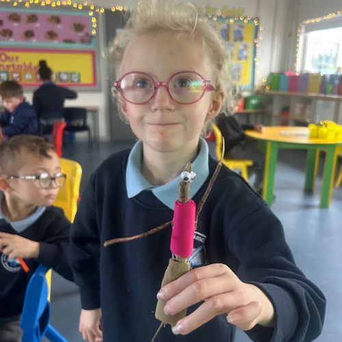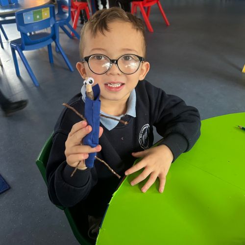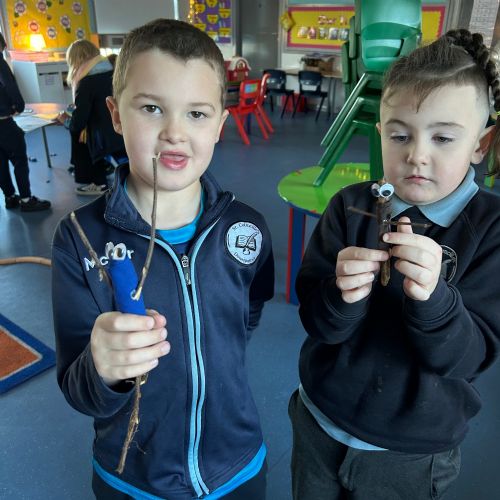 After reading the book 'Stick Man' by Julia Donaldson, we had a go at making our very own Stick men! We went on a hunt around our school grounds to collect the sticks and branches we needed, and added arms, eyes and even some funky clothes!