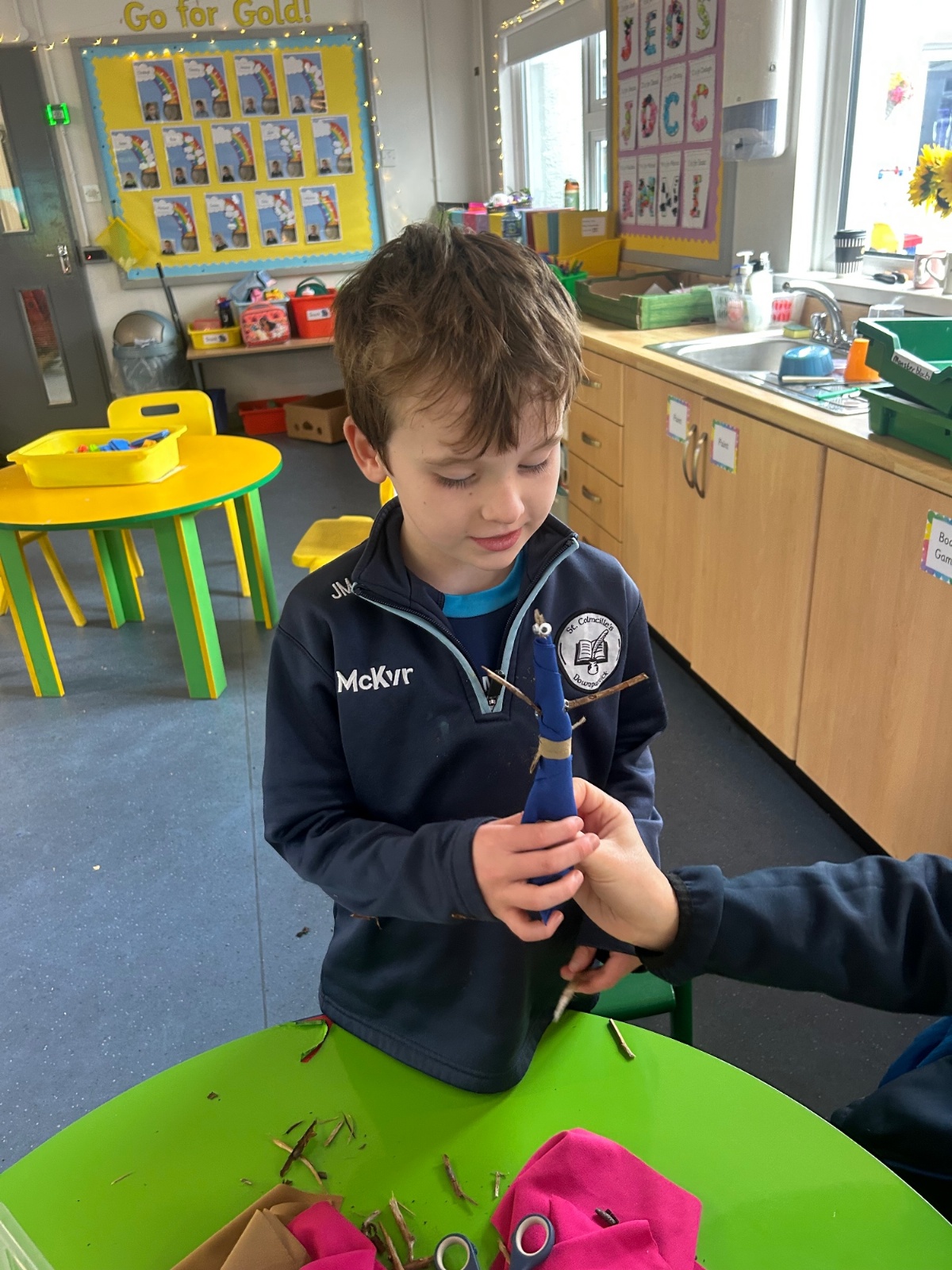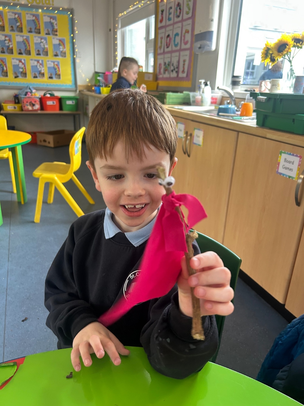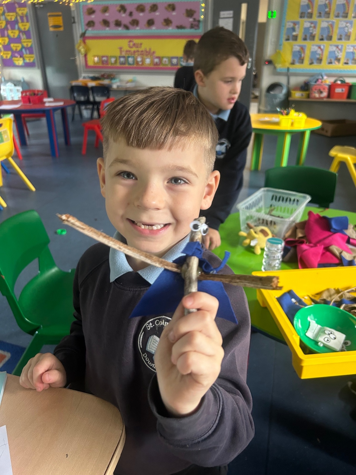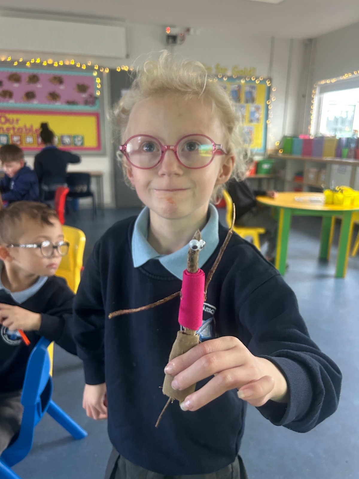 After reading the book 'Stick Man' by Julia Donaldson, we had a go at making our very own Stick men! We went on a hunt around our school grounds to collect the sticks and branches we needed, and added arms, eyes and even some funky clothes!