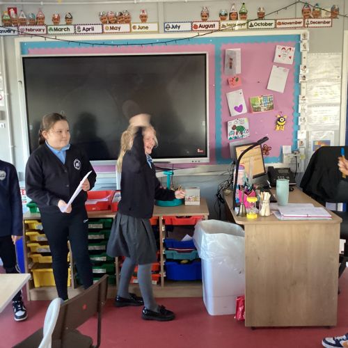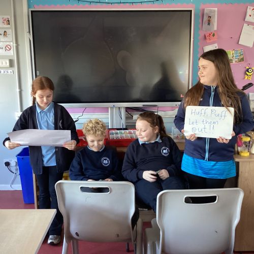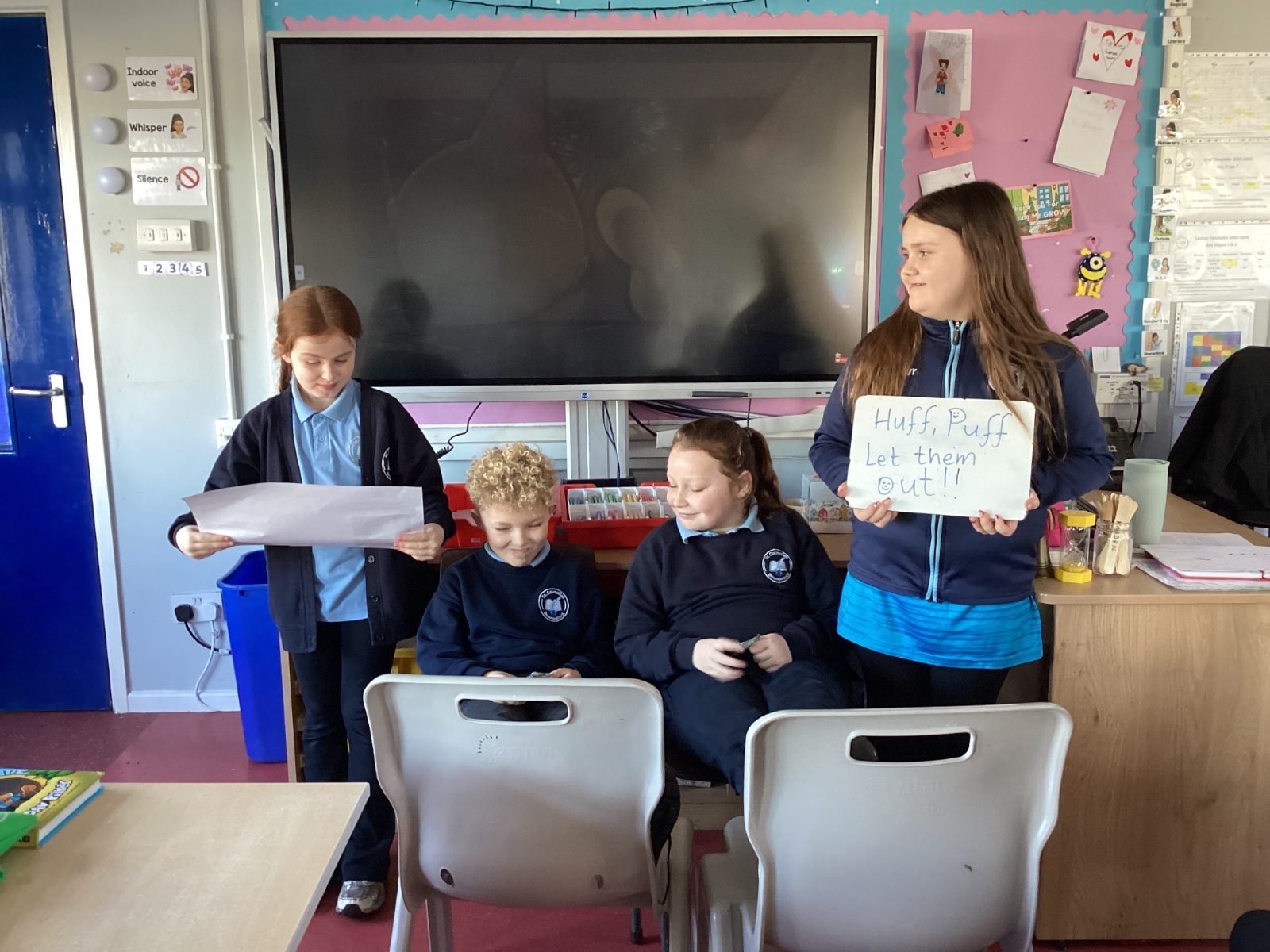 Today in P5A, we watched a new and alternative version of The Three Little Pigs on Literacy Shed. After viewing, the pupils worked together to create their own resolution and ending that would complete this reimagined version of the story. In small groups, they then performed their chosen ending for the rest of the class, showcasing their creativity, teamwork, and understanding of story structure.