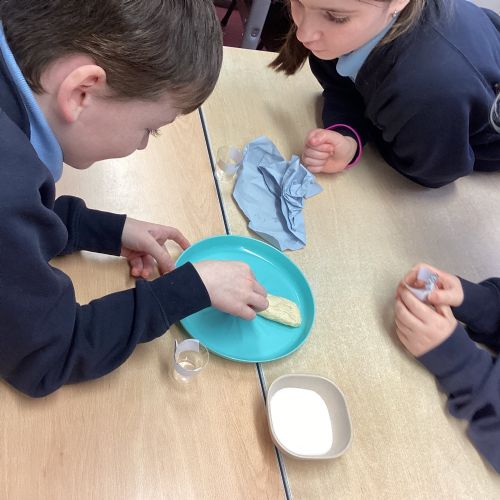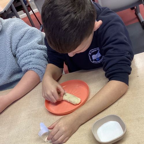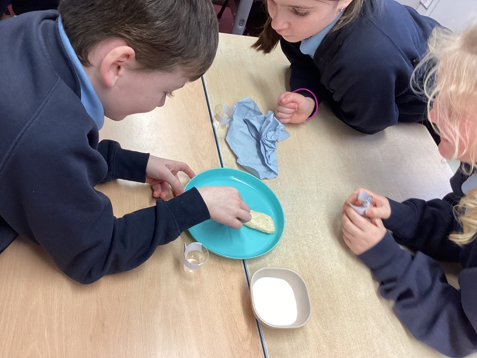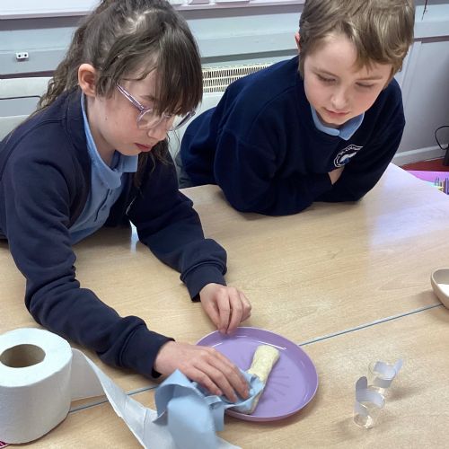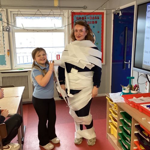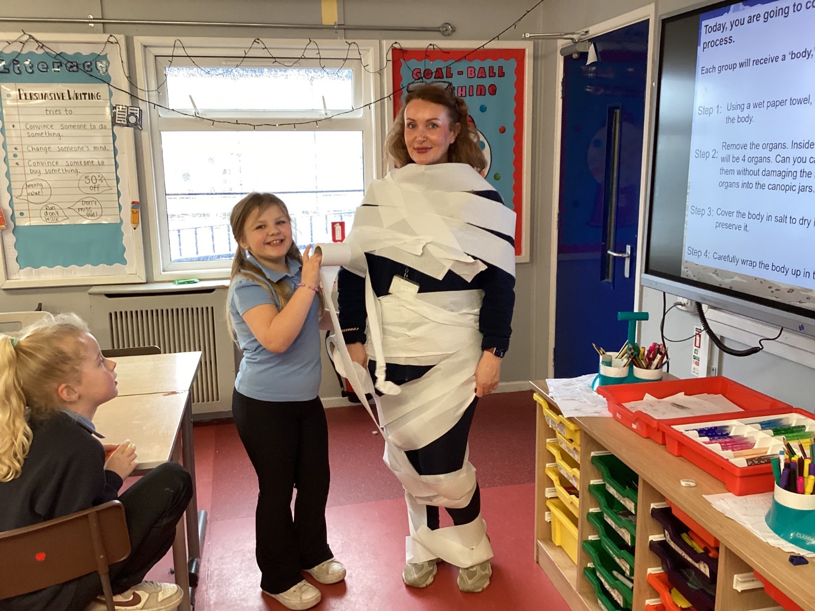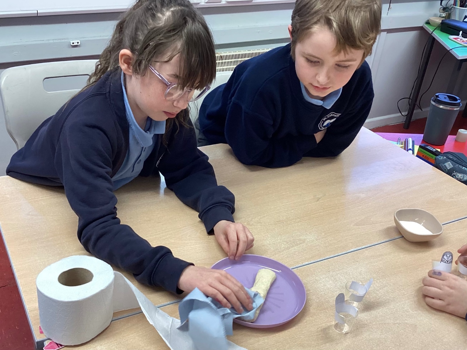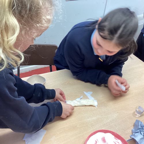 Today in P5A, we explored the fascinating process of mummification. We learnt that this ancient Egyptian ritual begins with cleansing the body, removing the organs, covering it in natron salt to dry it out, and finally wrapping it carefully in layers of linen. Working in small groups, P5A then carried out each step of the mummification process using a dough body, helping them visualise and understand the sequence in a fun and engaging way.