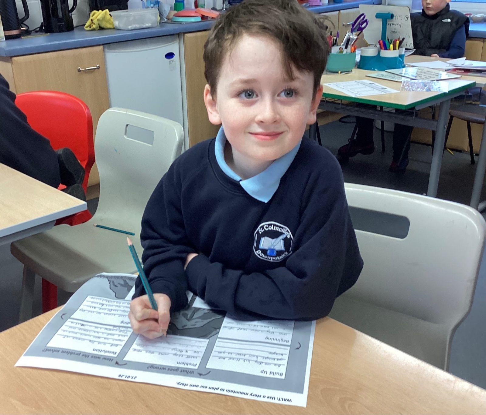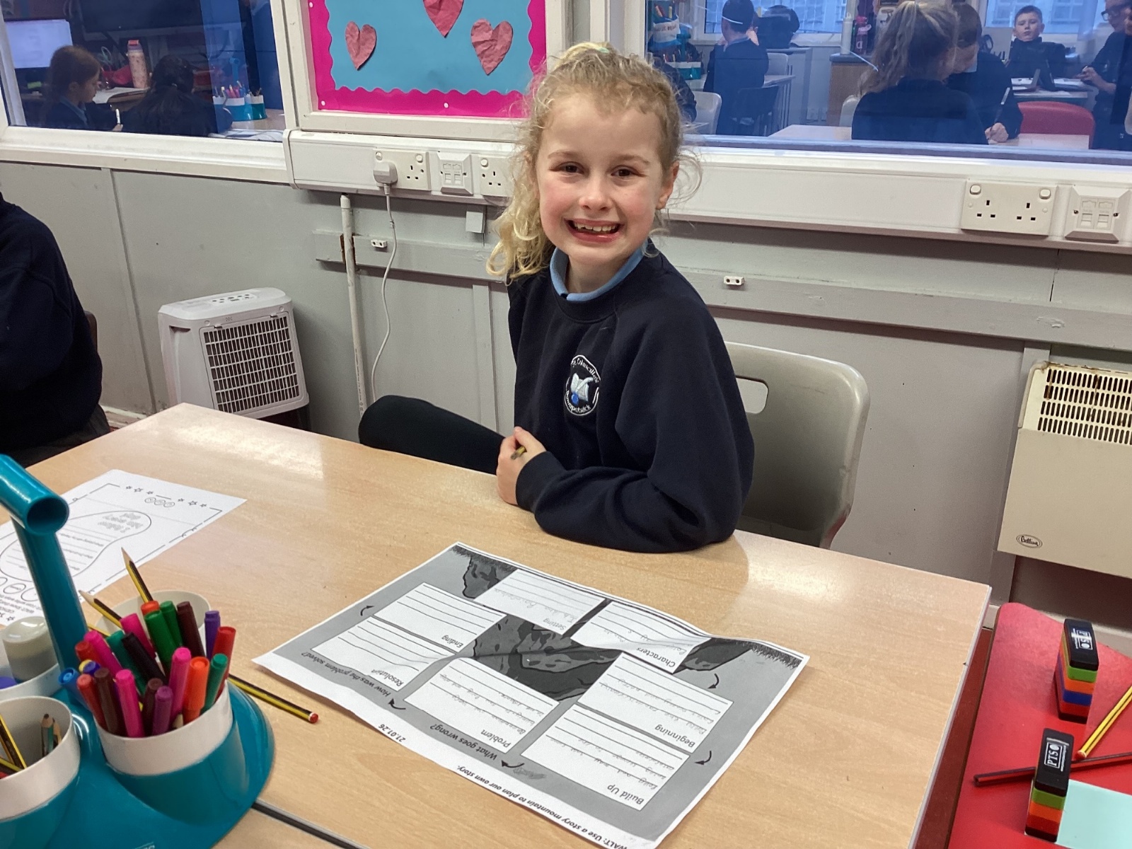 We are currently focusing on narrative writing. The pupils have already designed their characters and settings, and today we spent time planning out their stories. The pupils have previously explored how stories are structured with a beginning, a build‑up, a problem, a resolution, and an ending. Using the story mountain as a guide, the pupils then went on to complete their own stories.