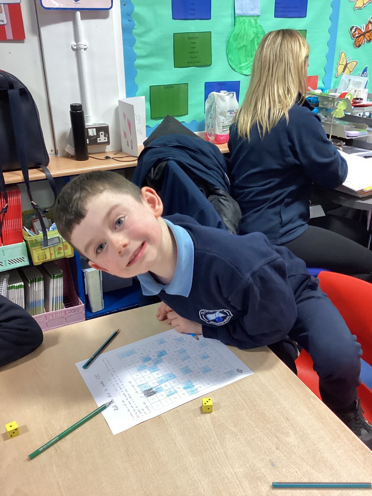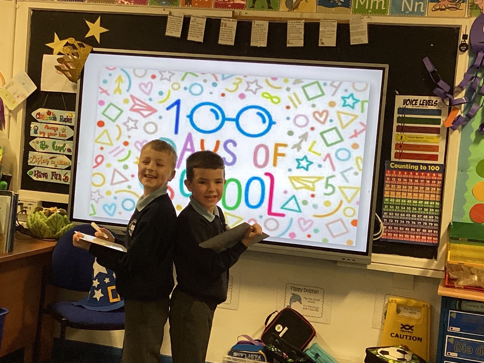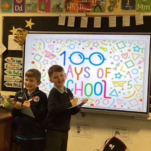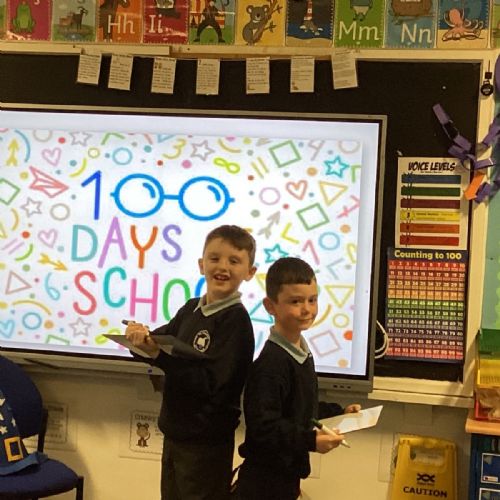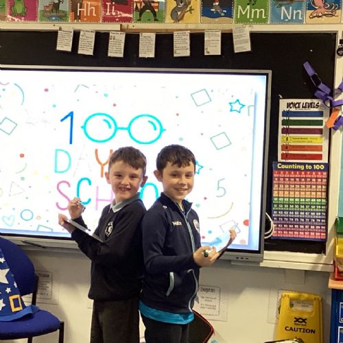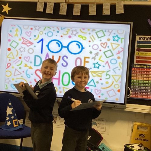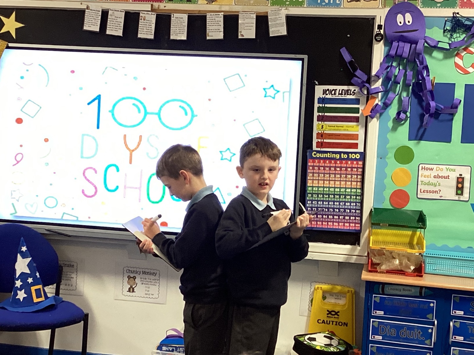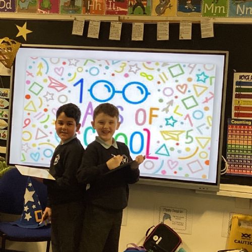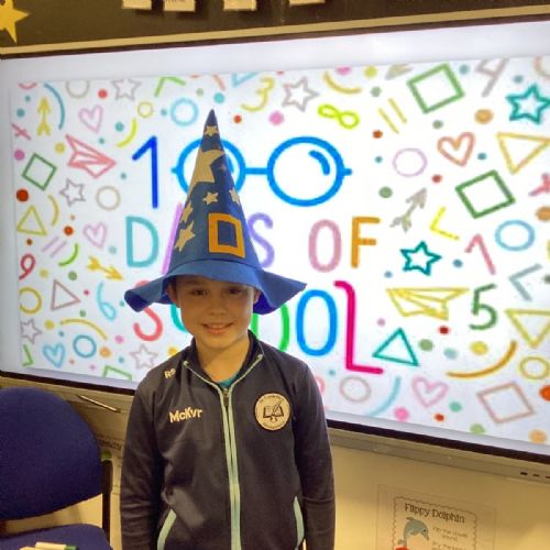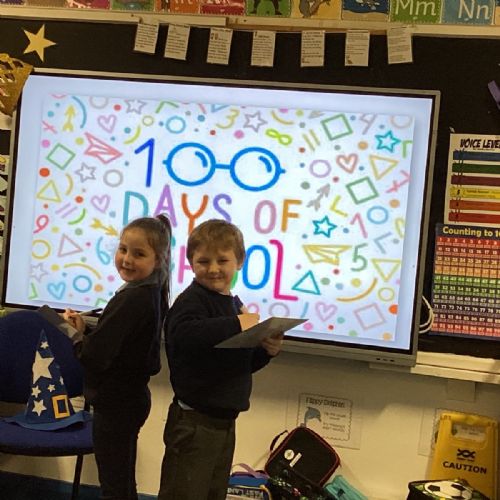 P4B took part in a range of fun activities to celebrate 100 days of school including estimating and counting 100 drops of water, creating self-portraits in 100 years time and taking part in a mental maths quiz!