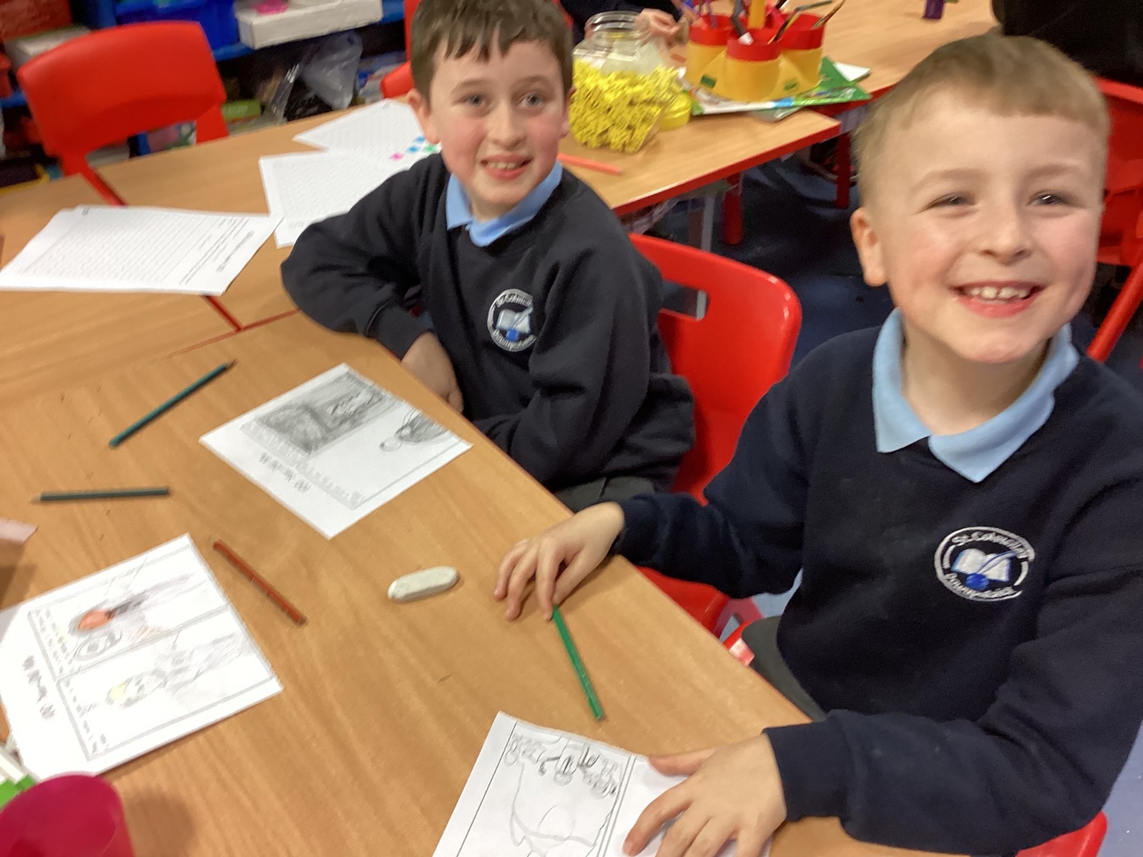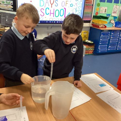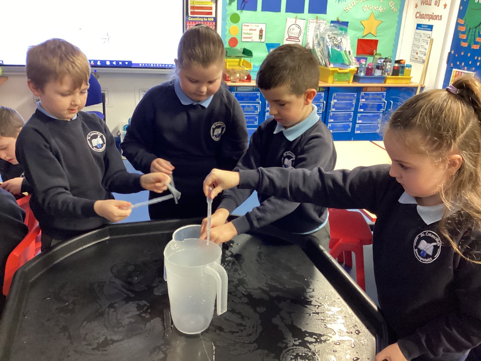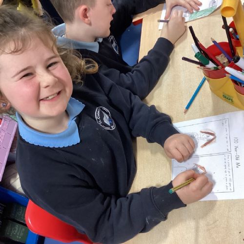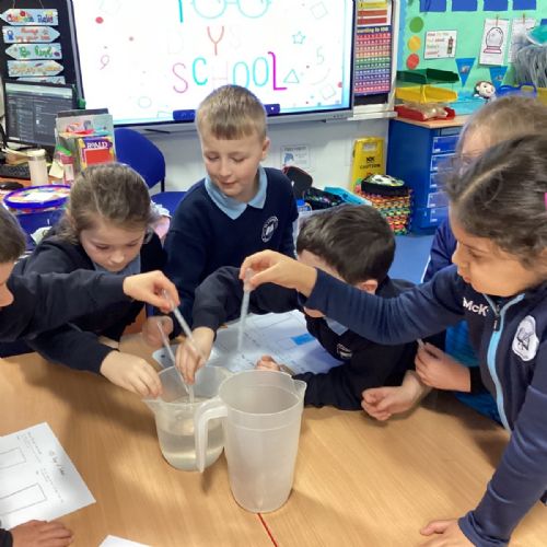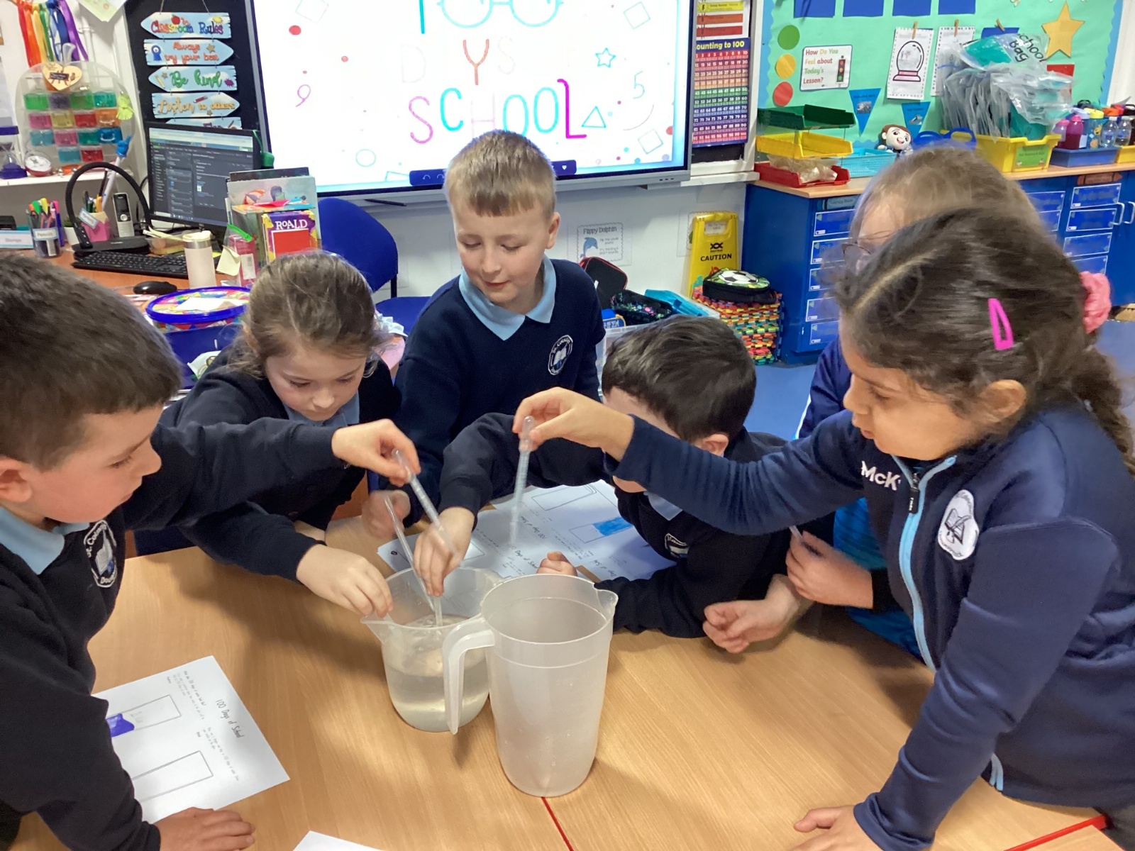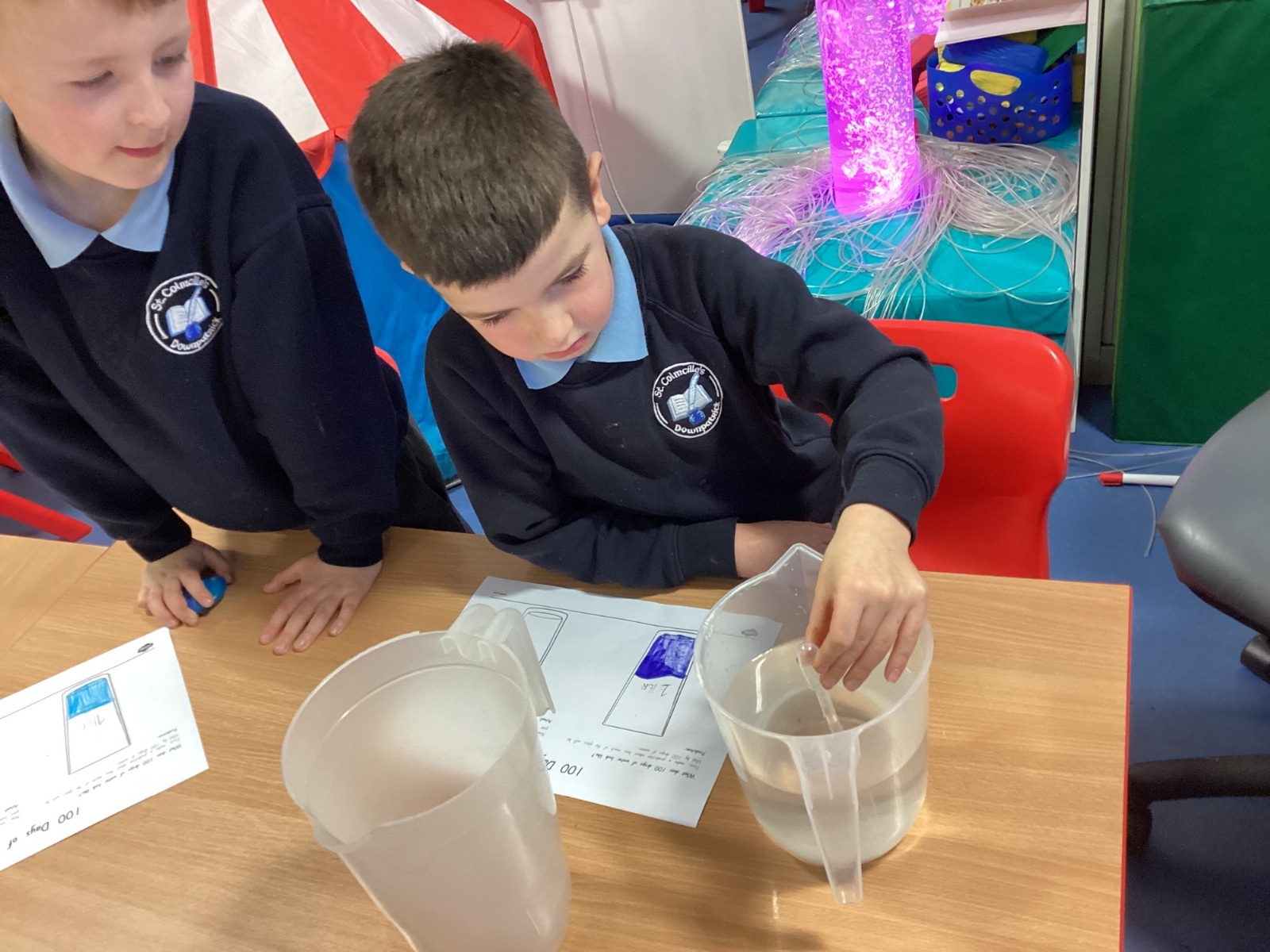 P4B took part in a range of fun activities to celebrate 100 days of school including estimating and counting 100 drops of water, creating self-portraits in 100 years time and taking part in a mental maths quiz!