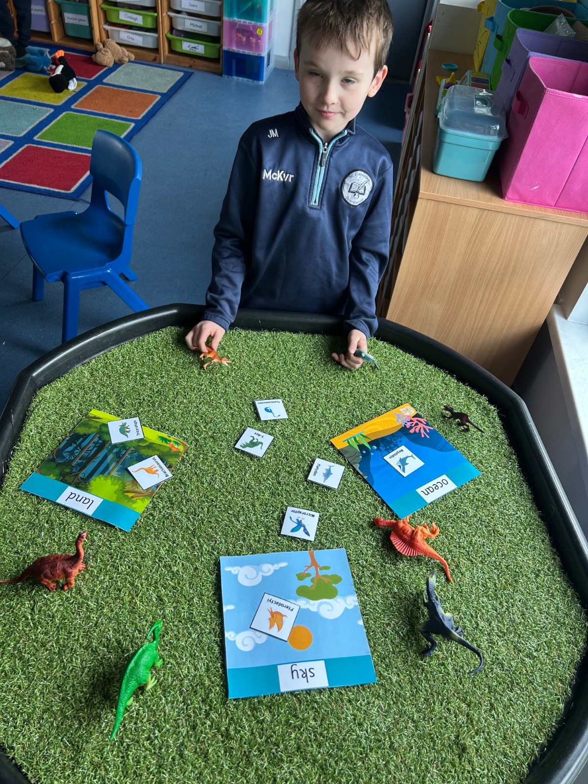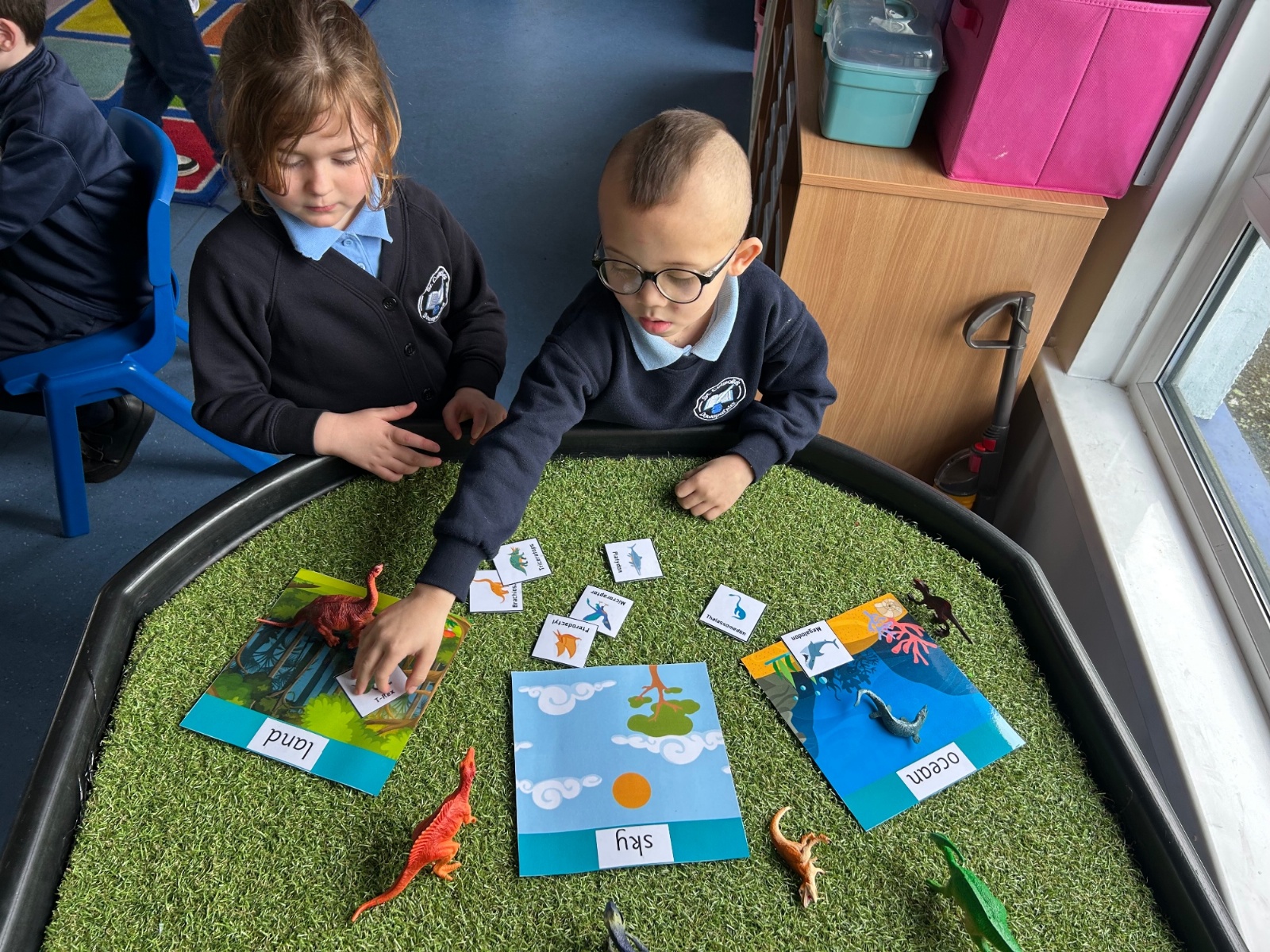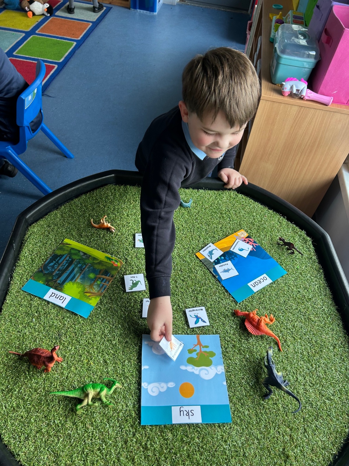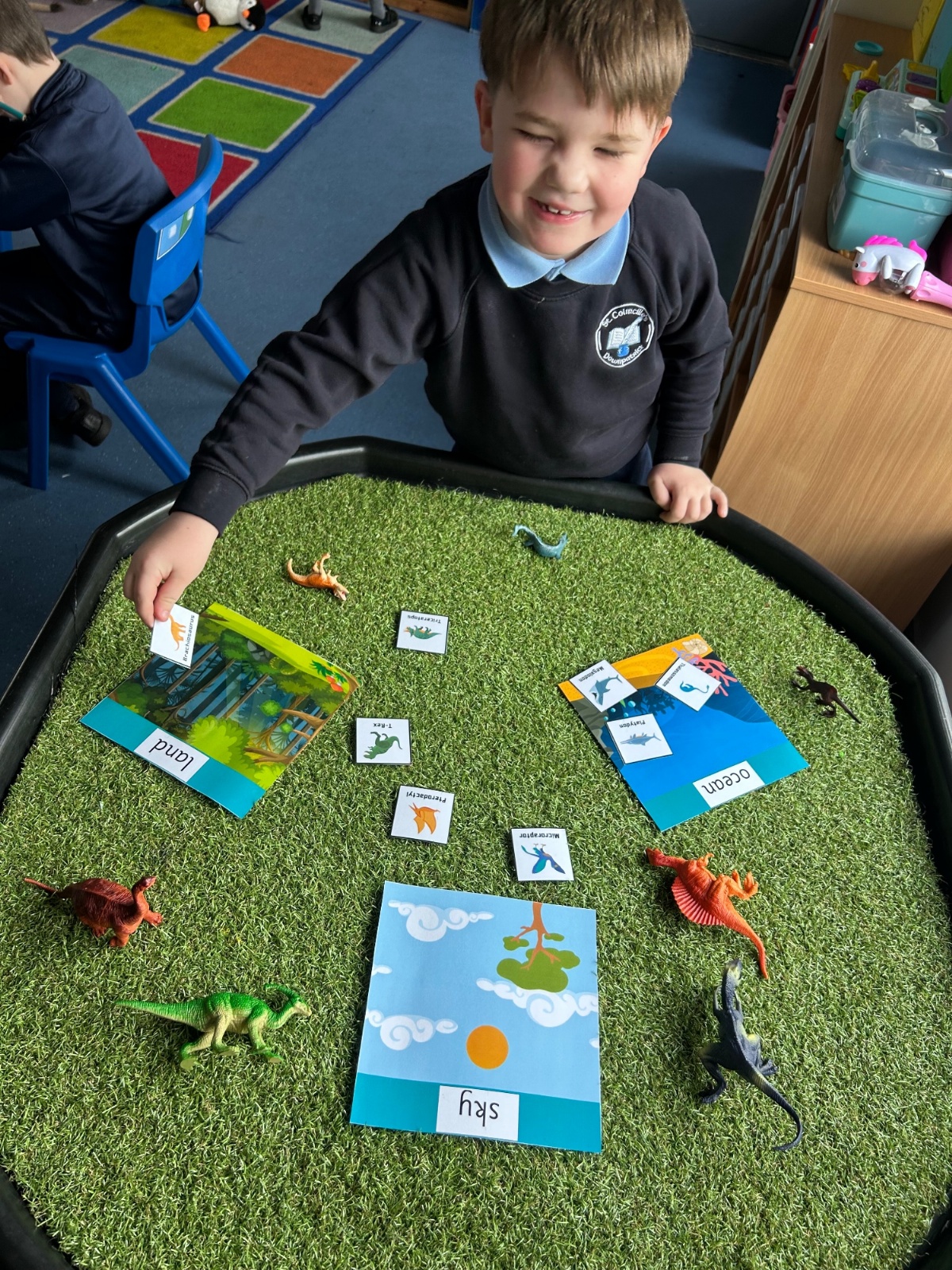 This week, we learnt about the different places that dinosaurs used to live - their habitats. We learnt about dinosaurs that lived on land, up in the sky and under water.