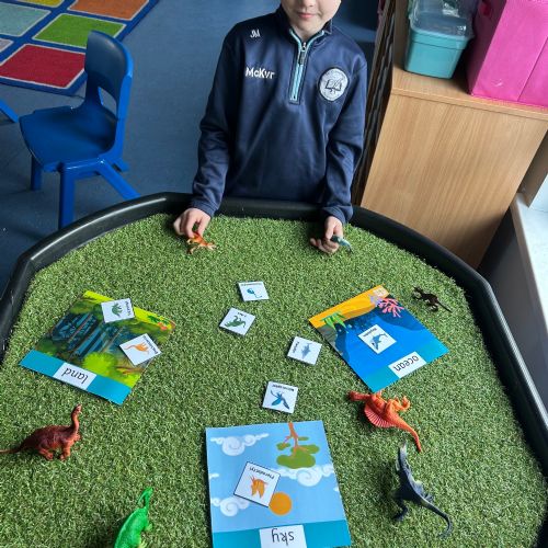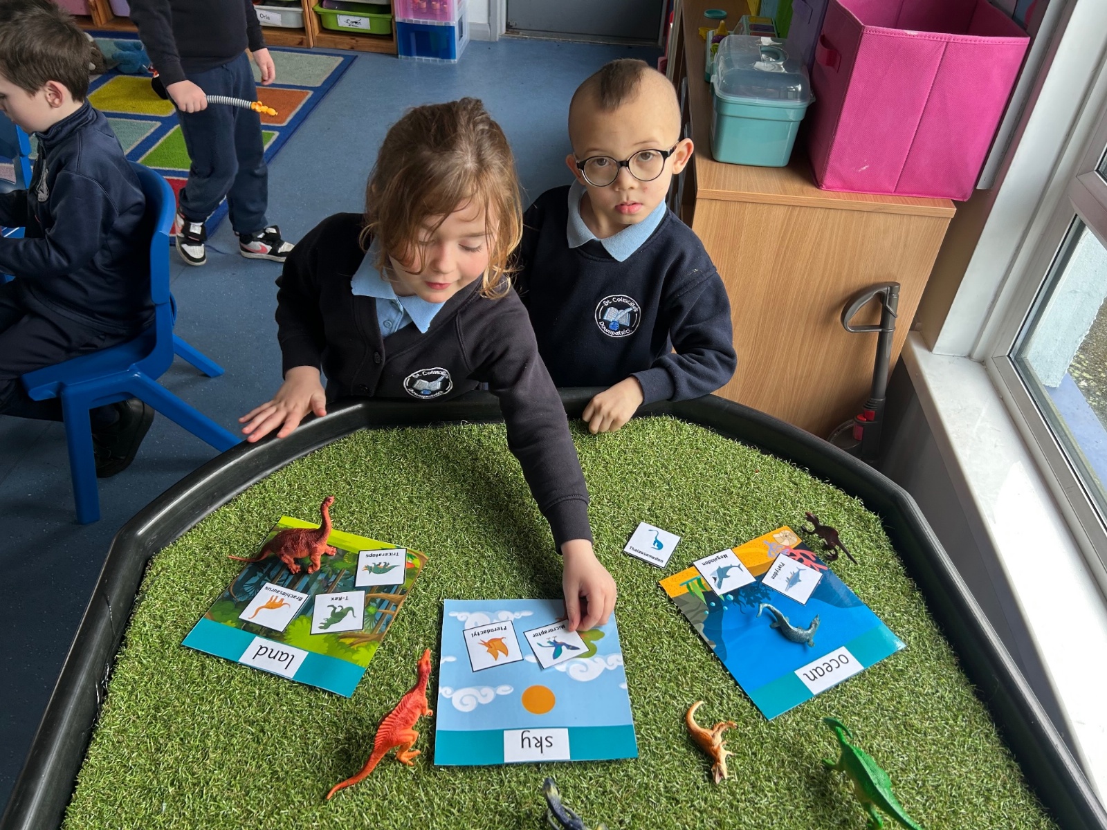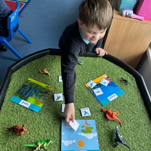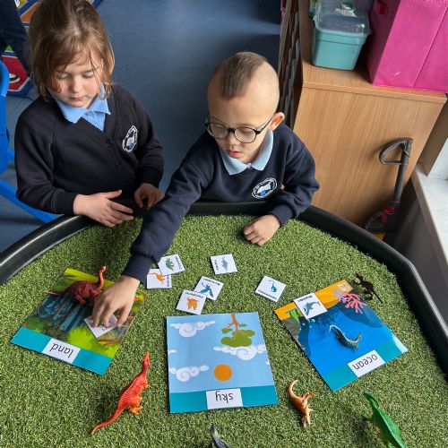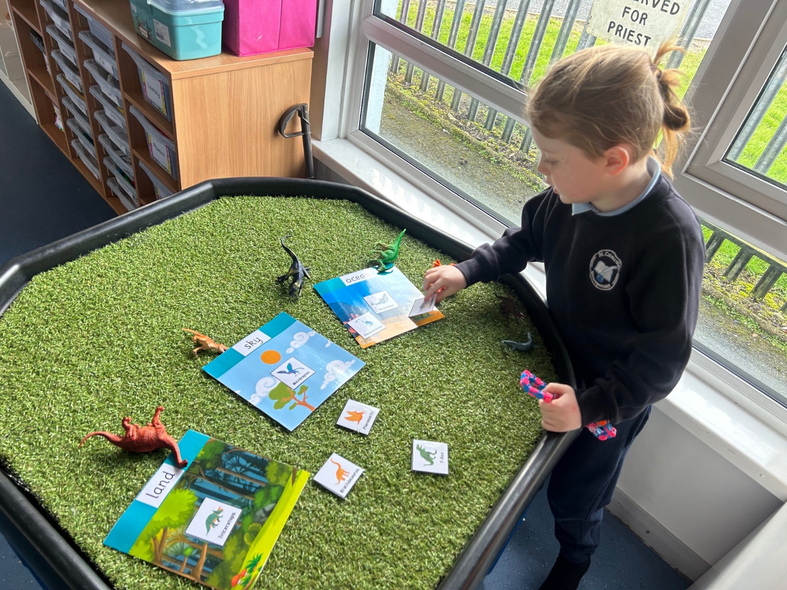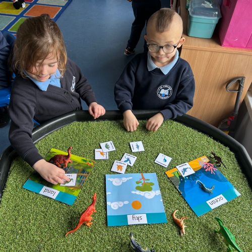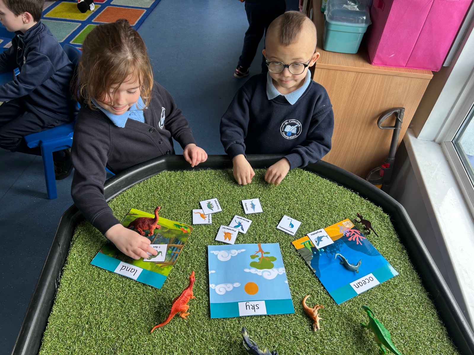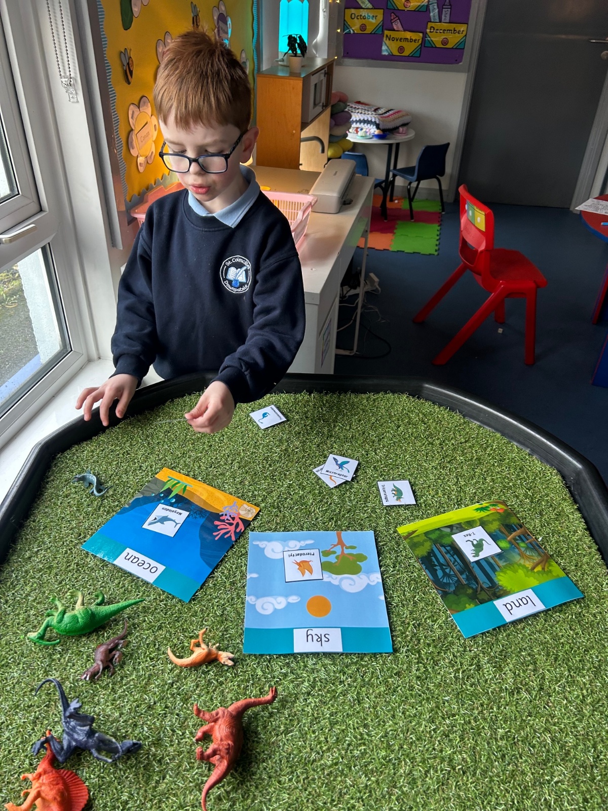 This week, we learnt about the different places that dinosaurs used to live - their habitats. We learnt about dinosaurs that lived on land, up in the sky and under water.