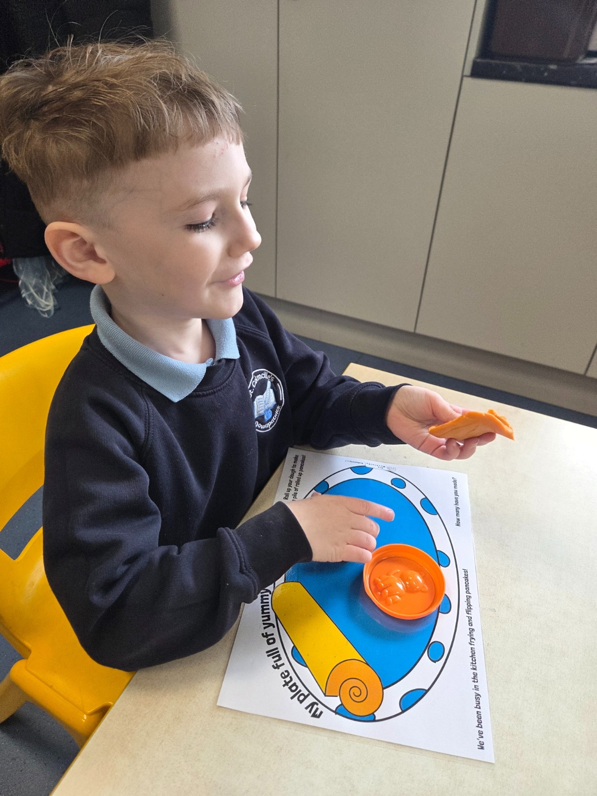 The children enjoyed making pancakes, decorating pancakes and eating them. Delicious!