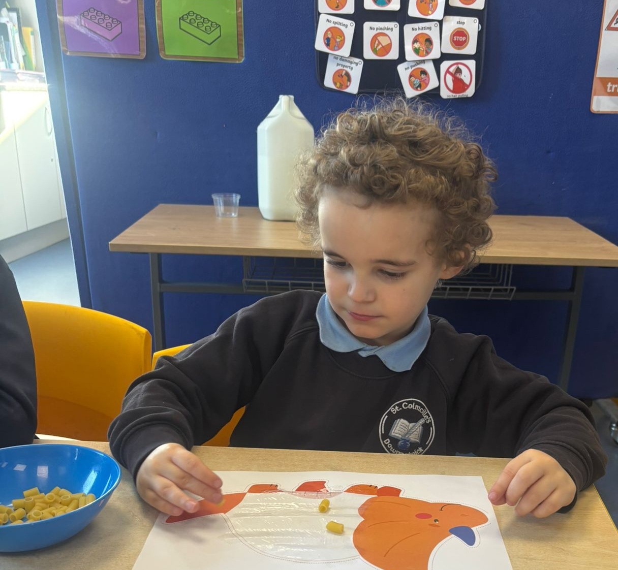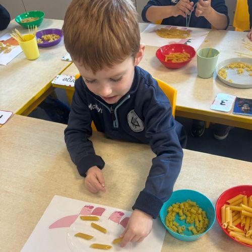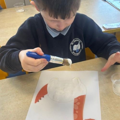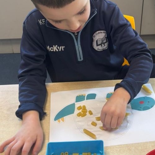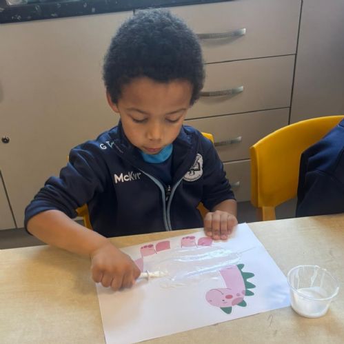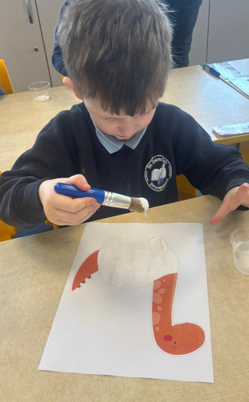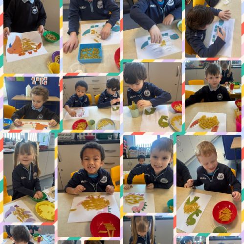 The children explored making dinosaur pasta pictures and salt dough dinosaur fossils.