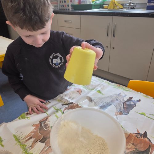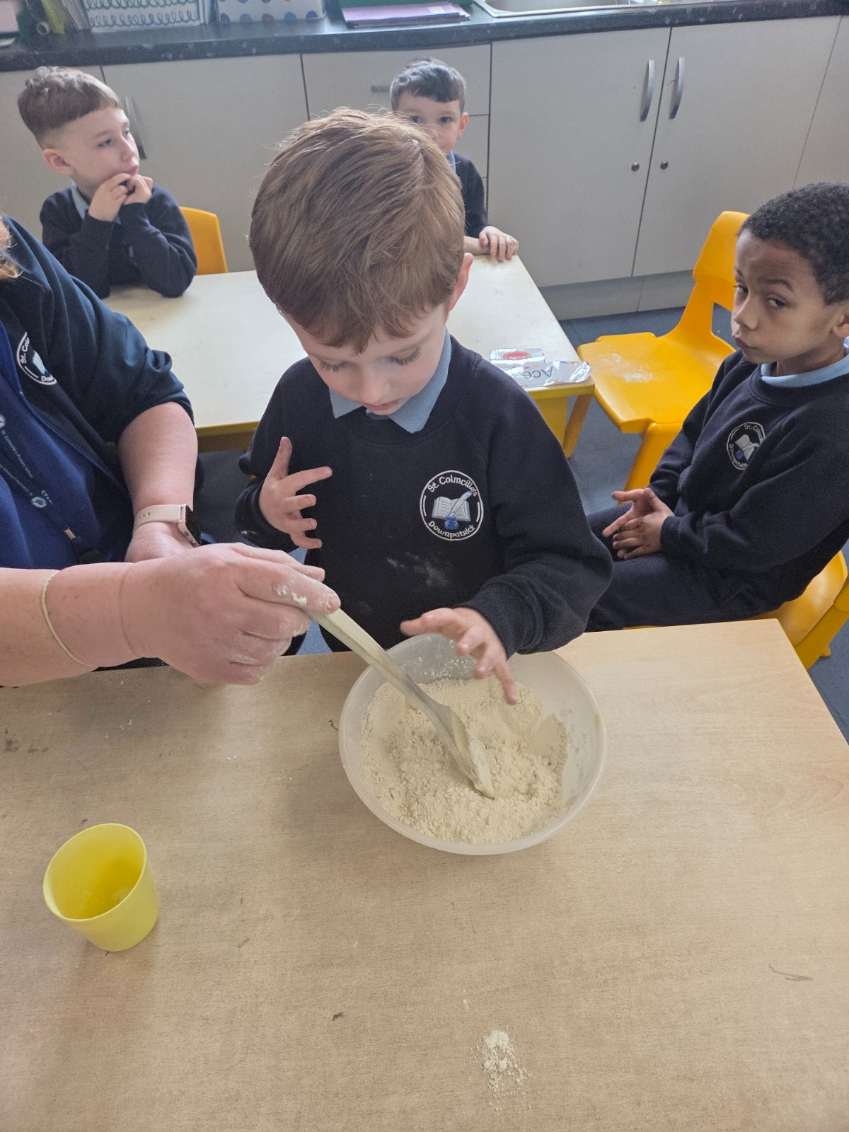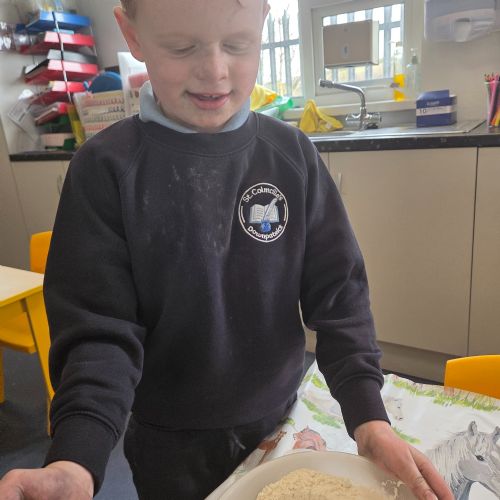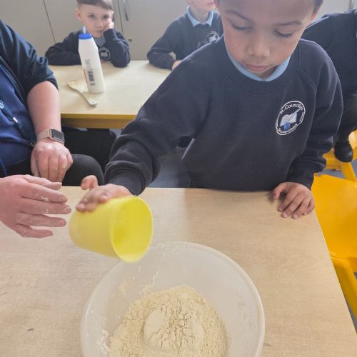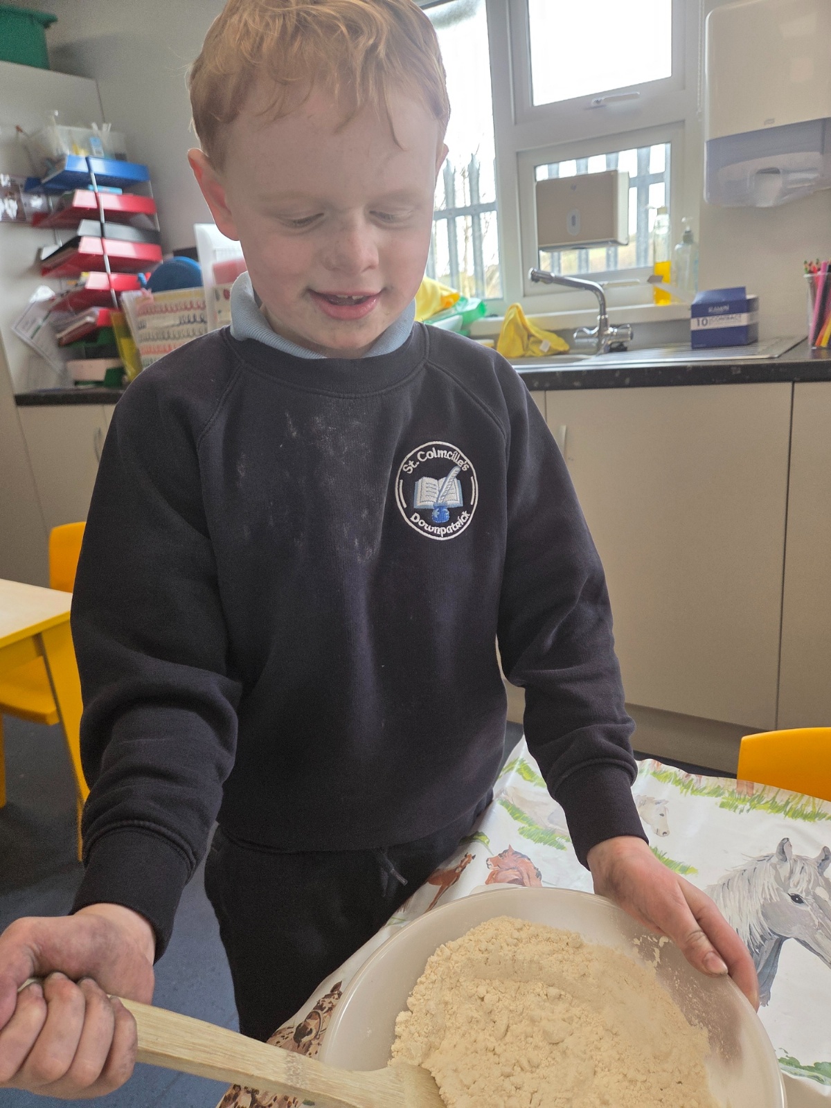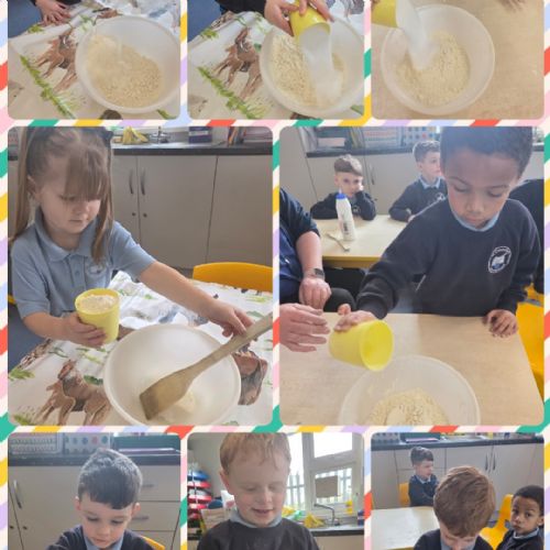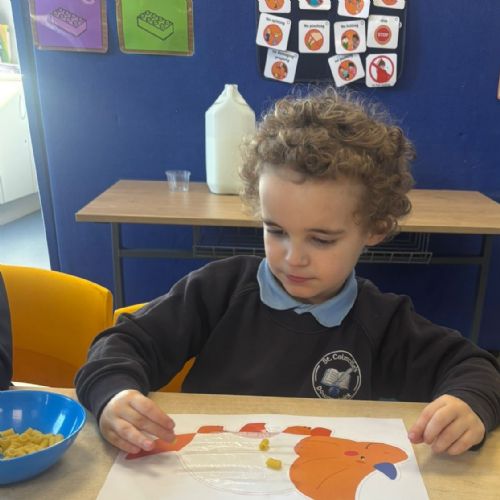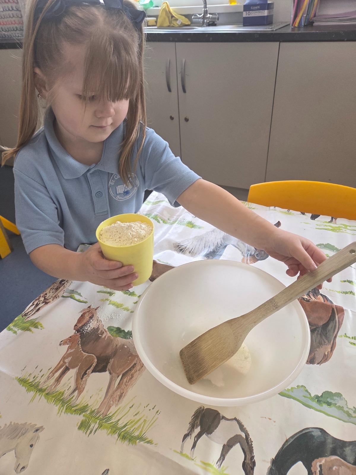 The children explored making dinosaur pasta pictures and salt dough dinosaur fossils.