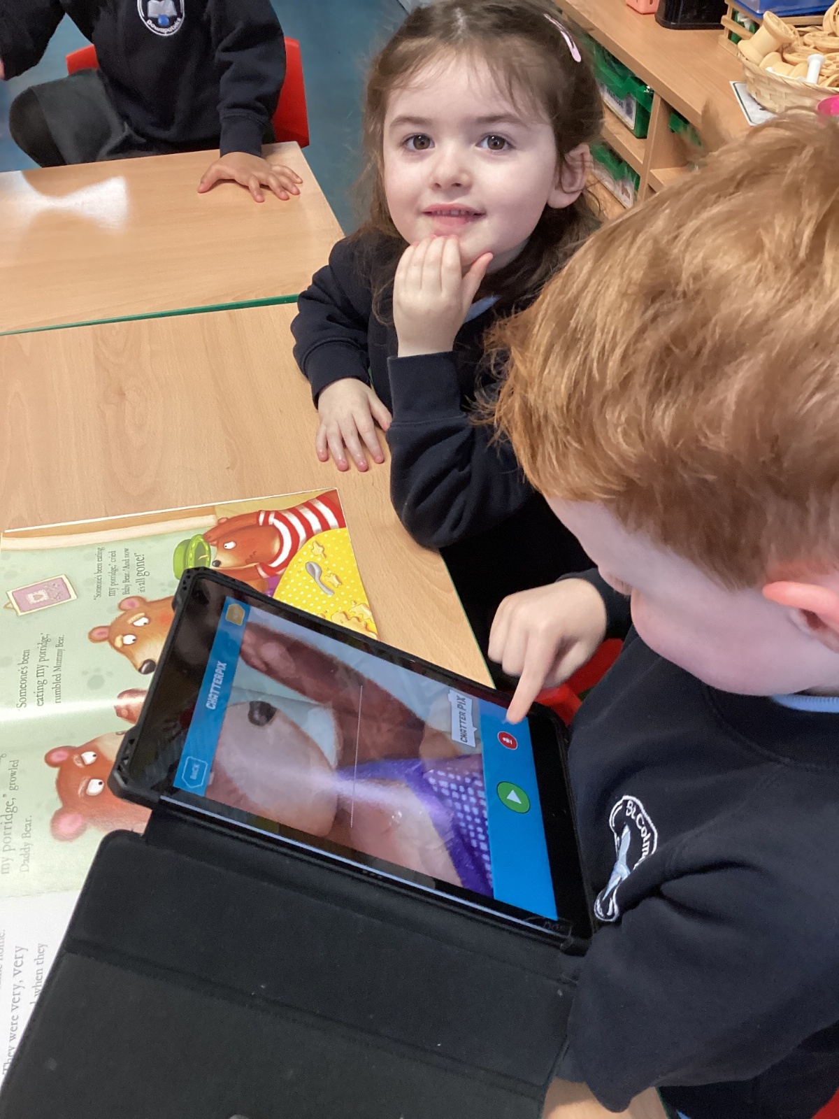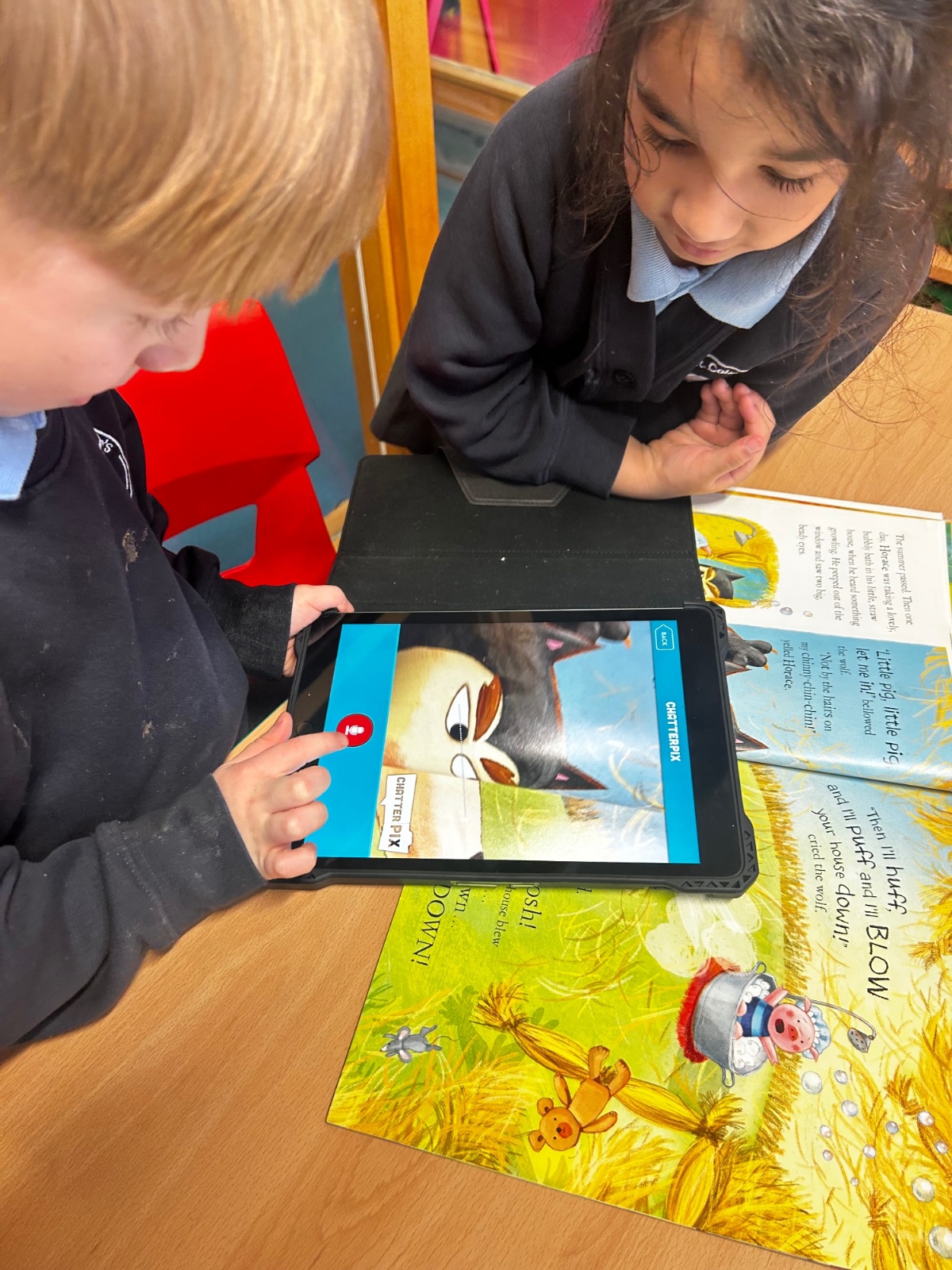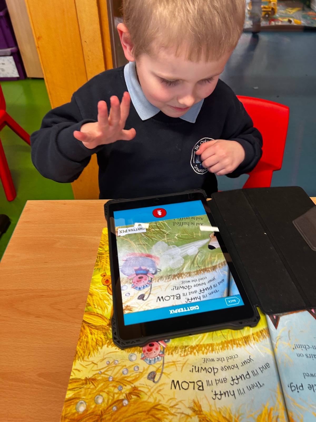 The children have been learning about speech in stories and how characters speak. They used the ChatterKid app to record what familiar characters say, bringing the characters’ voices to life. This activity helped the children understand dialogue, practise speaking clearly, and deepen their engagement with stories.