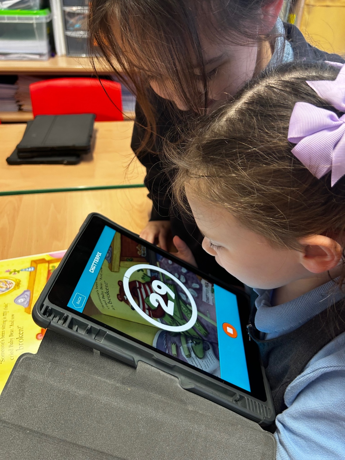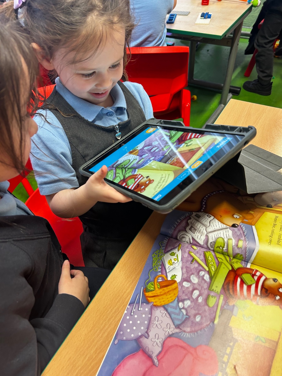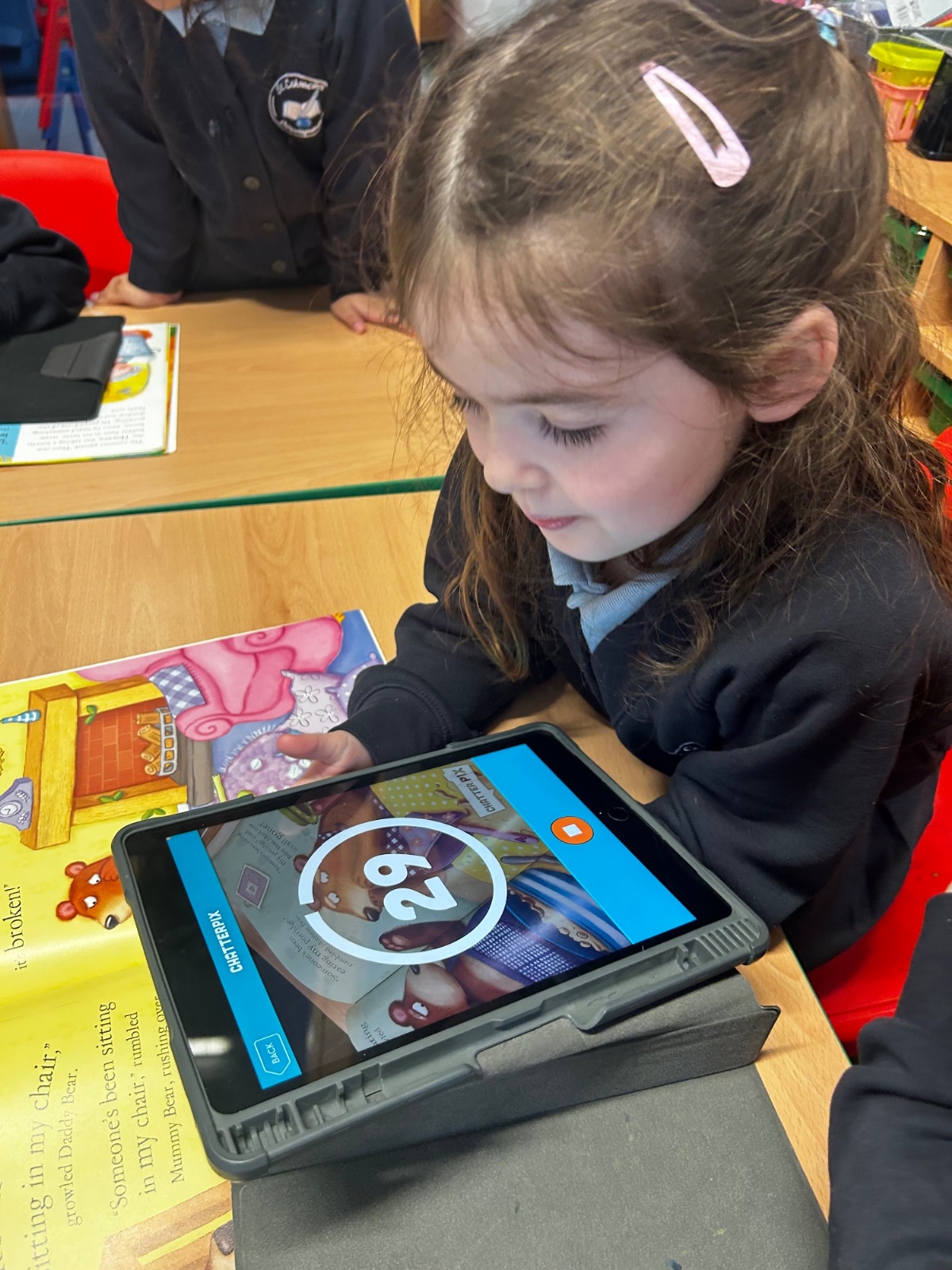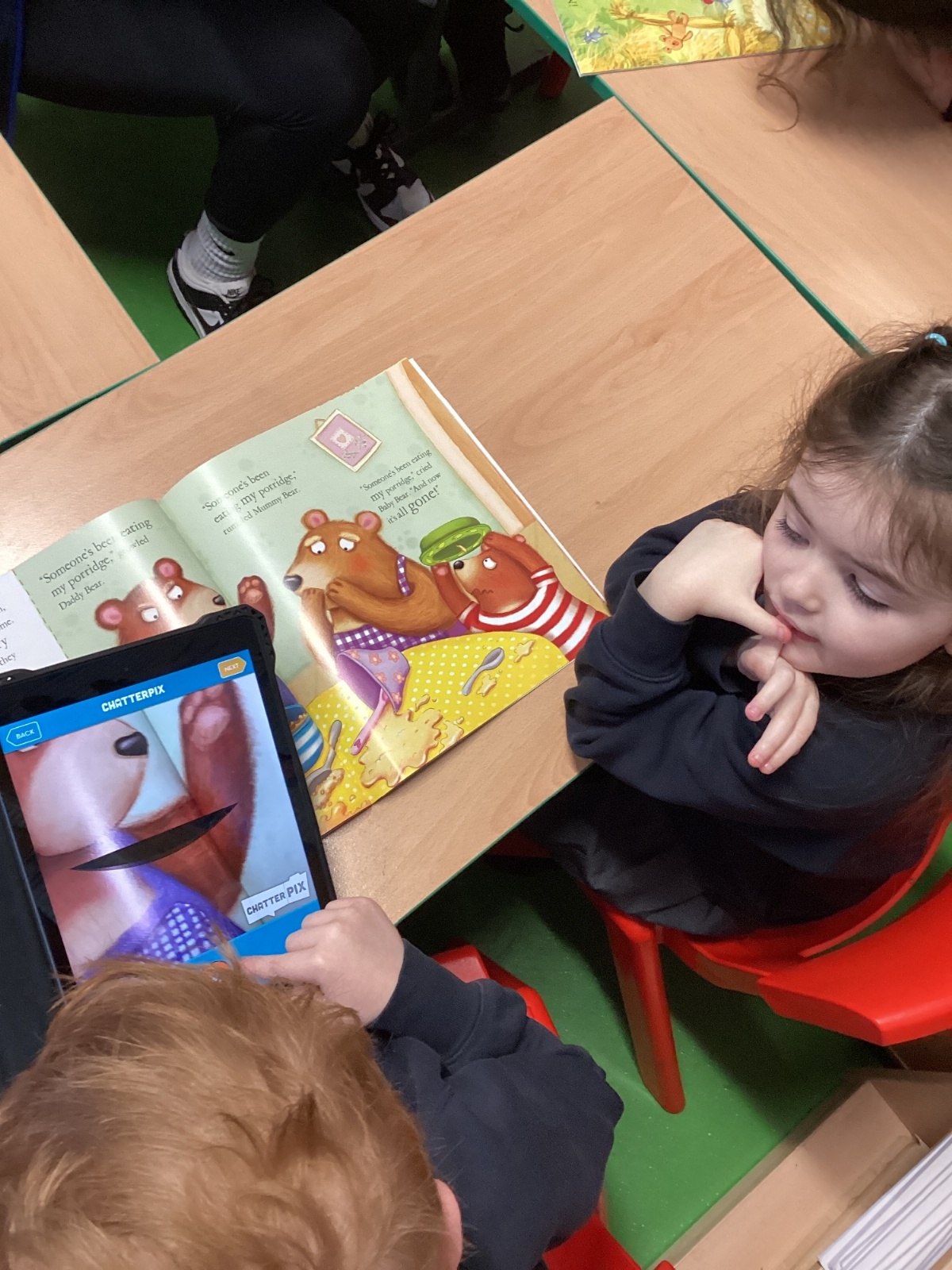 The children have been learning about speech in stories and how characters speak. They used the ChatterKid app to record what familiar characters say, bringing the characters’ voices to life. This activity helped the children understand dialogue, practise speaking clearly, and deepen their engagement with stories.