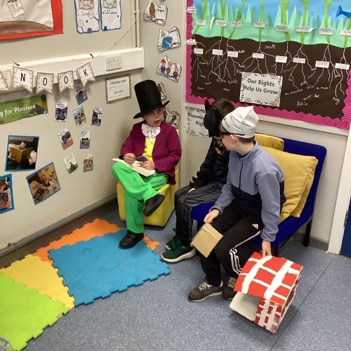 Throughout the day, children took part in lively drama activities, bringing different characters together in funny, unexpected and imaginative ways. It was wonderful to see their confidence shine as they improvised scenes, teamed up across stories, and explored the magic of reading through performance. Some pupils used Minecraft education to re-create their favourite book character. Well done, everyone, for making it such a memorable day!