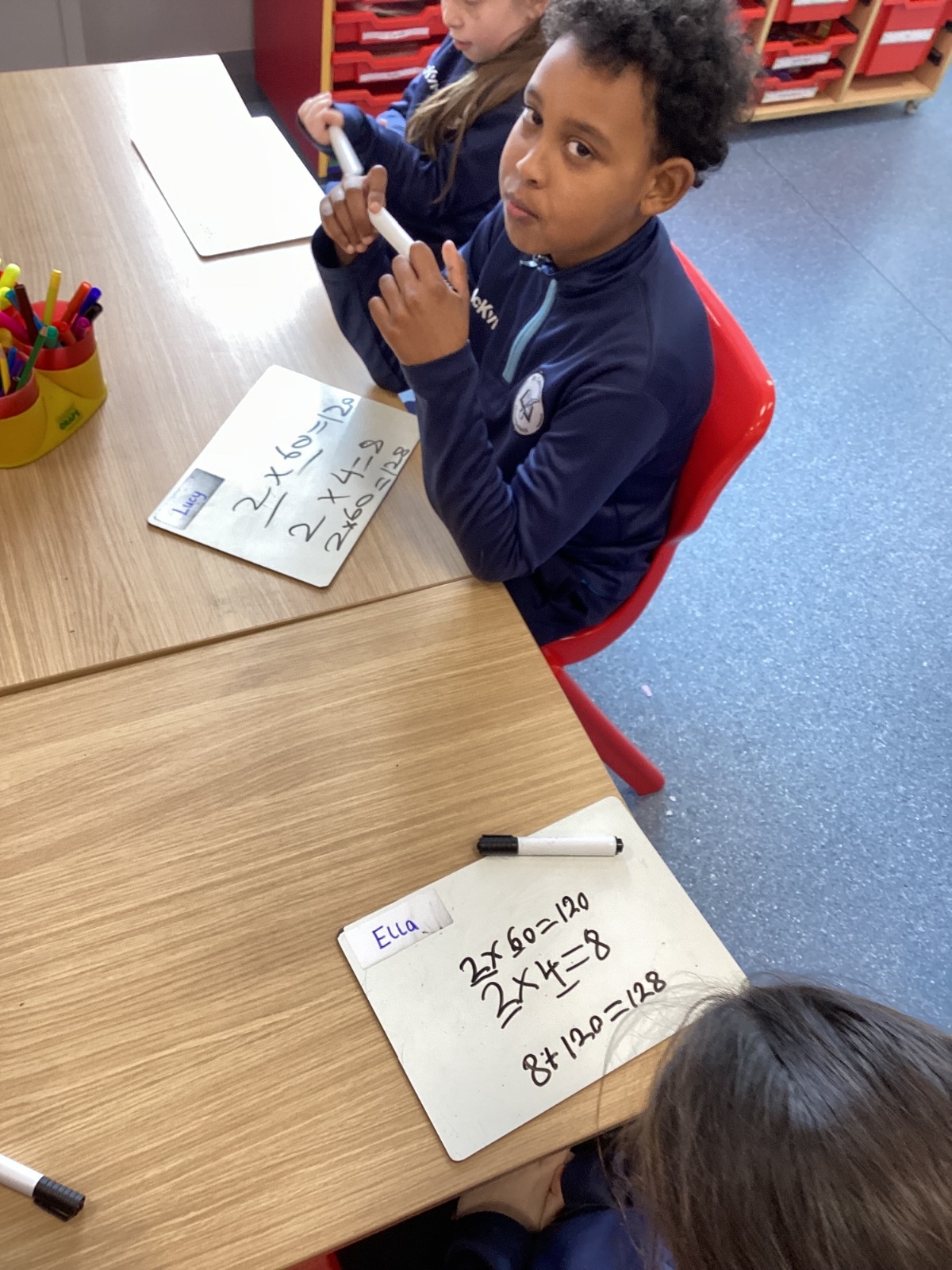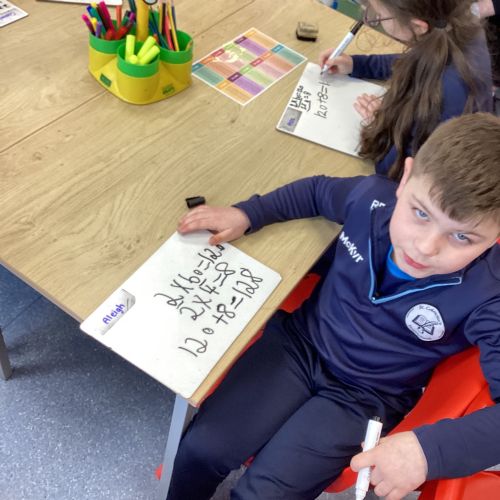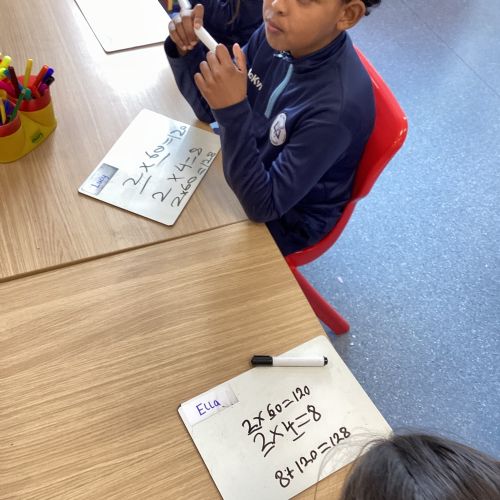 This week, our pupils have been developing their multiplication skills by learning how to multiply a 2‑digit number by a 1‑digit number using partitioning. The children confidently broke the 2‑digit number into tens and units, multiplied each part separately, and then added the results together to find the final answer.