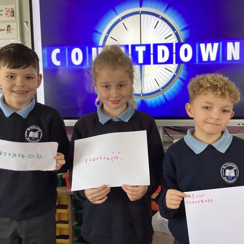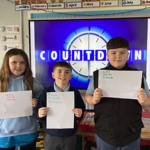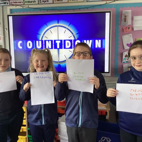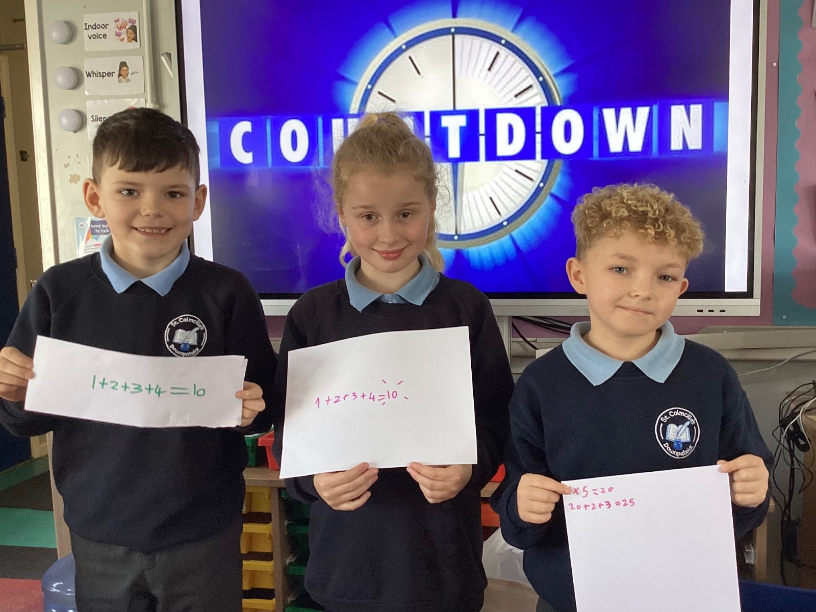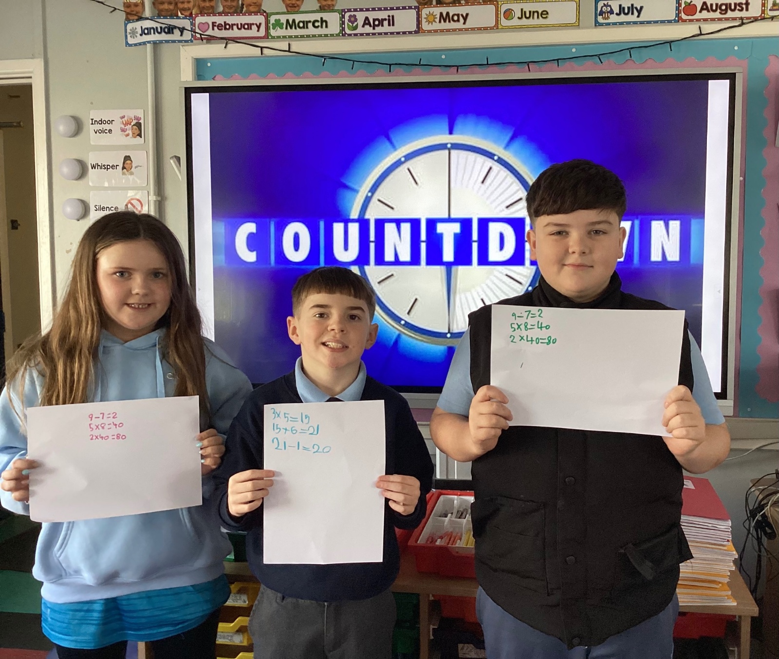 Today we had our very own Countdown‑style game show! We watched some clips from the original Countdown TV show and then tried our own problem‑solving challenges. Our focus was on trial and error, and this activity certainly required plenty of it! Pupils were given four numbers and had to create given target totals using addition, subtraction, or multiplication. Lots of thinking, testing, adjusting — and plenty of excitement along the way!