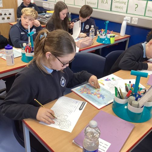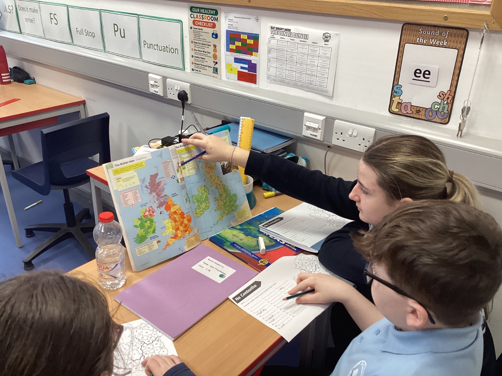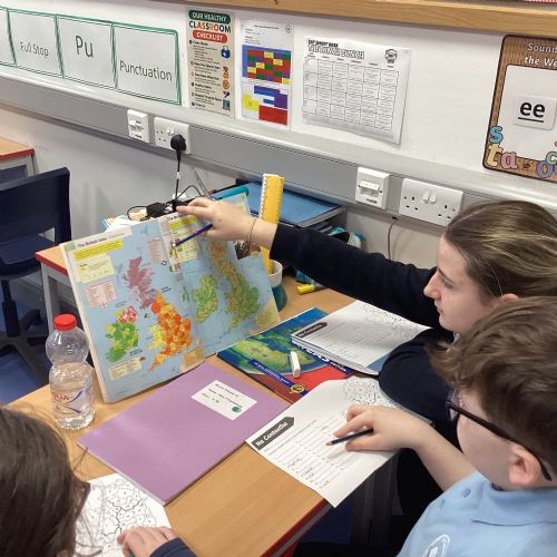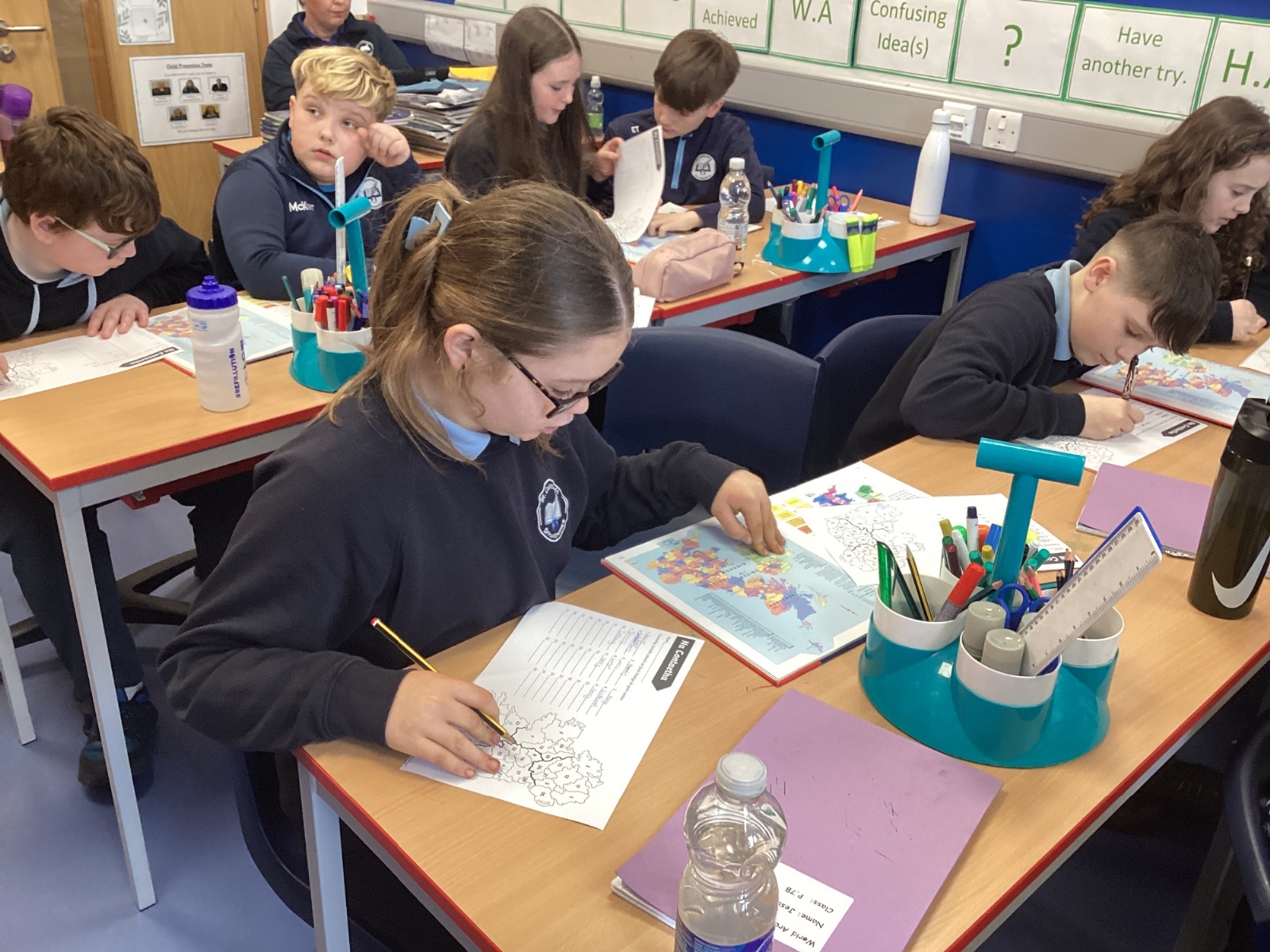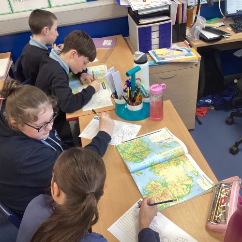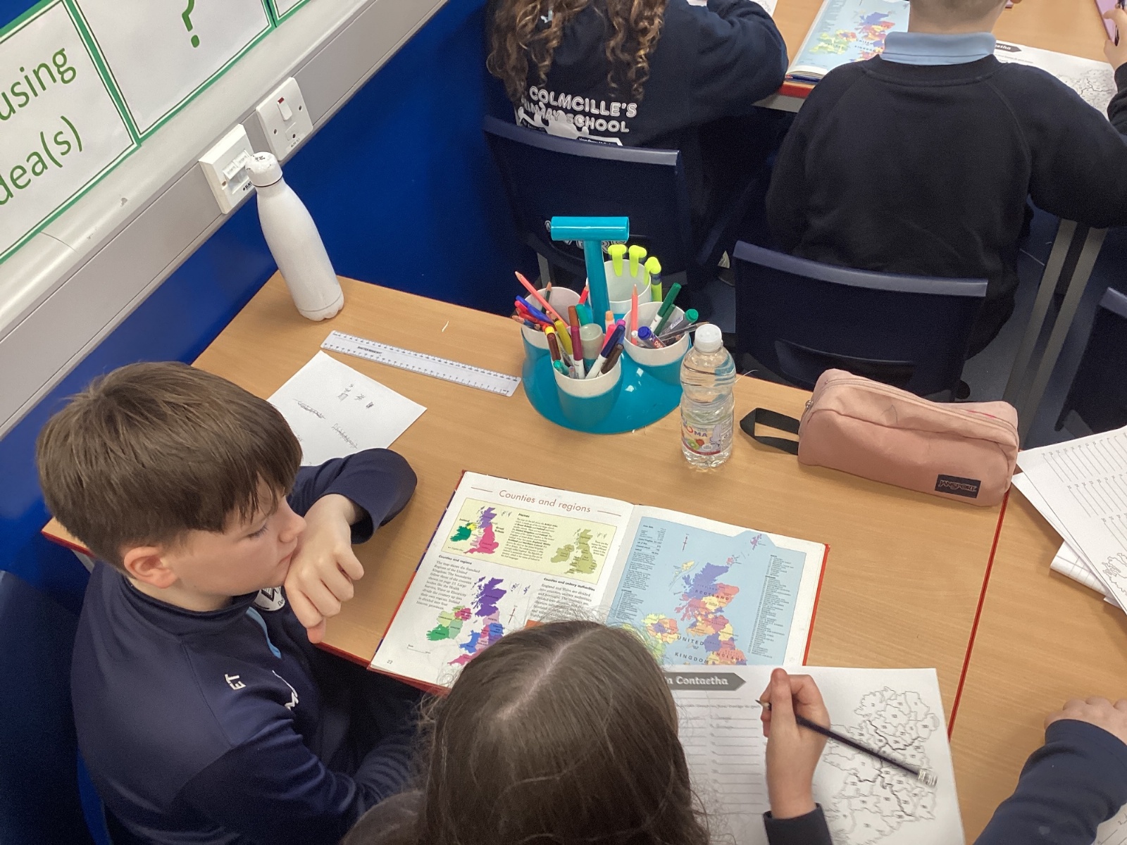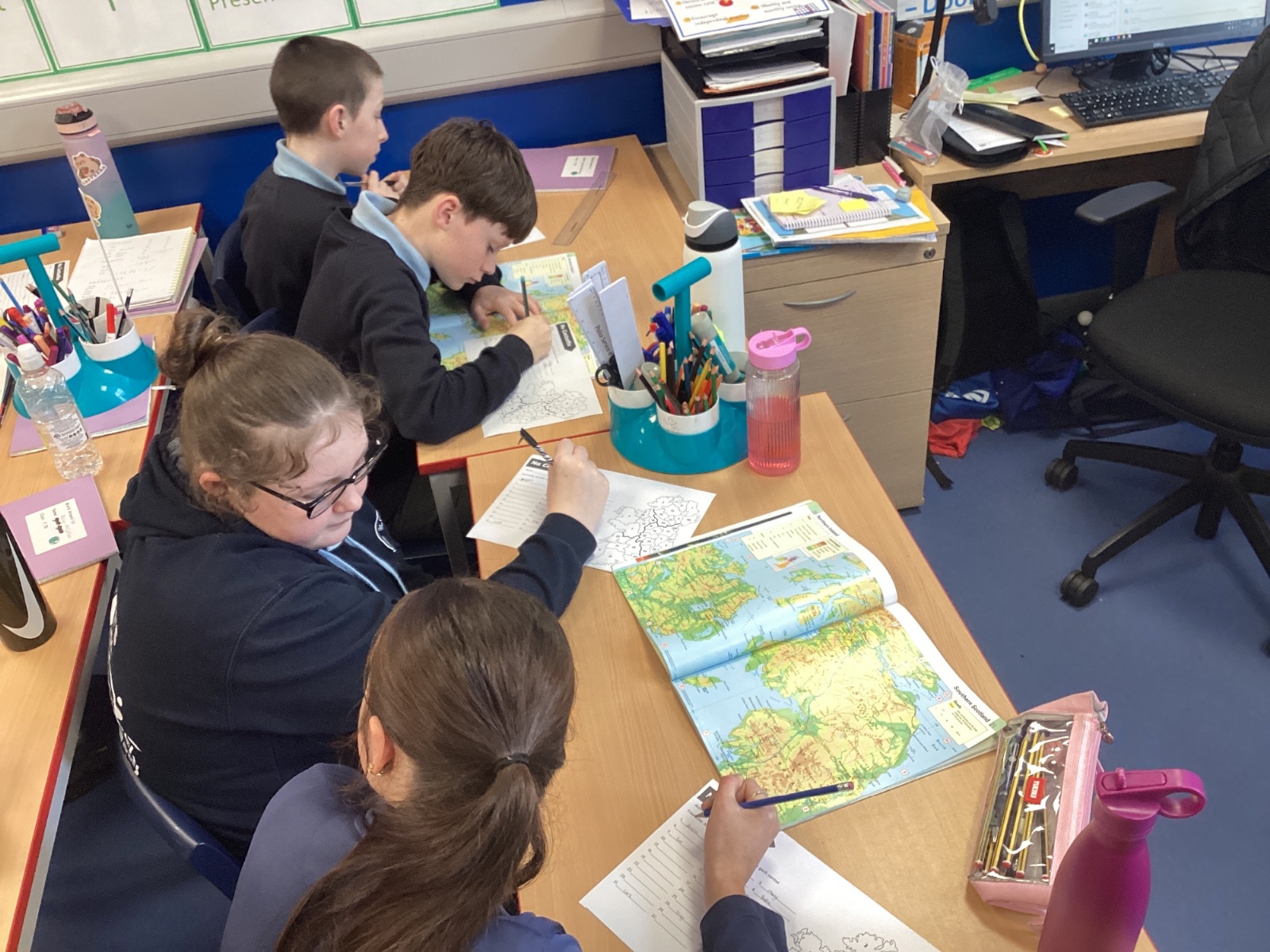 Today, 7B took part in a geography lesson using atlases to locate the 32 counties of Ireland. As our class groups are named after the four provinces, we are able to use this information to help us identify where each county is placed. Pupils worked carefully to identify each county, using page indexes, map symbols and grid references to support their search. Throughout the lesson, pupils showed good teamwork, shared strategies and used their map‑reading skills with increasing confidence. By the end, most children could accurately name and locate all 32 counties and explain why atlases are useful tools for finding geographical information.