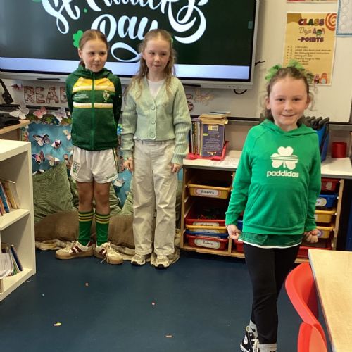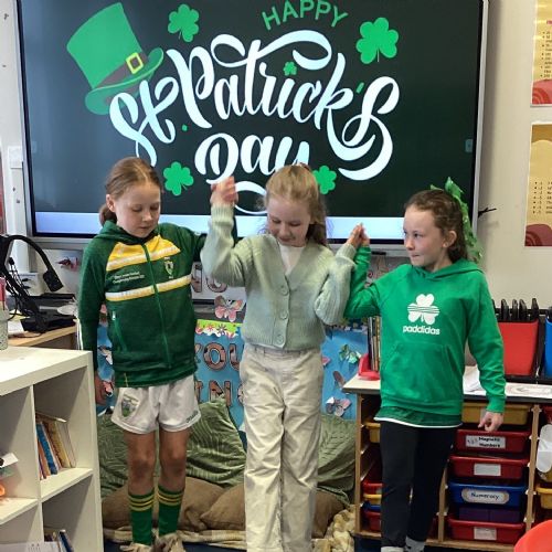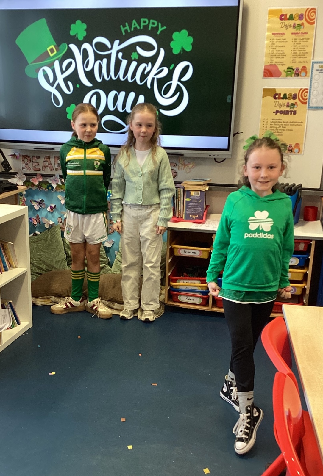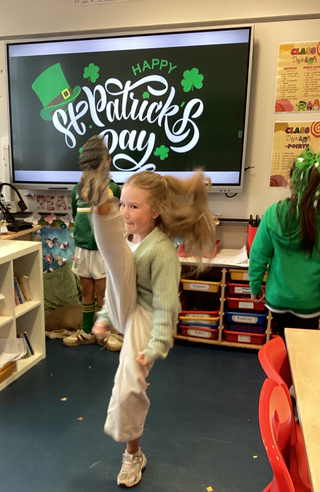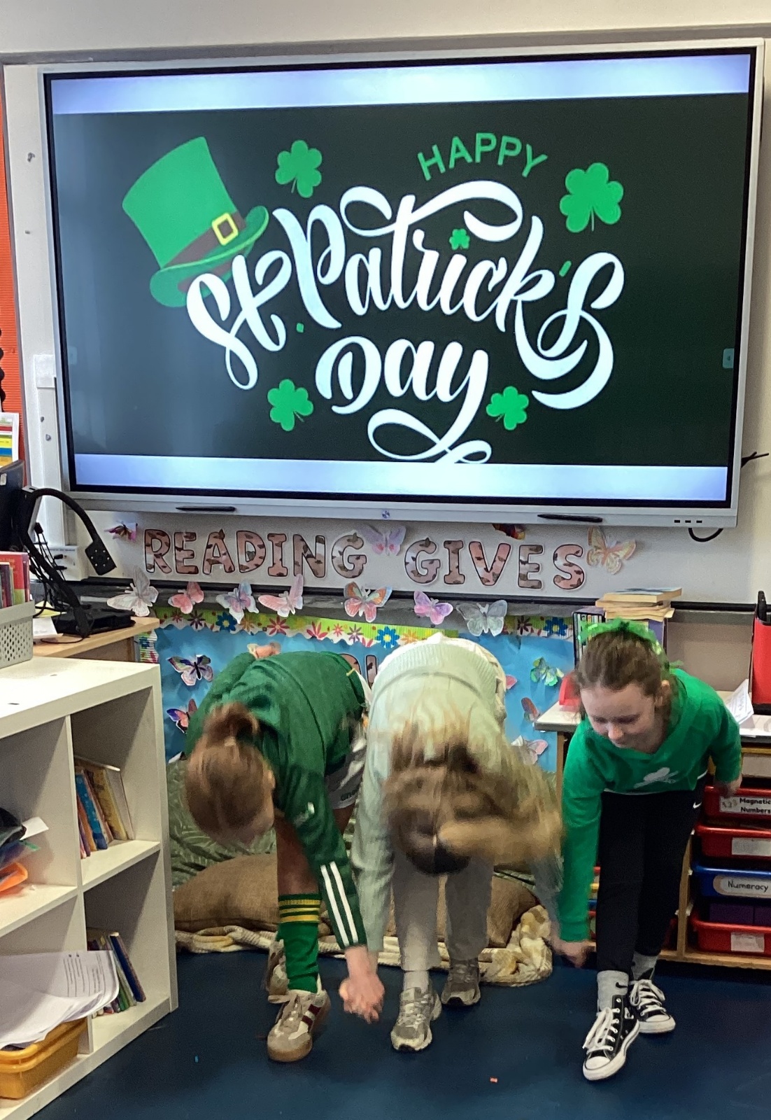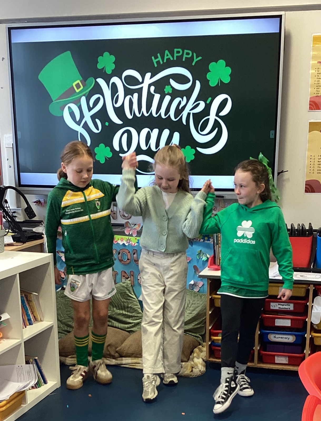 Our green day celebrations. Mia, Zara and Ava treated the class to a wonderful Irish Dancing performance.