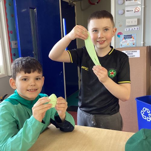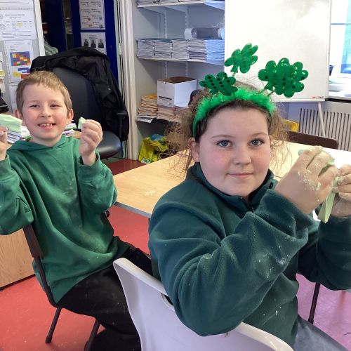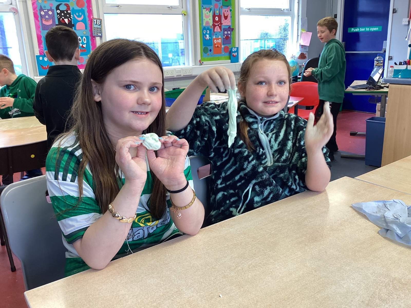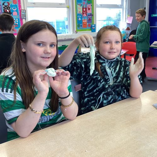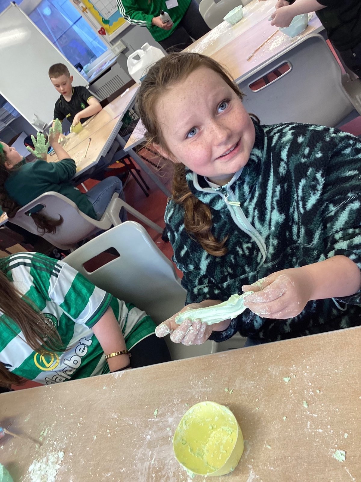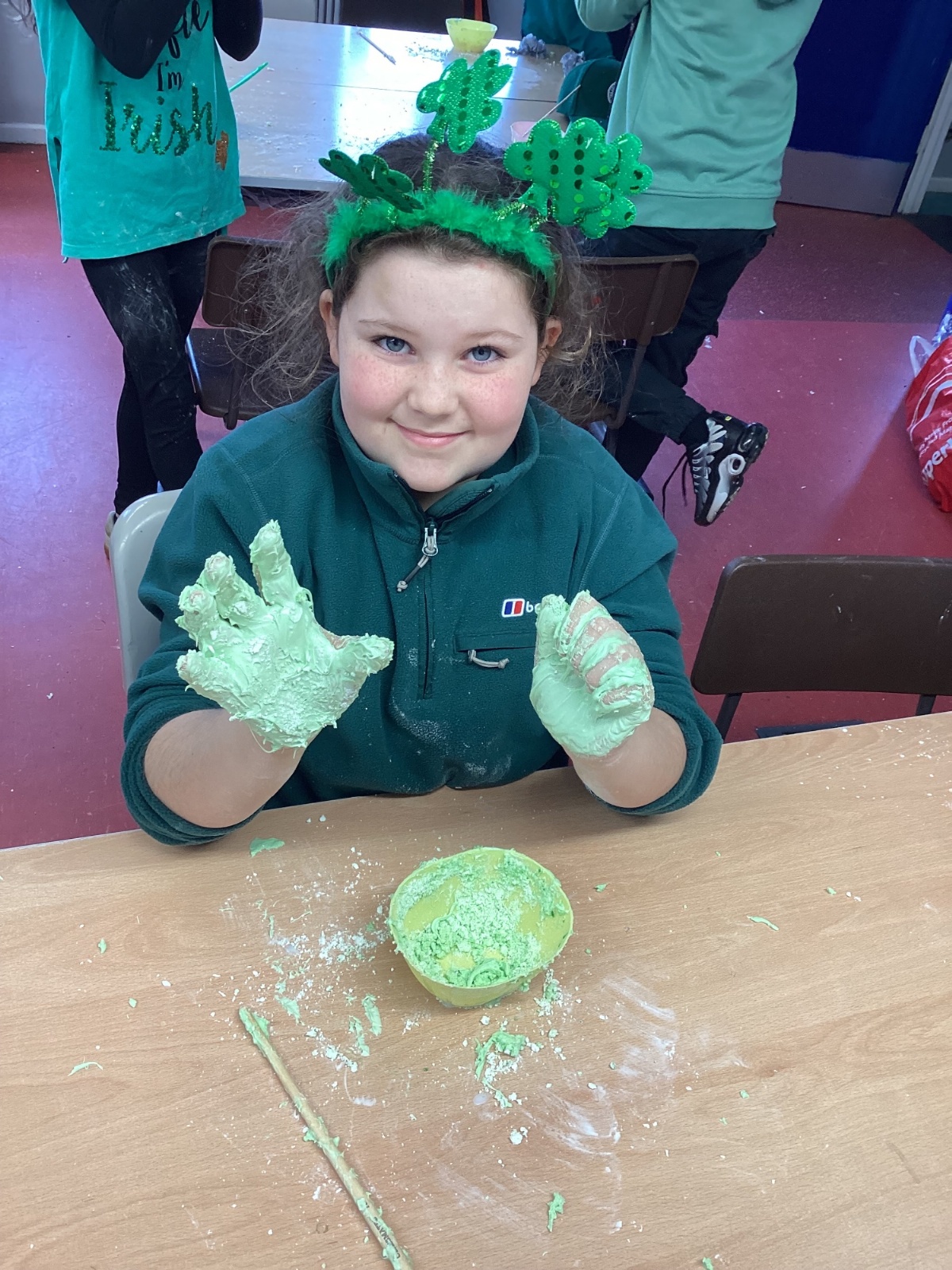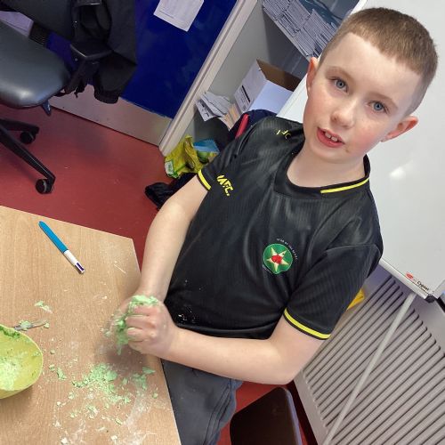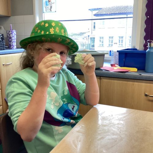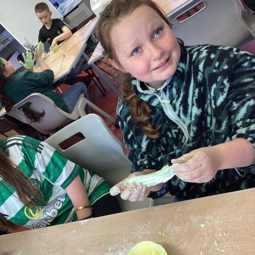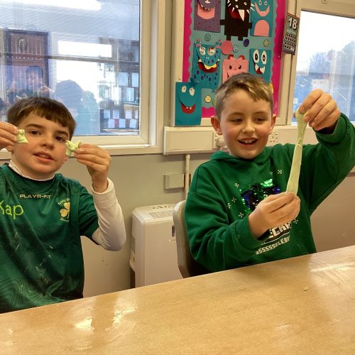Today P5A got to enjoy St Patrick's Day putty making. They mixed corn flour, conditioner and glue together to make their sensory putty. At first, I questioned whether this was a good idea for our classroom, but the pupils loved the experience.