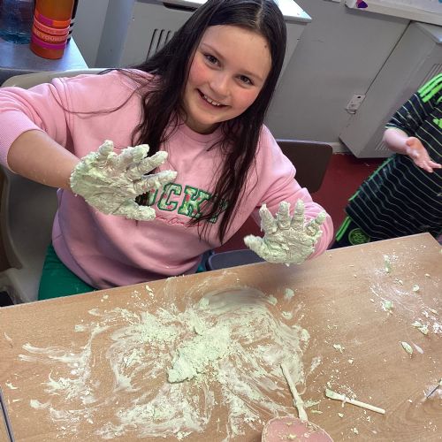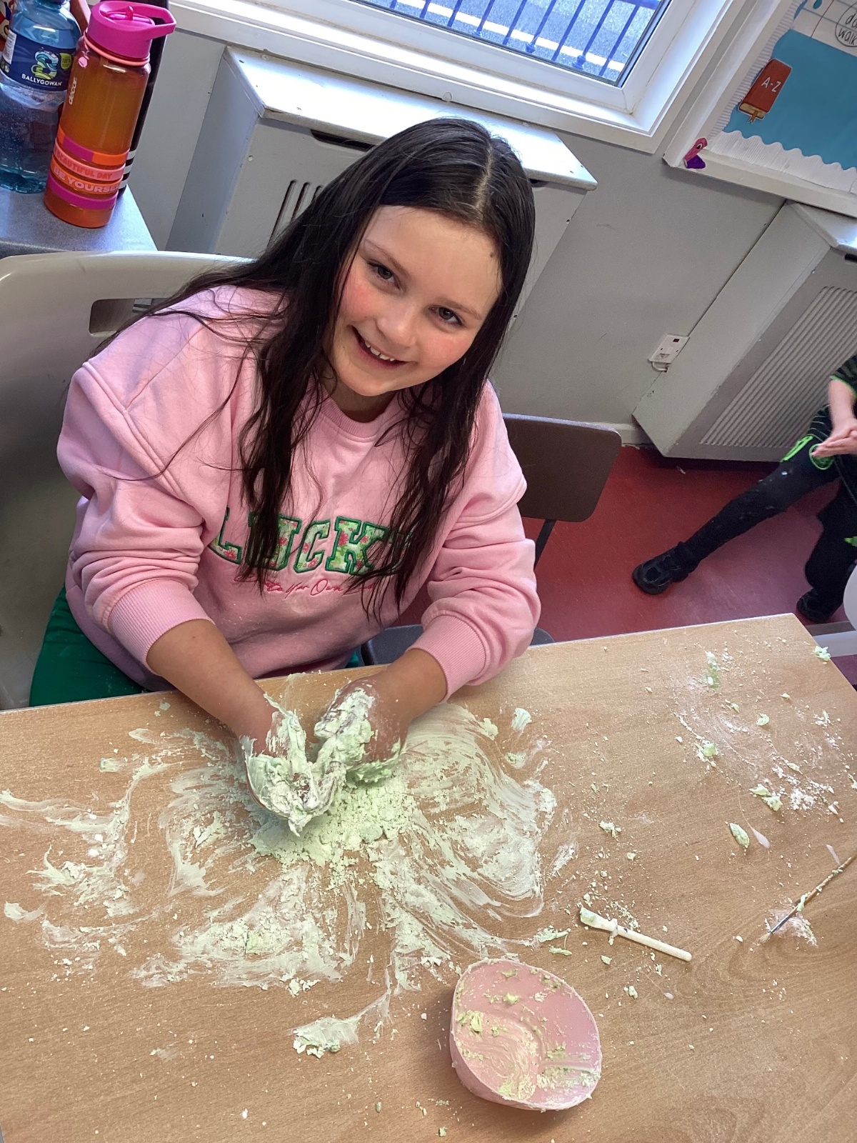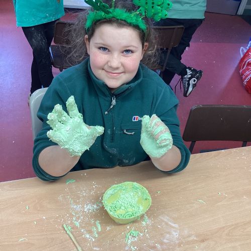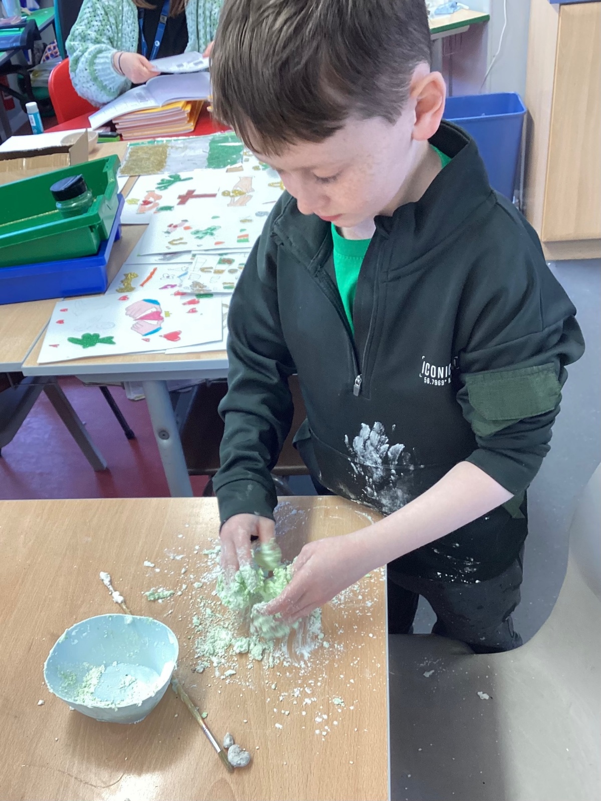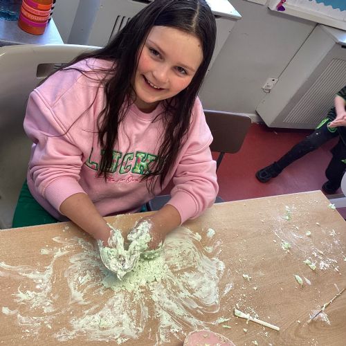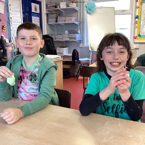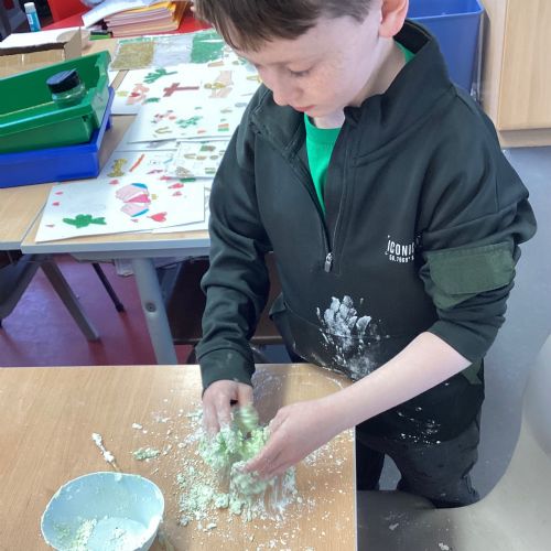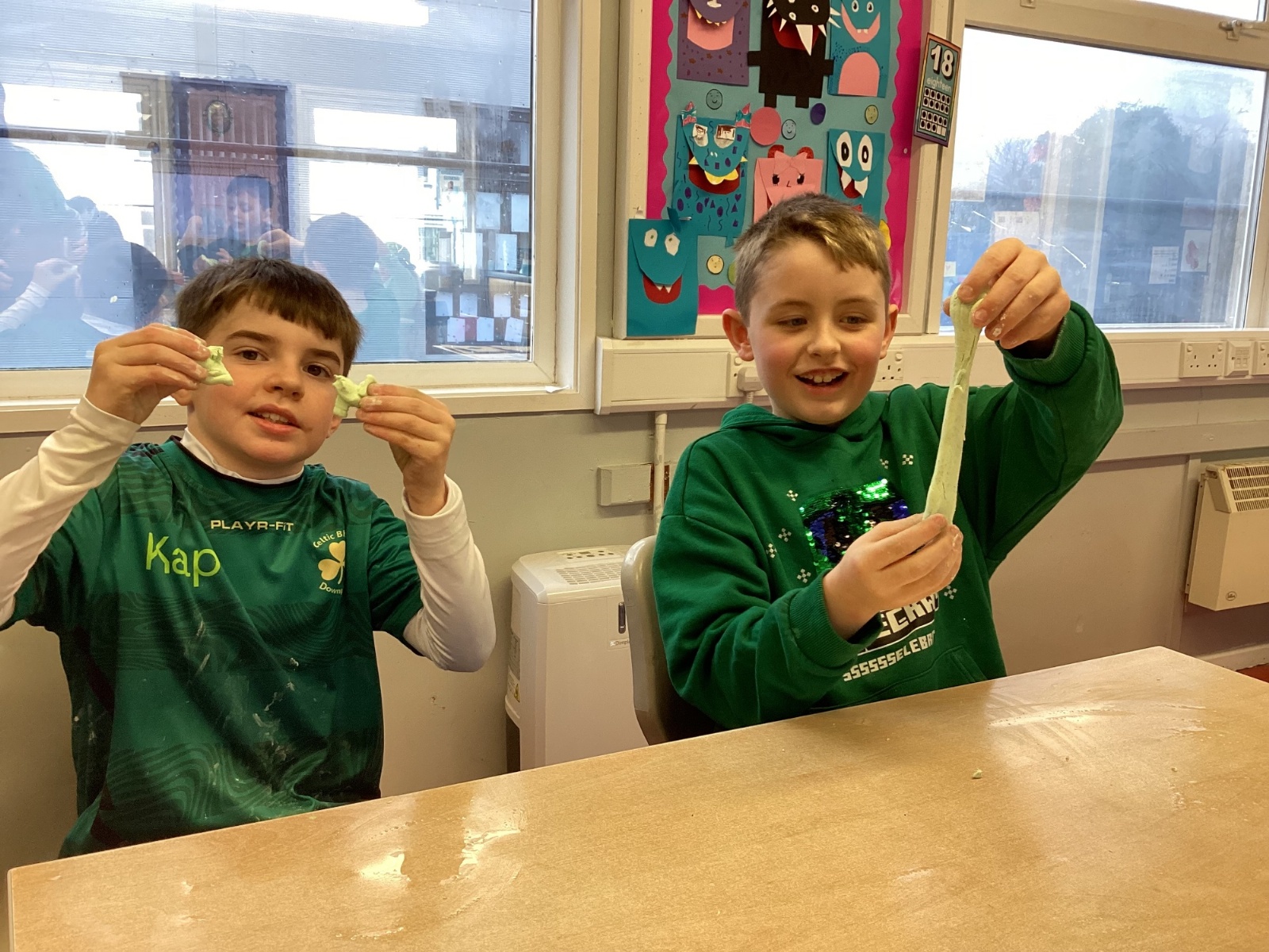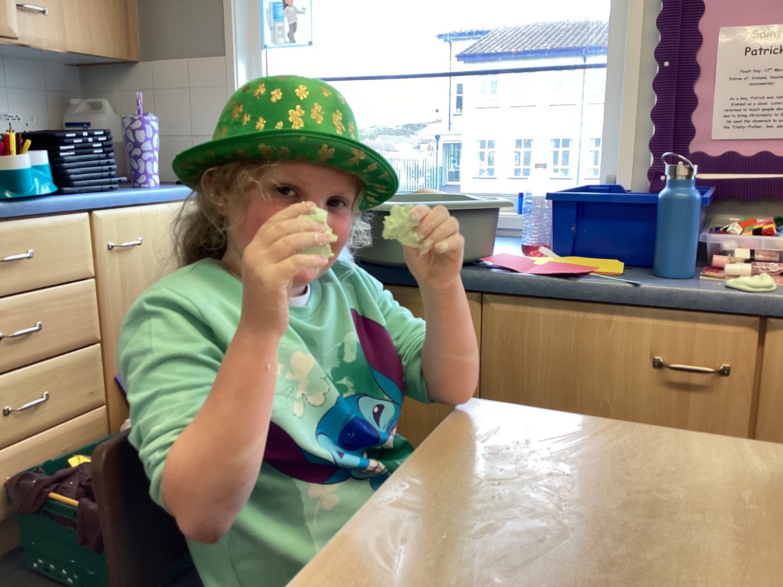 Today P5A got to enjoy St Patrick's Day putty making. They mixed corn flour, conditioner and glue together to make their sensory putty. At first, I questioned whether this was a good idea for our classroom, but the pupils loved the experience.